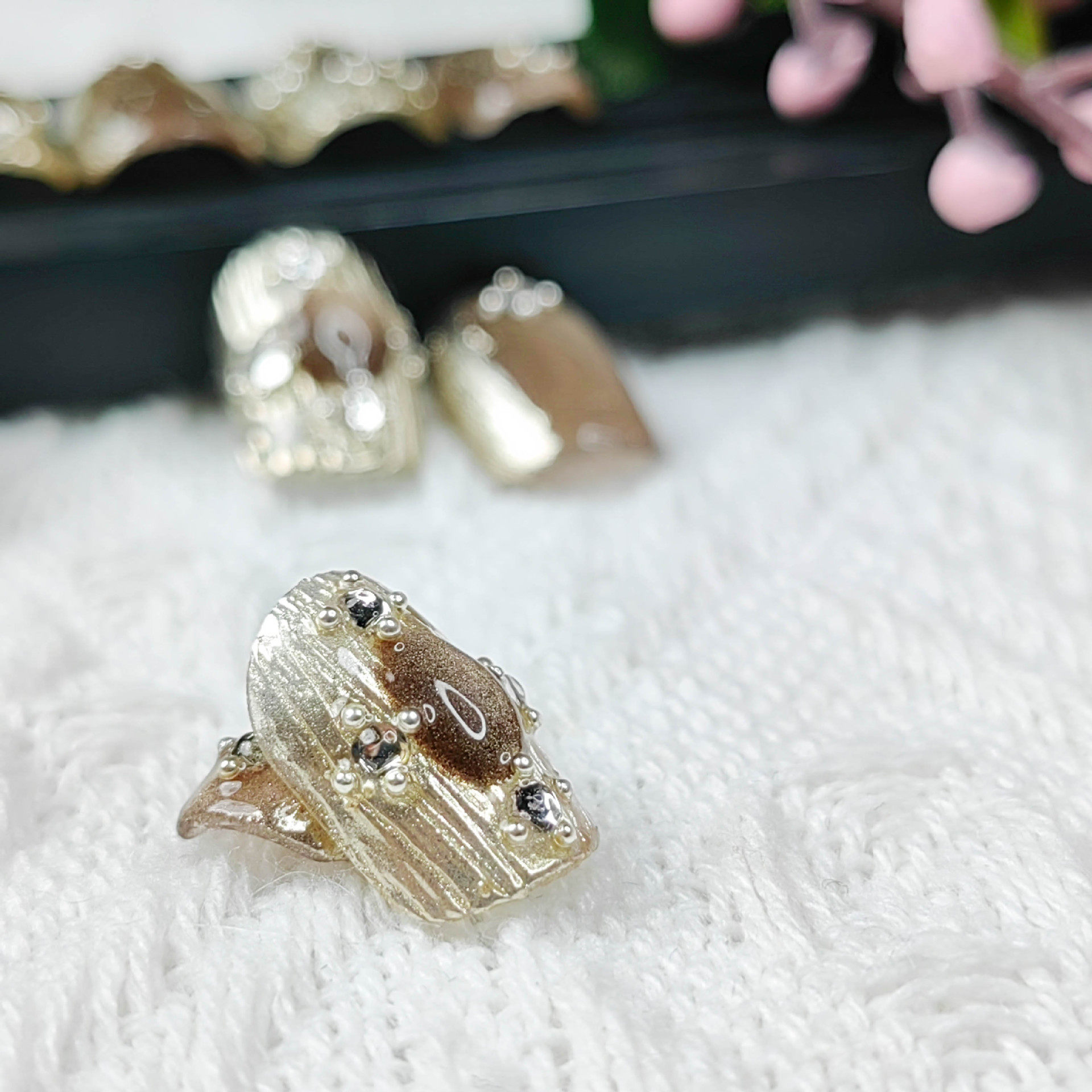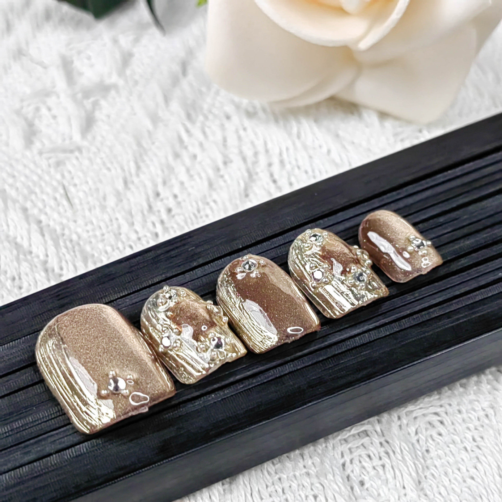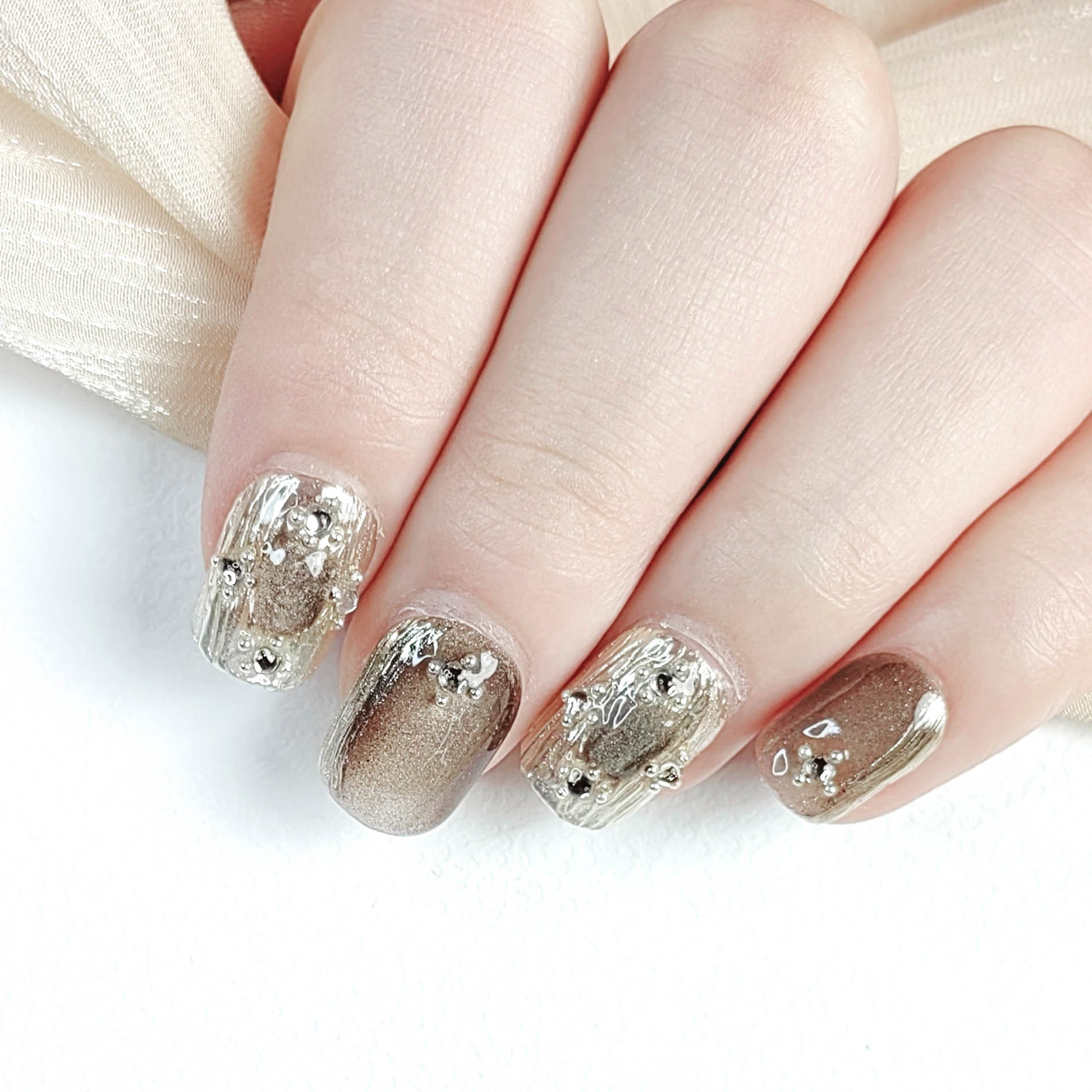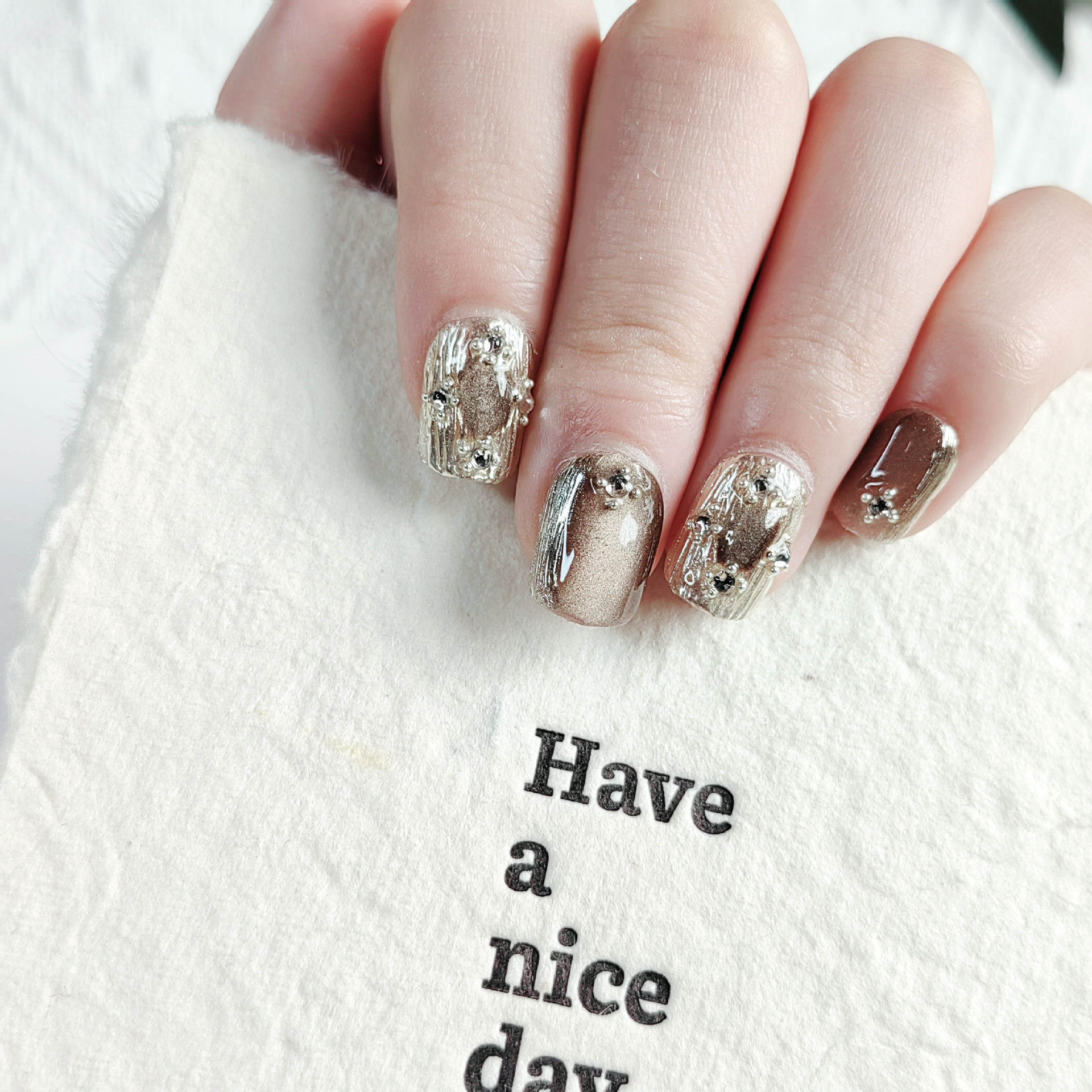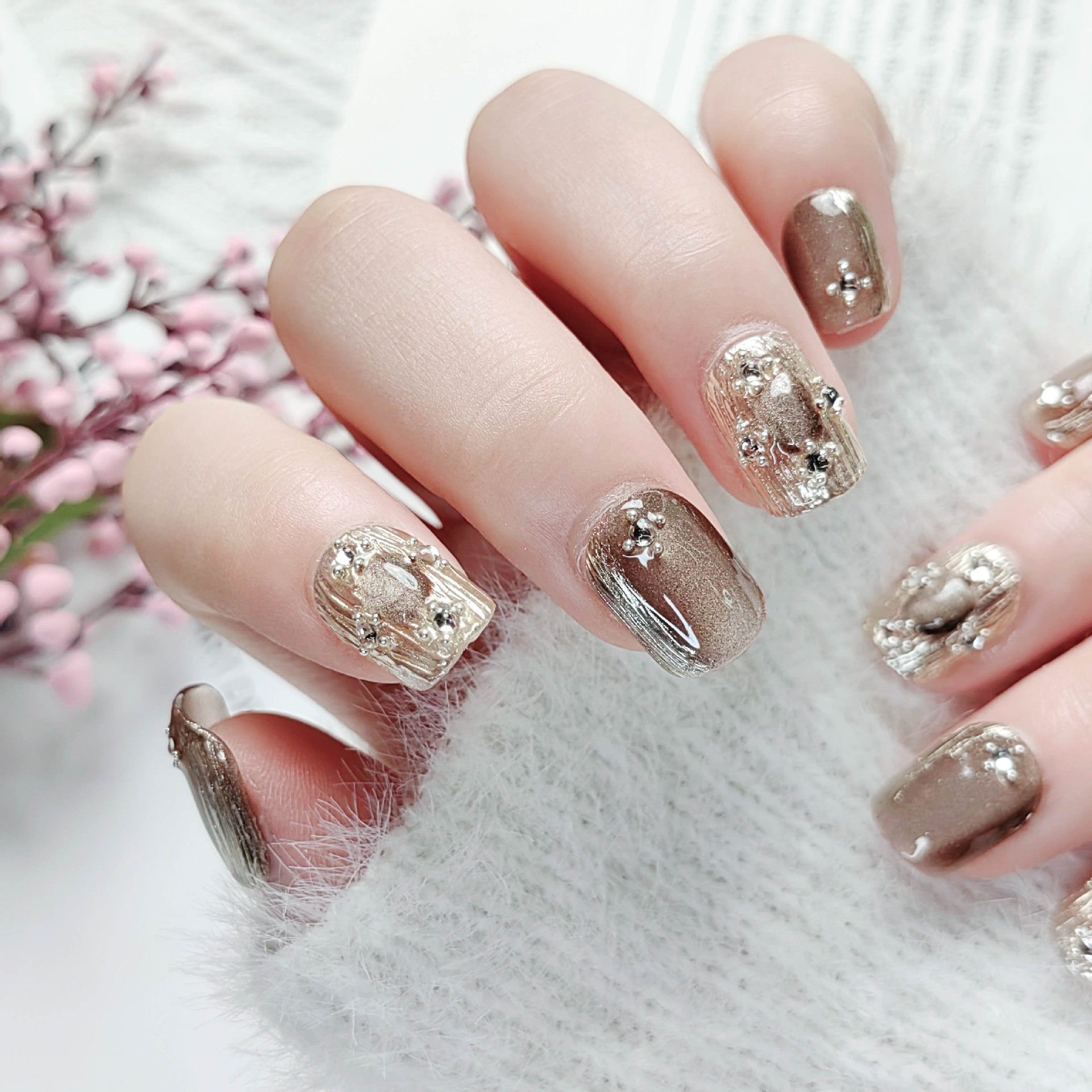手作爆闪长猫眼美甲高级感手工甲片批发贴布契拉提指甲短款穿戴甲
