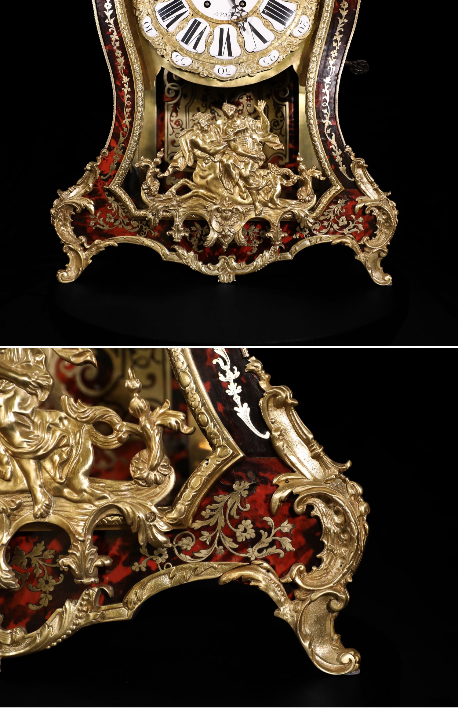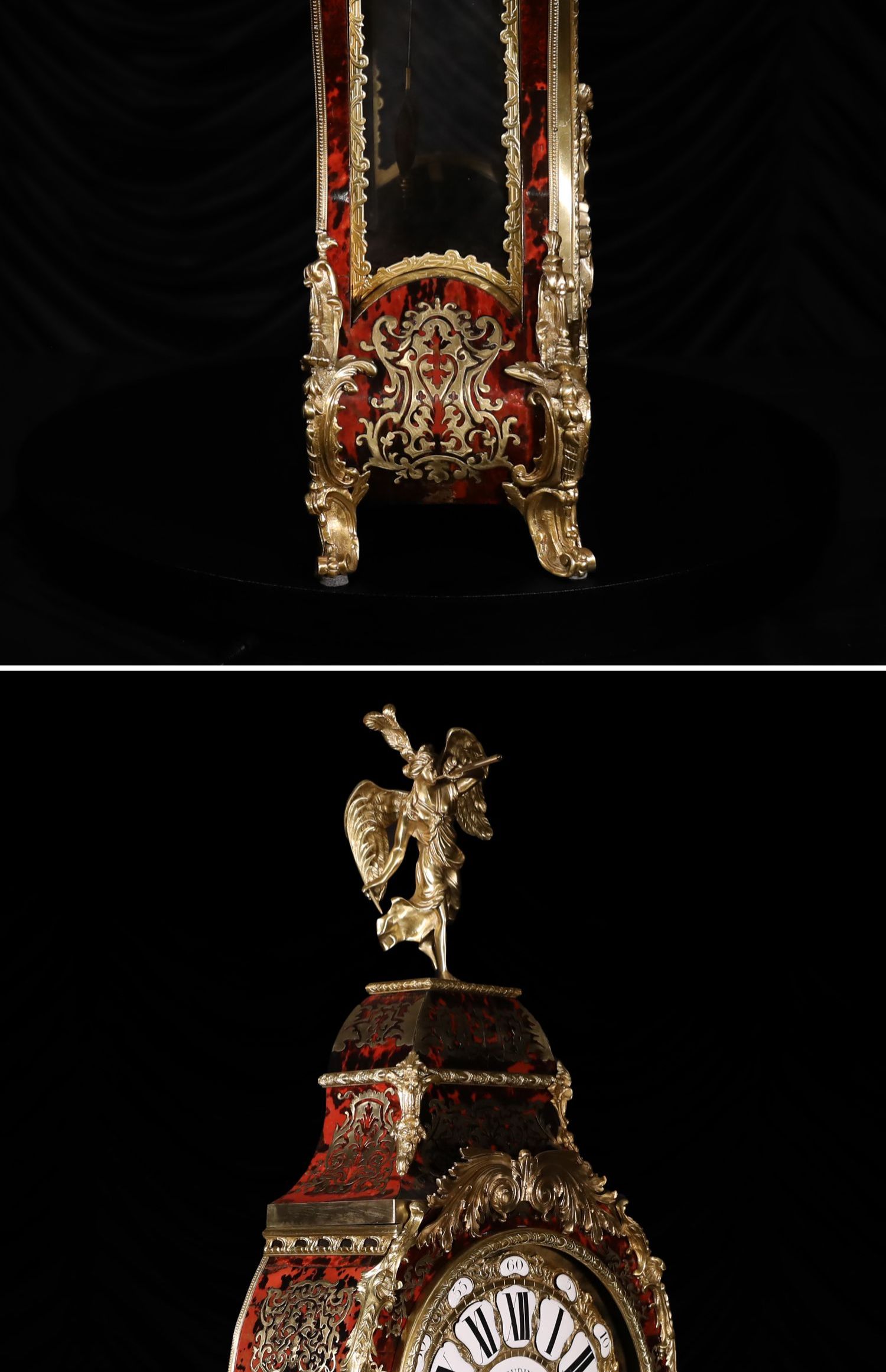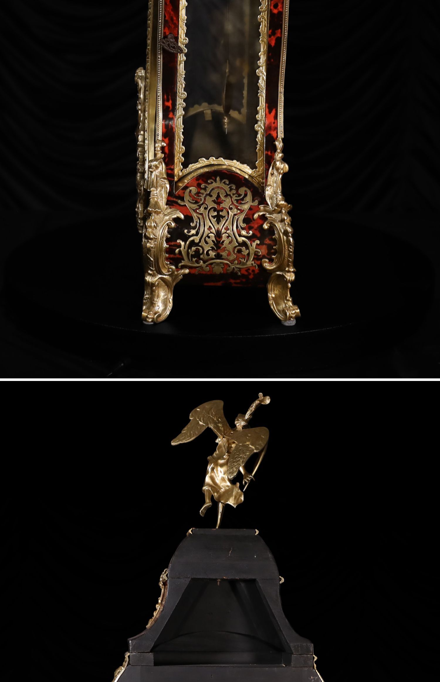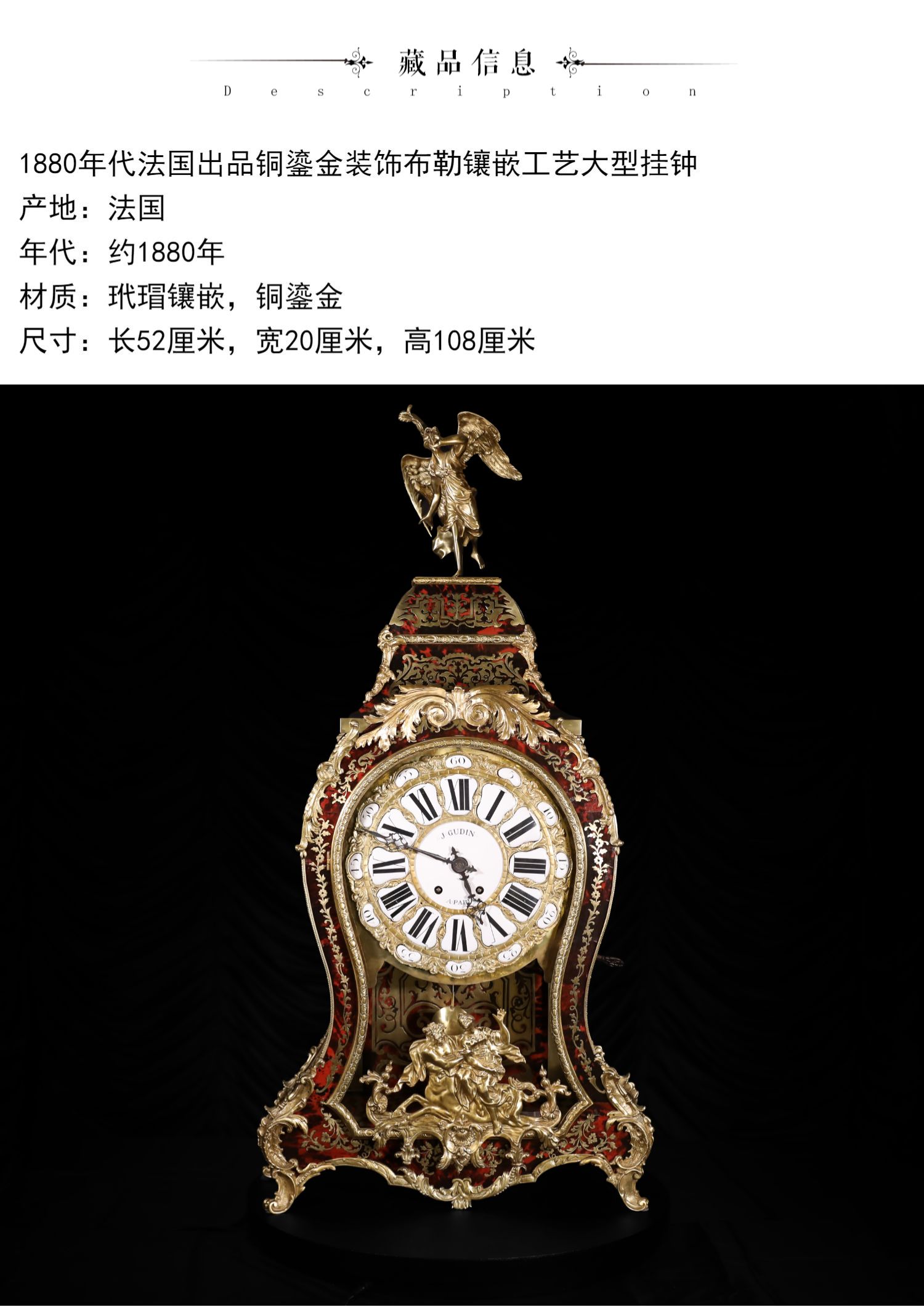 独角鹿西洋古董1880年代法国铜鎏金饰布勒镶嵌工艺大型挂钟古董钟