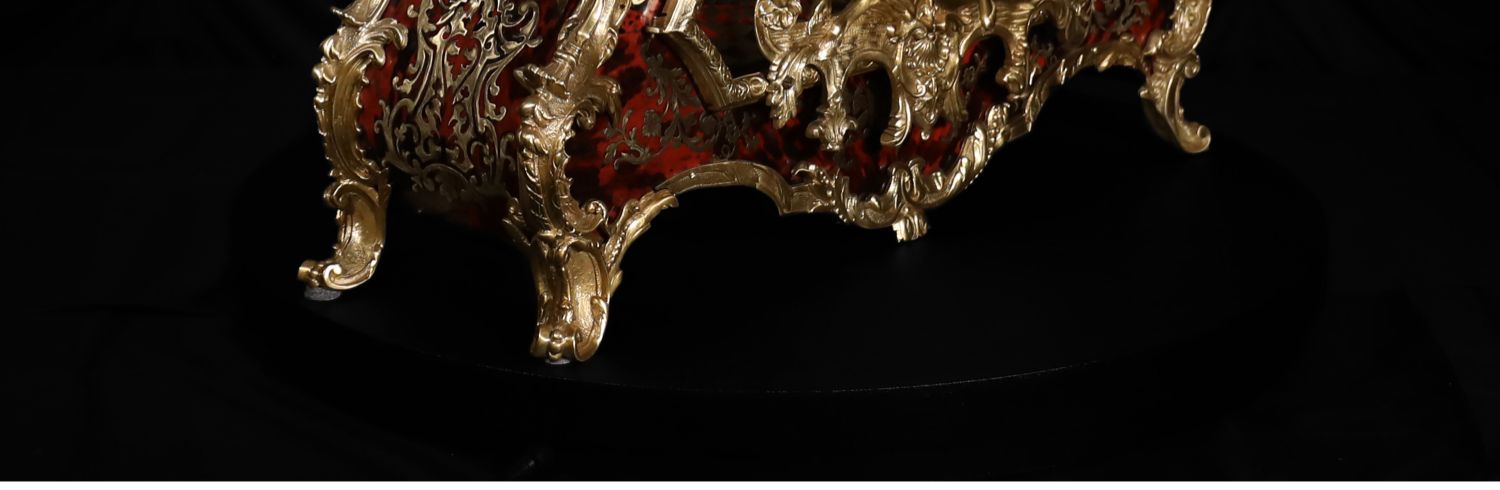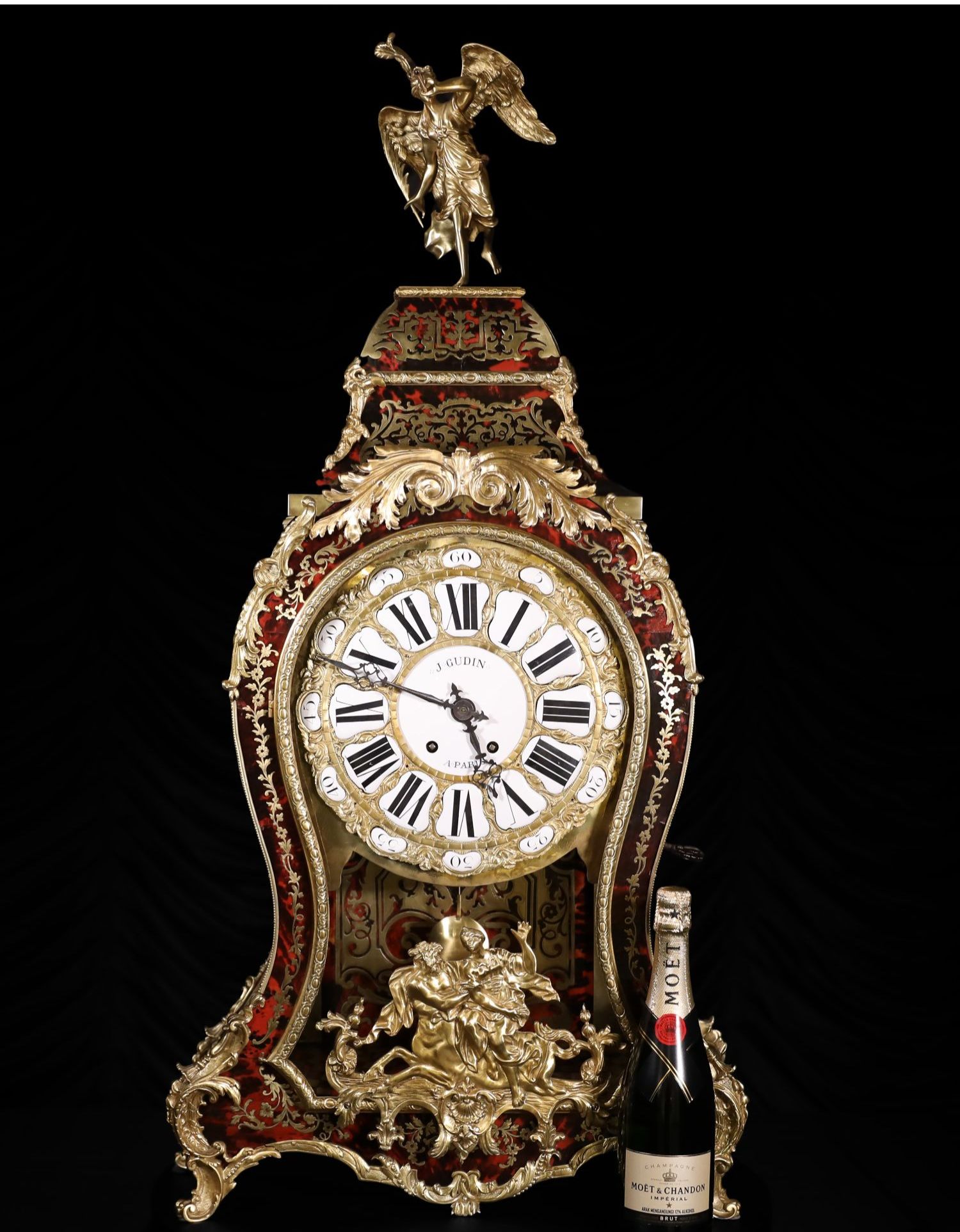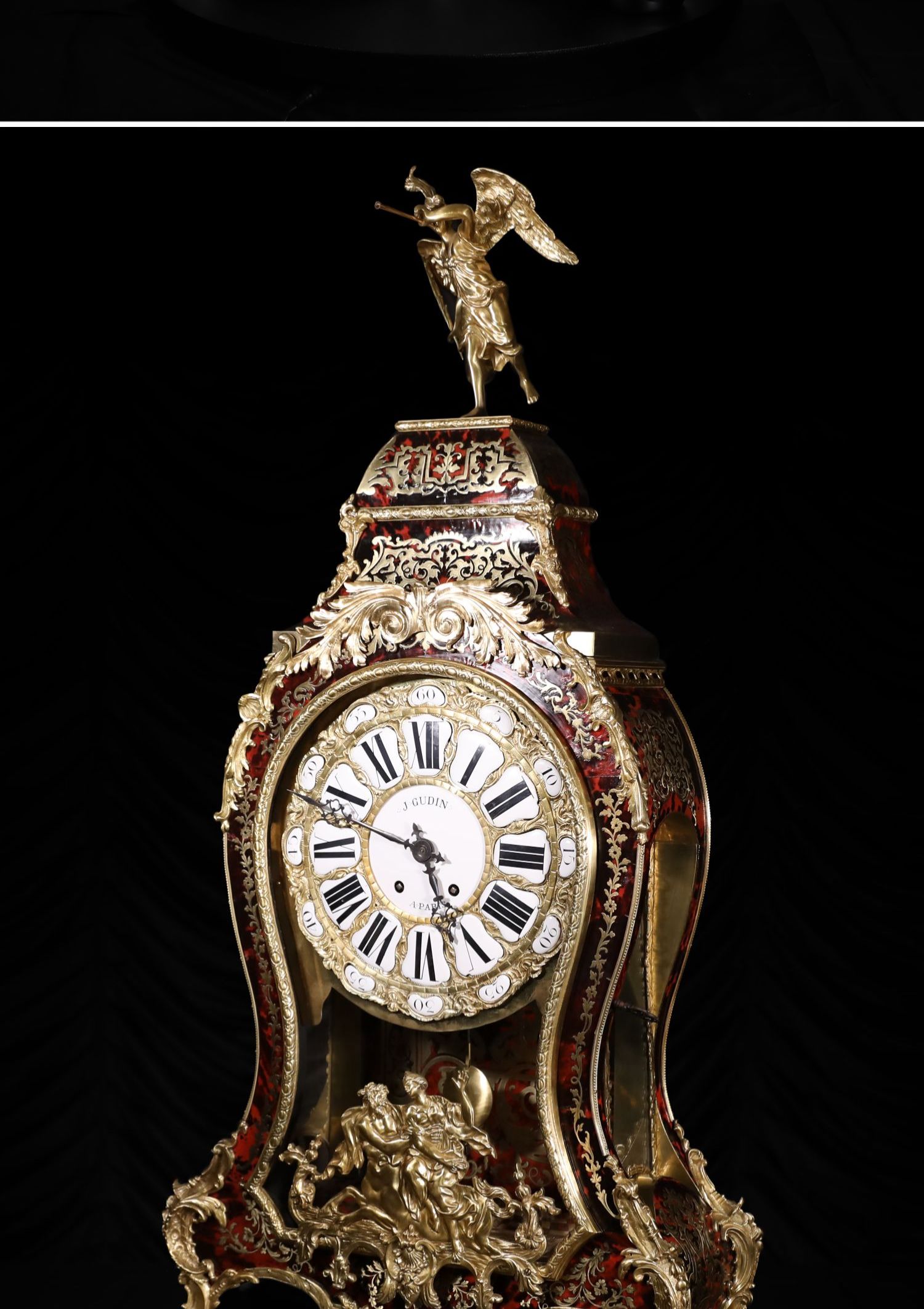 独角鹿西洋古董1880年代法国铜鎏金饰布勒镶嵌工艺大型挂钟古董钟