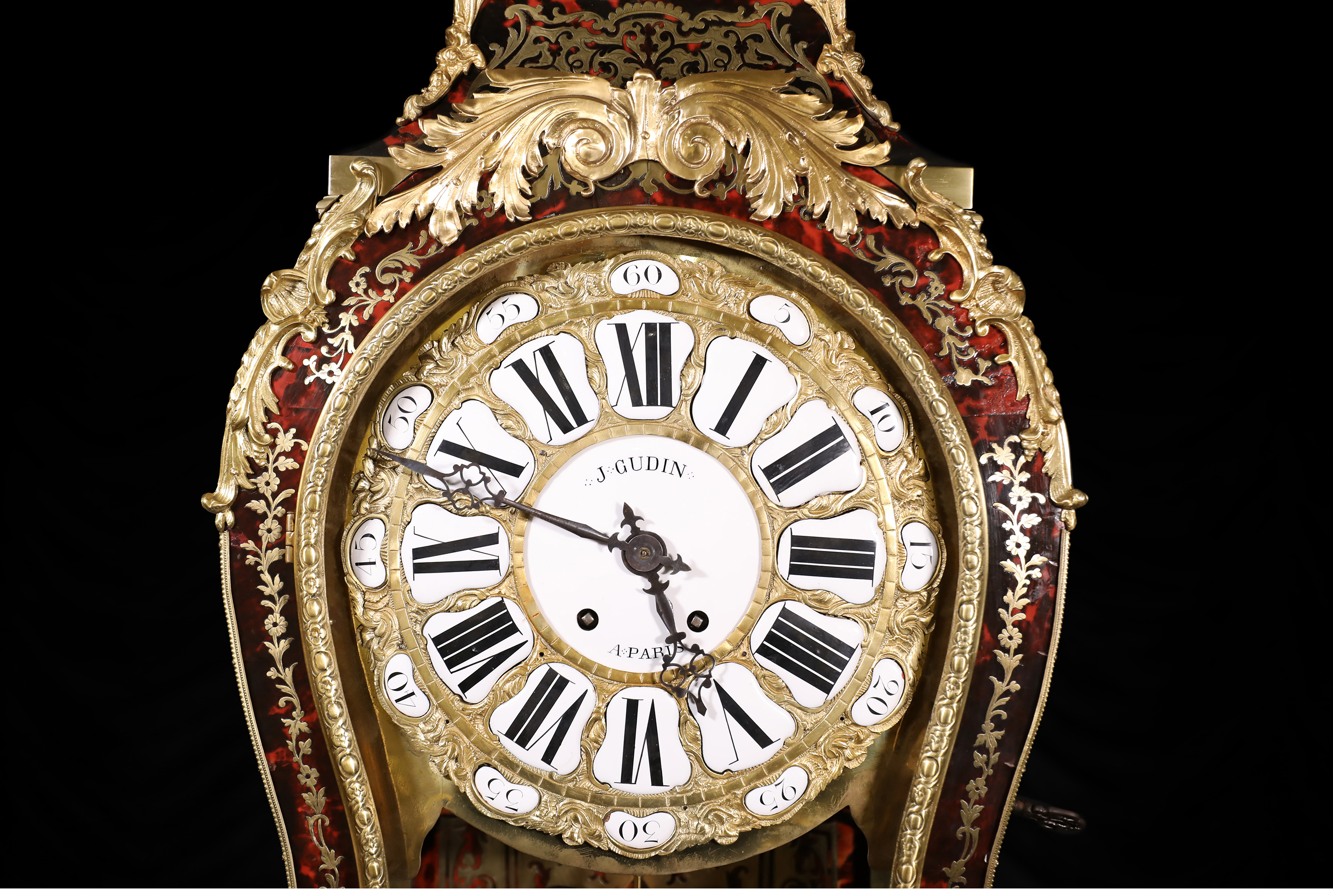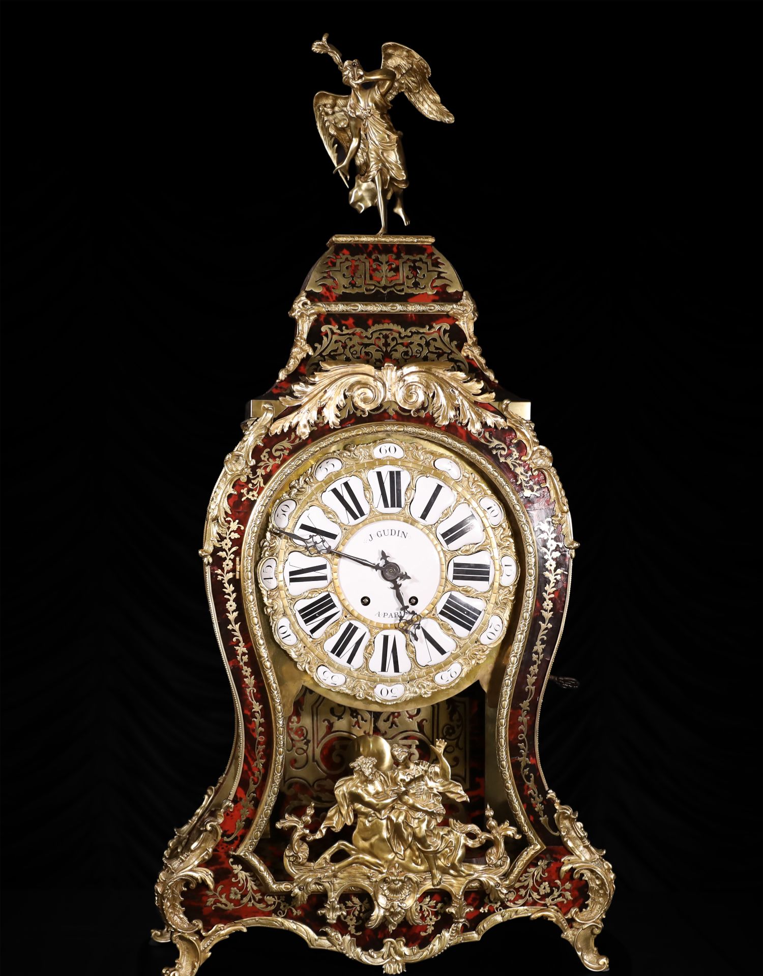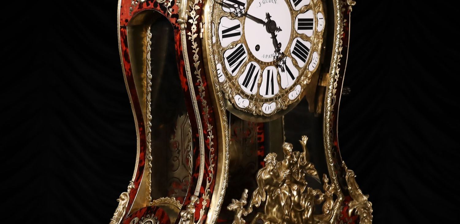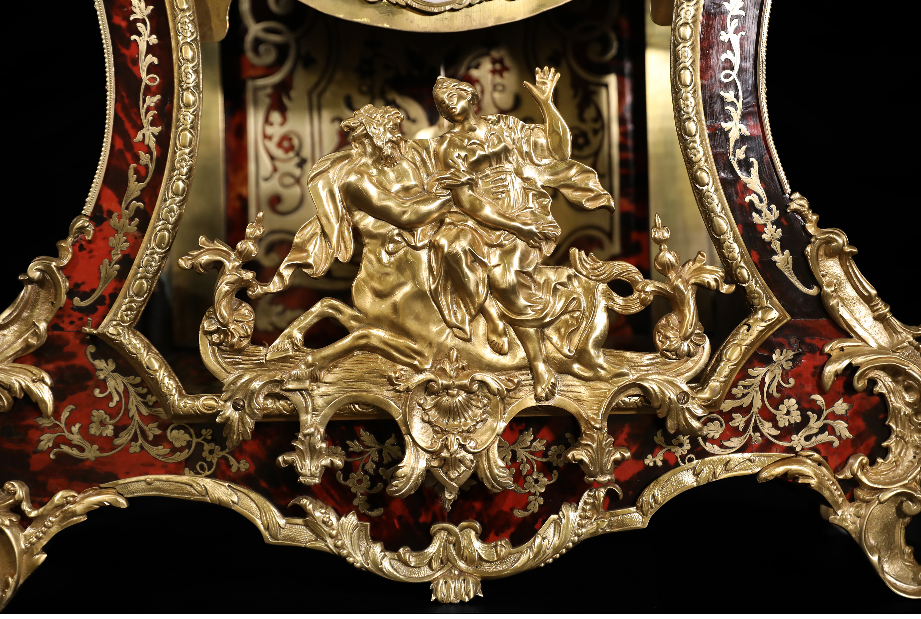 独角鹿西洋古董1880年代法国铜鎏金饰布勒镶嵌工艺大型挂钟古董钟