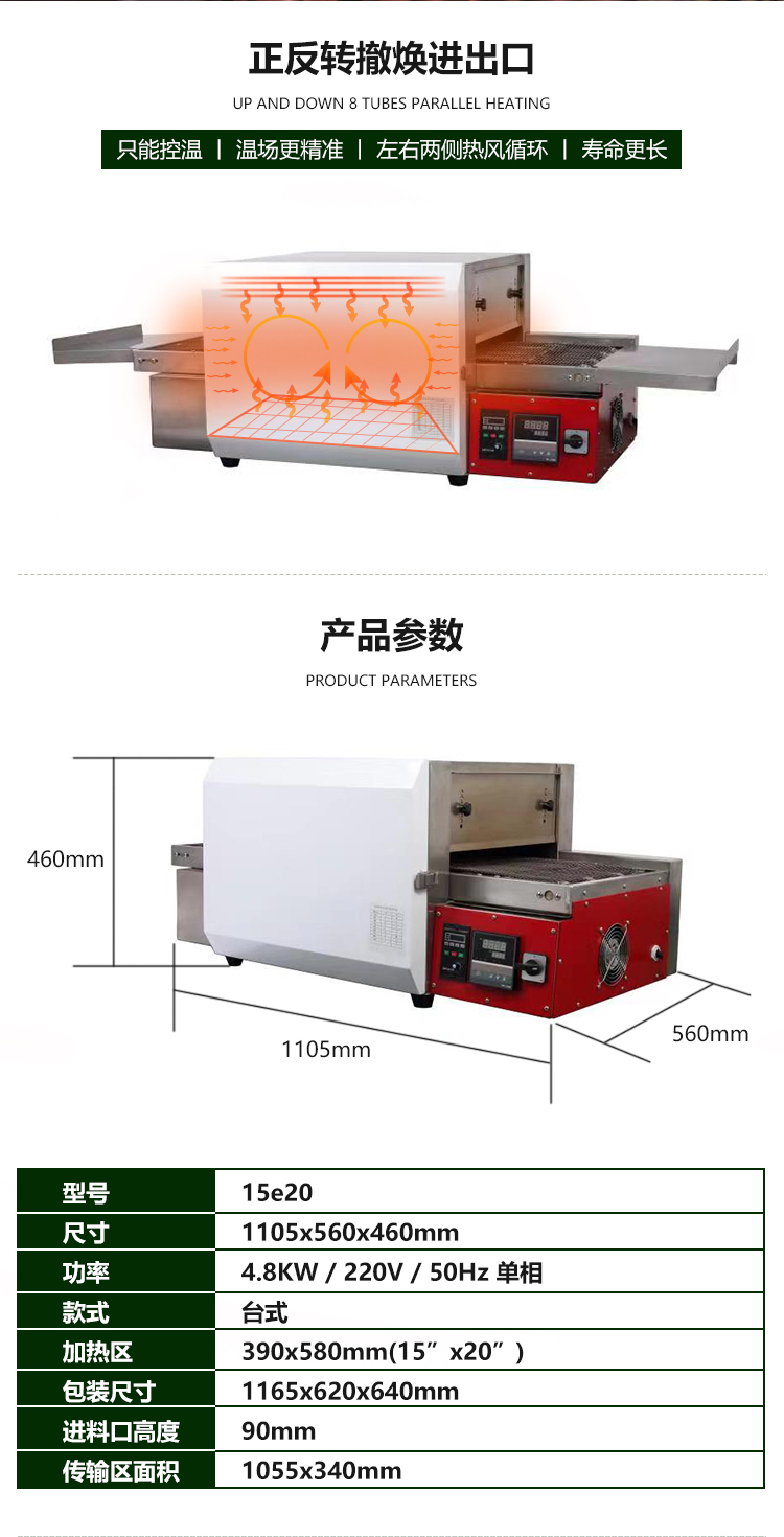 15E20欧罗巴万能链条式隧道披萨炉15寸x20寸热区