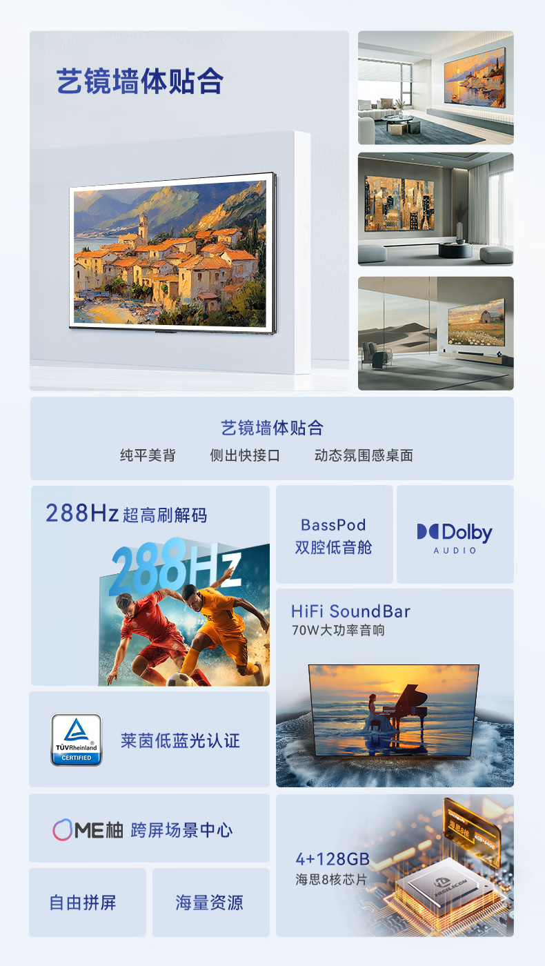 康佳电视 75M7E 75英寸 288Hz高刷游戏电视 纯平贴合壁纸系列 912892