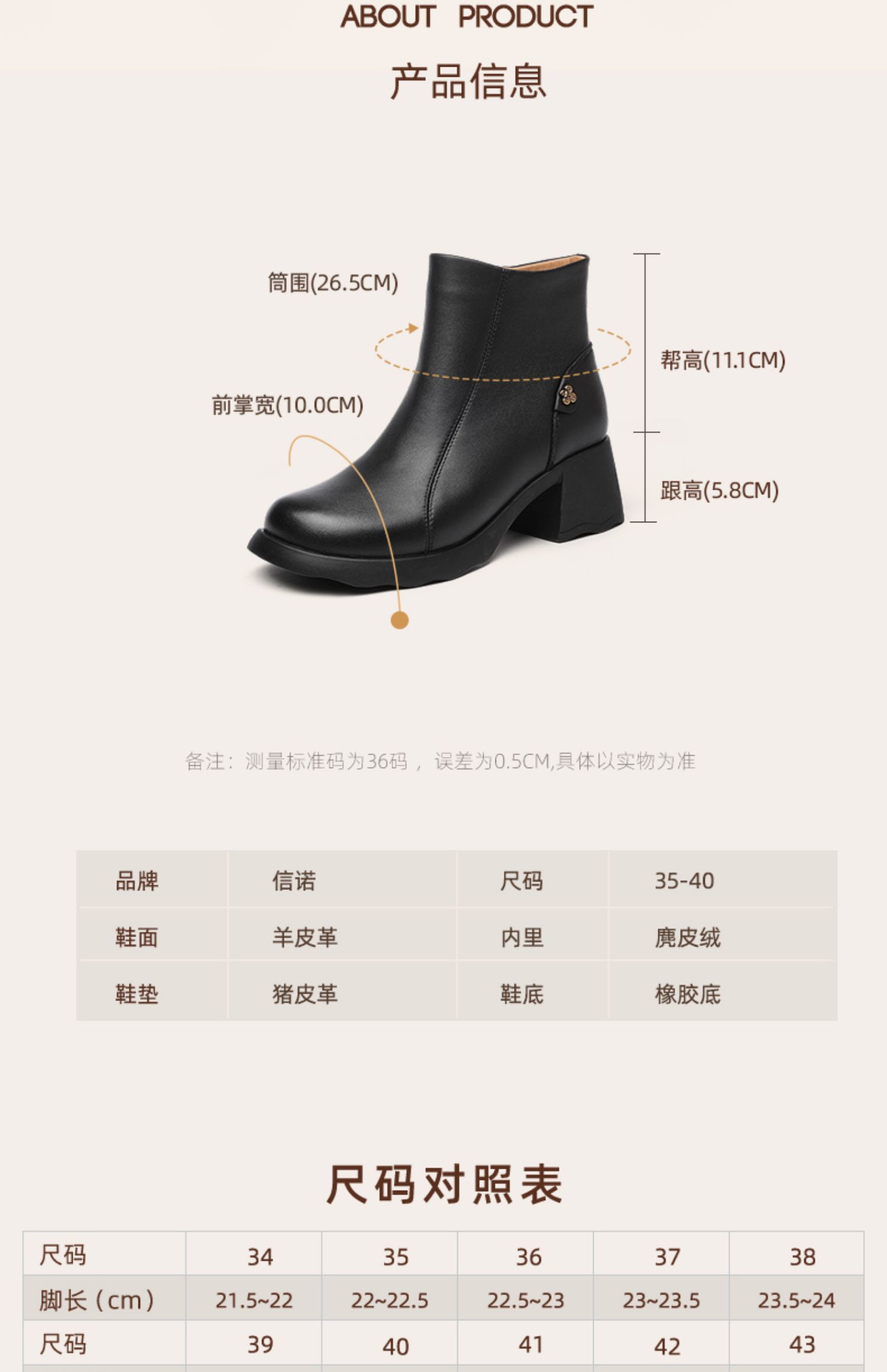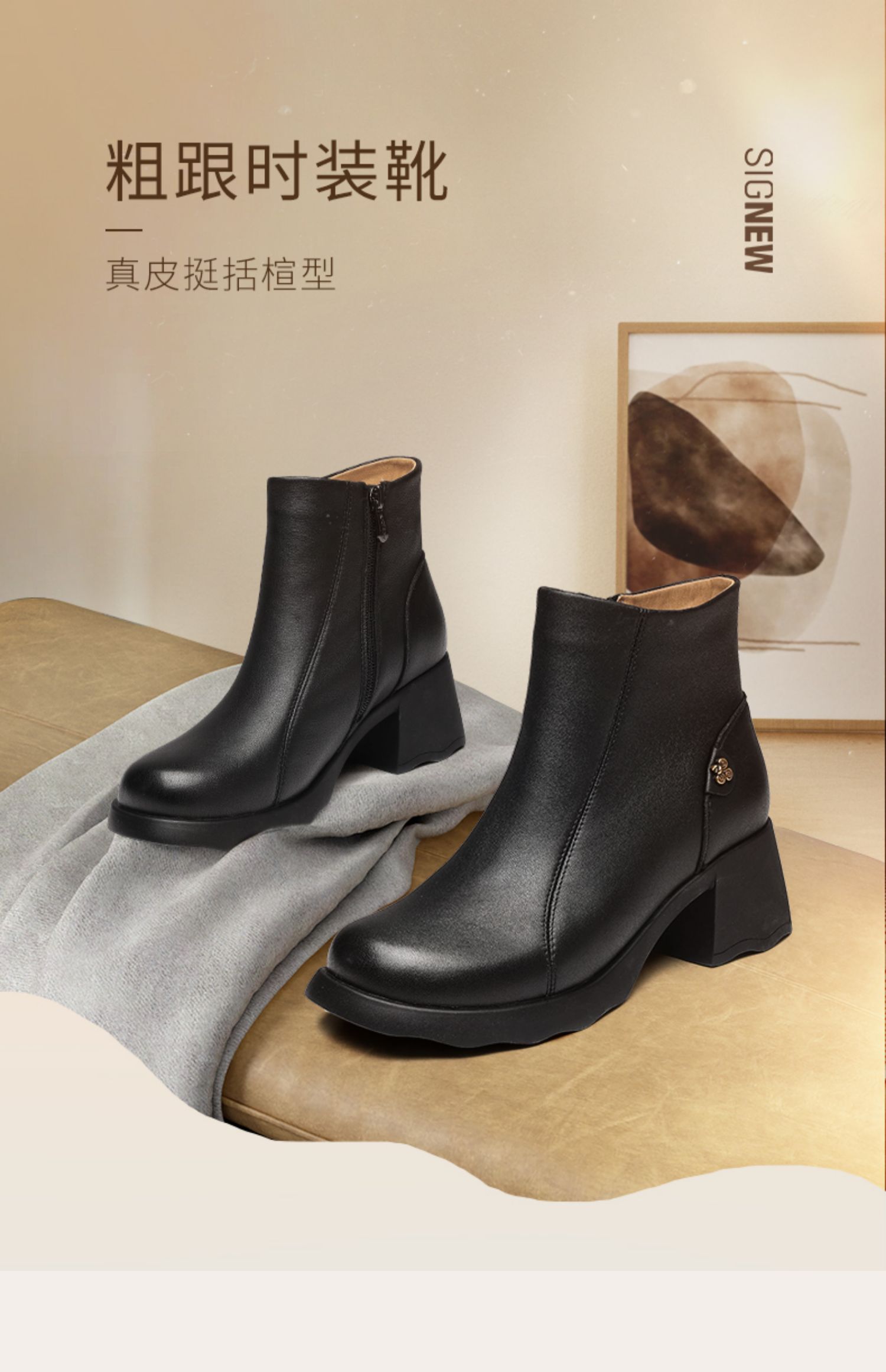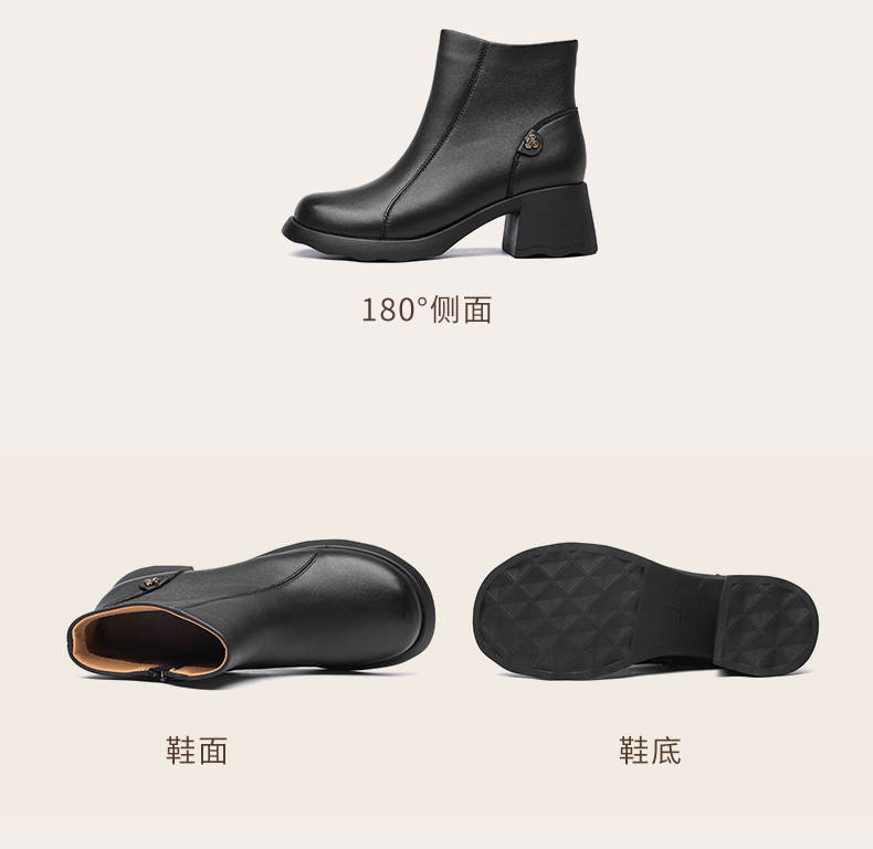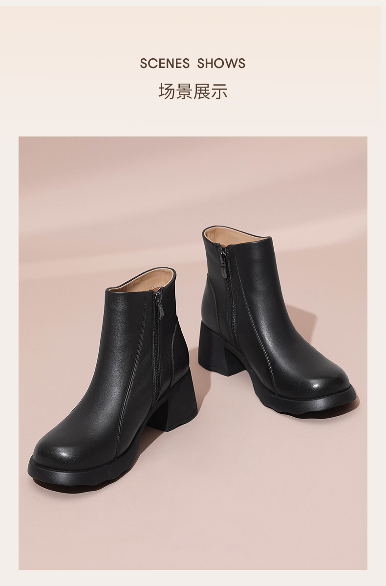 信诺超软羊皮短靴2024秋冬新款厚底切尔西靴复古皮靴真皮粗跟女靴X24M058-82