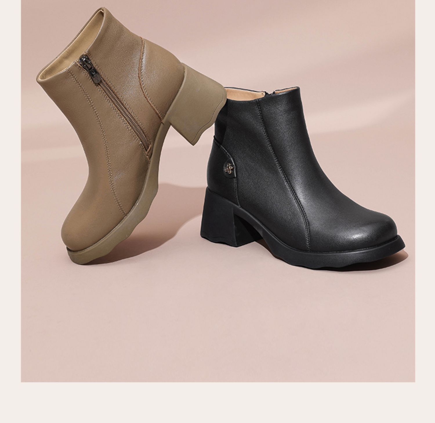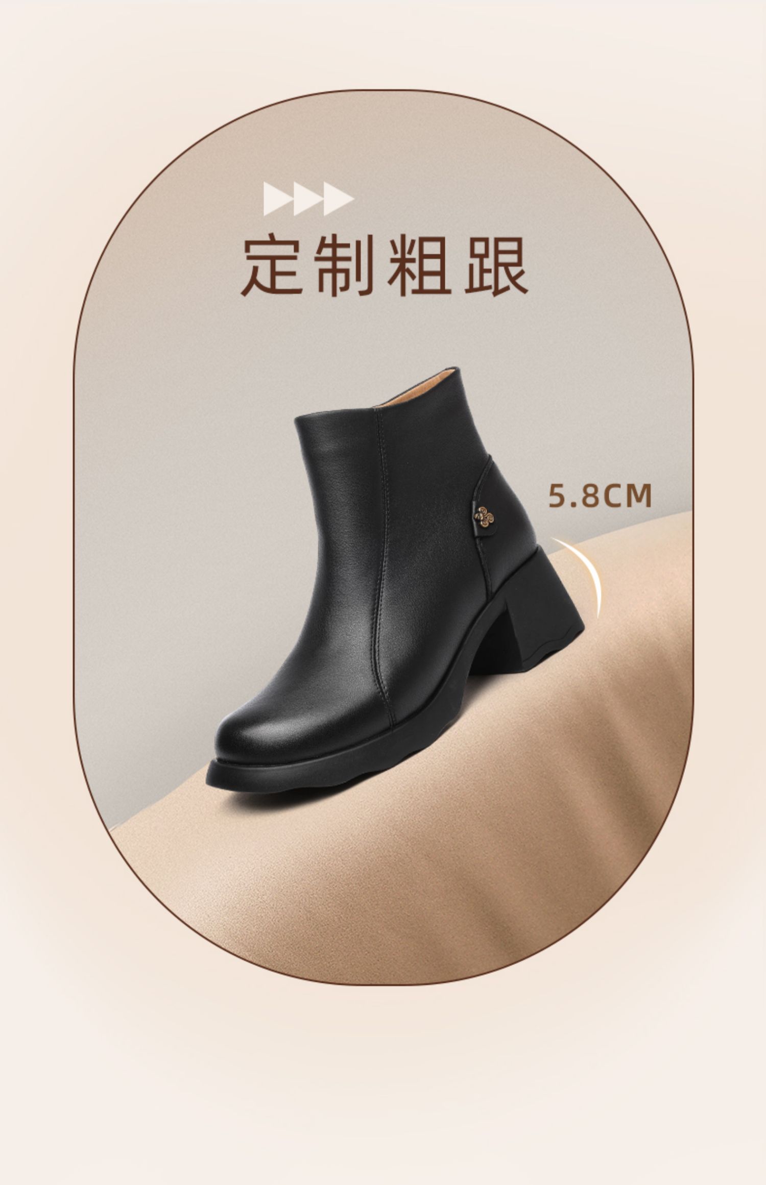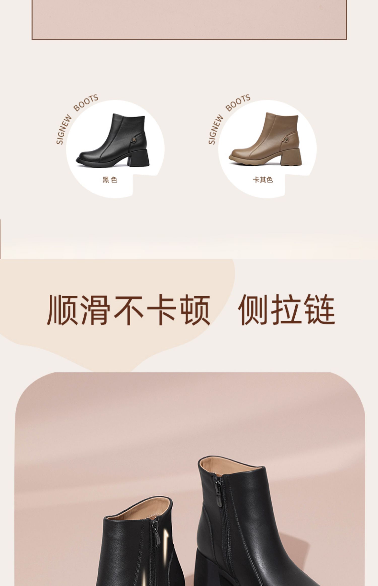 信诺超软羊皮短靴2024秋冬新款厚底切尔西靴复古皮靴真皮粗跟女靴X24M058-82