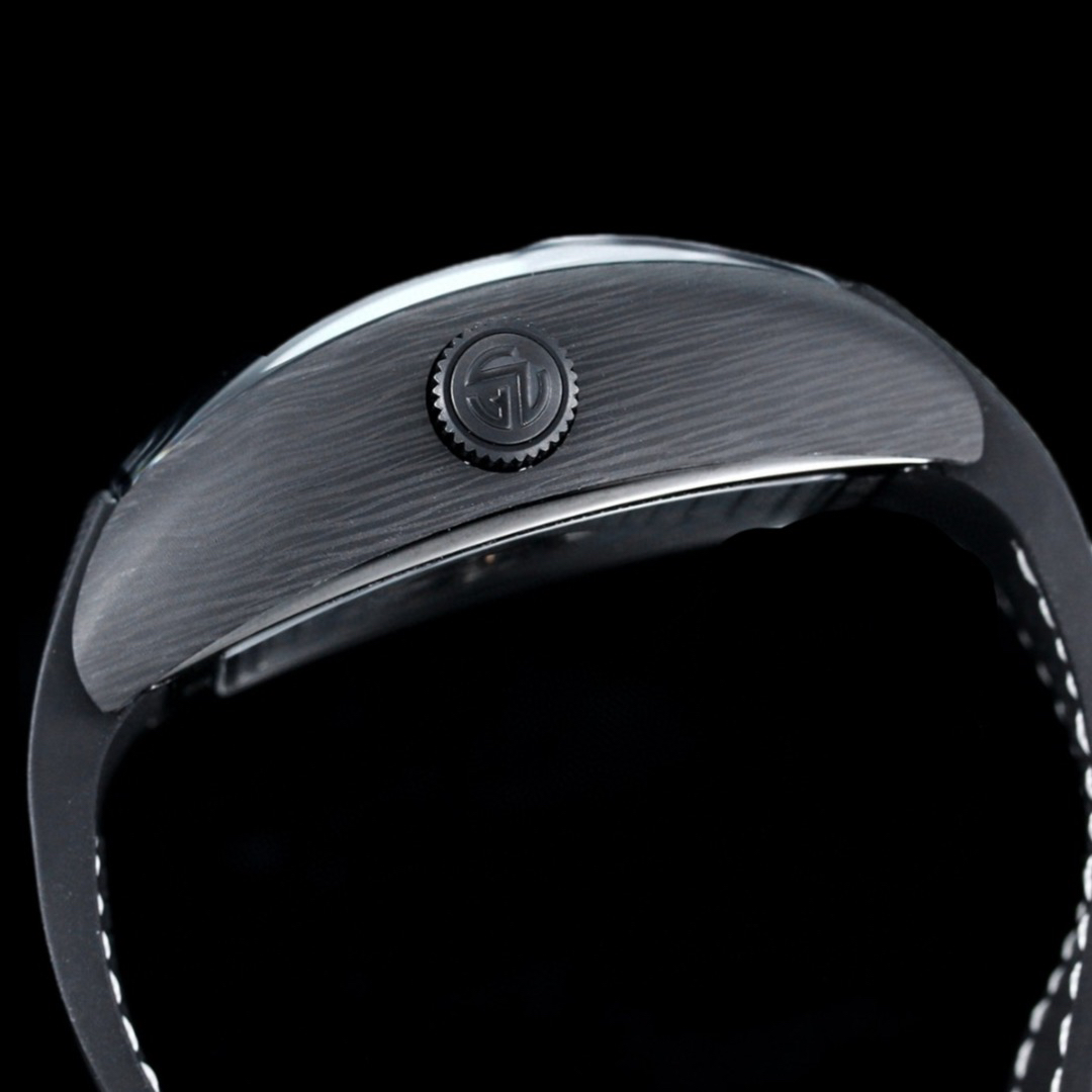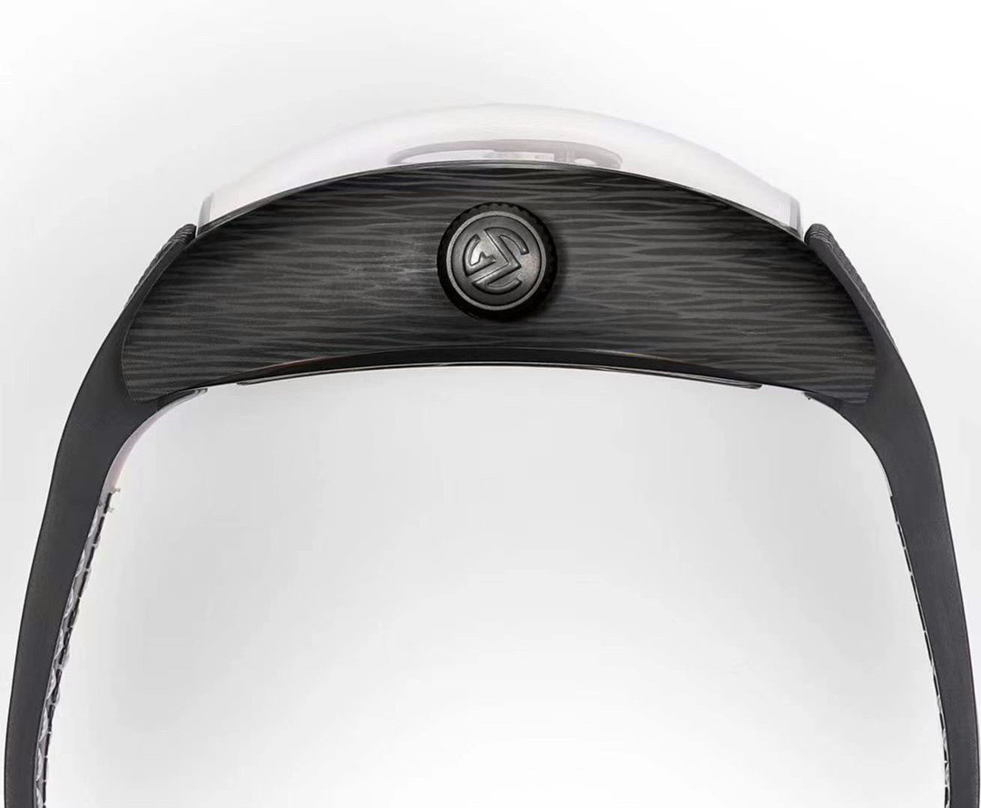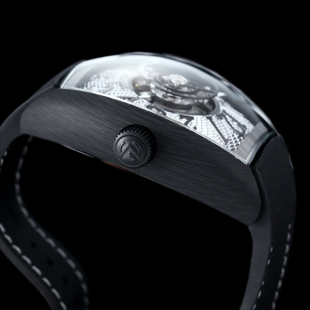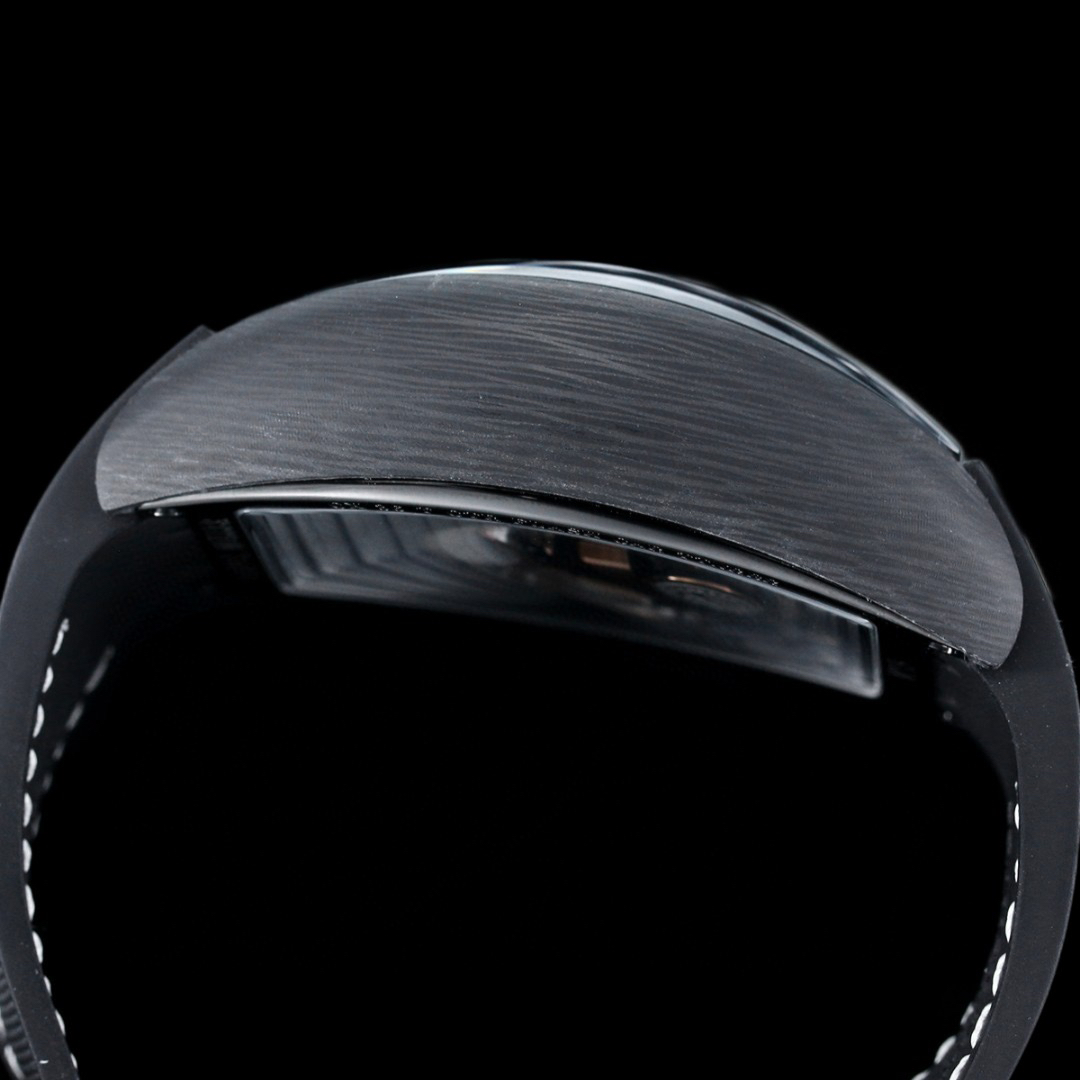 The Cintr é e Curdex barrel shaped case has been redesigned with slim and smooth lines, and the upper and lower ends of the mirror extend to the lugs, making the dial more spacious and open. The case is made of carbon fiber, with delicate texture. The black and gray stripes of carbon fiber create a subtle texture that is both charming and elegant, as well as abstract and casual.