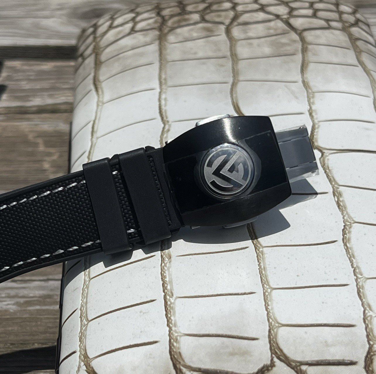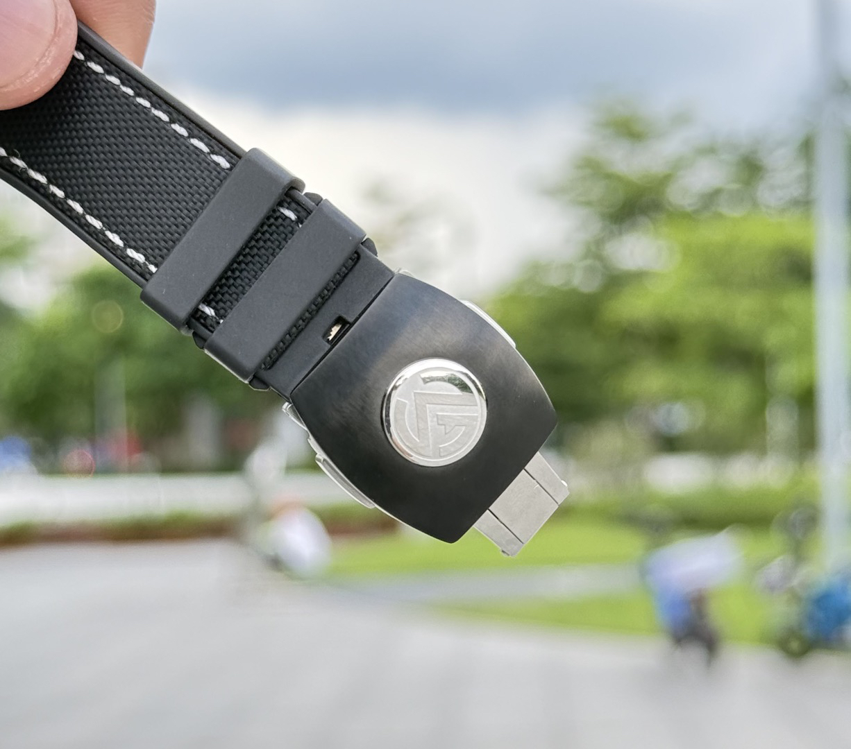 Paired with a fluorine rubber tailor nylon strap and a new special brushed folding clasp.