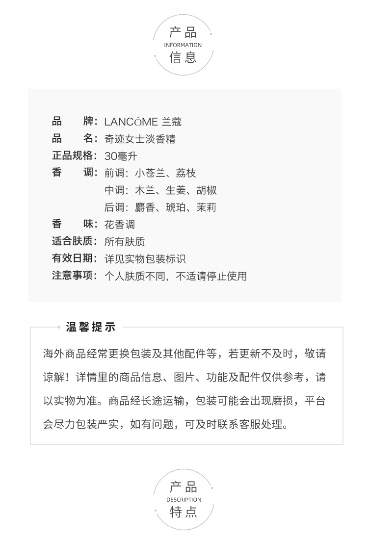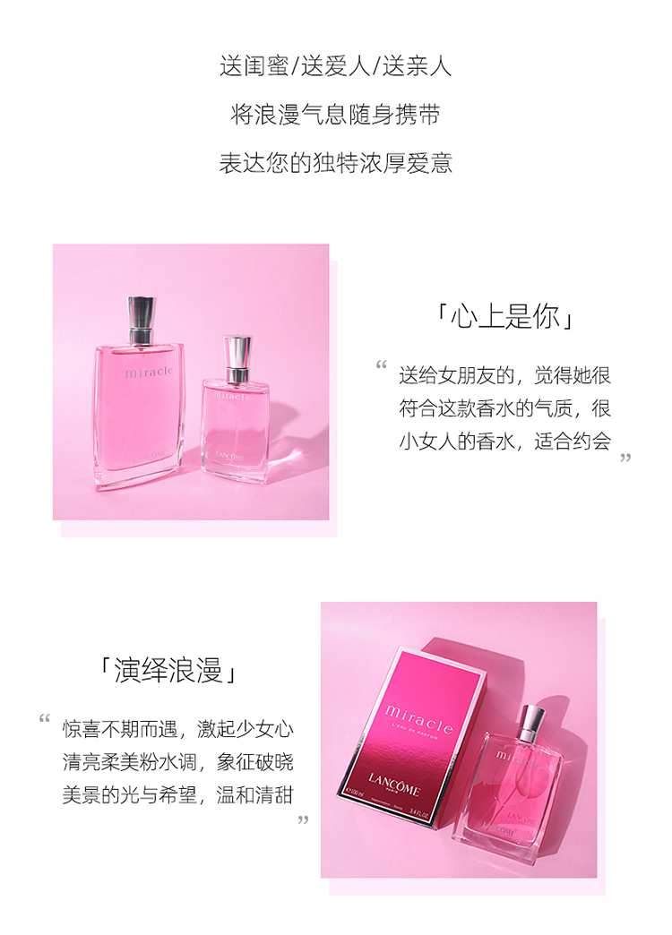 兰蔻奇迹香氛30ml/50ml/100ml 法国浪漫甜美清新花香调香水 送香水礼品袋【CDF】