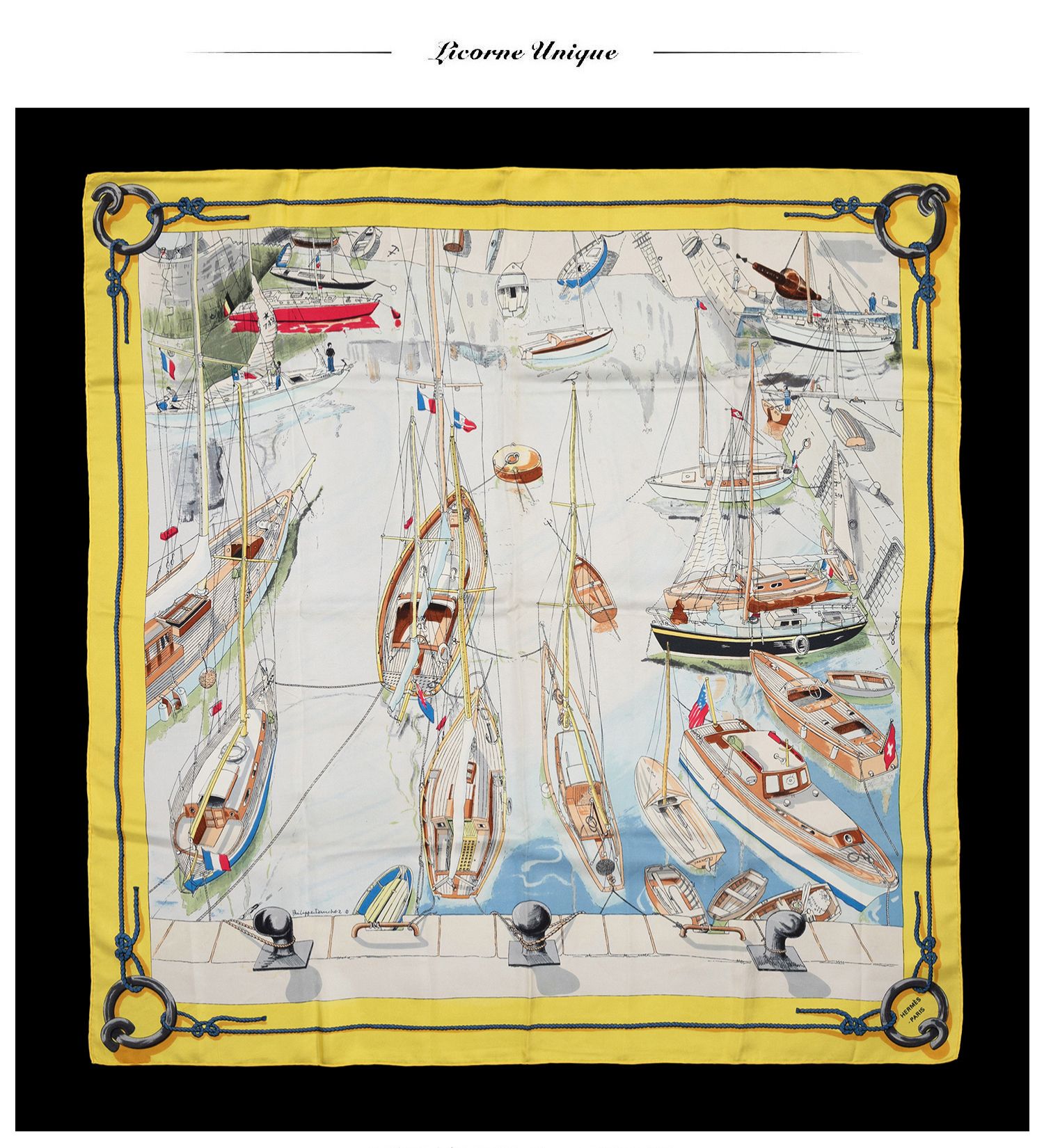 独角鹿西洋古董法国奢侈品牌BELLE ILE LE PORT美丽港口方形丝巾