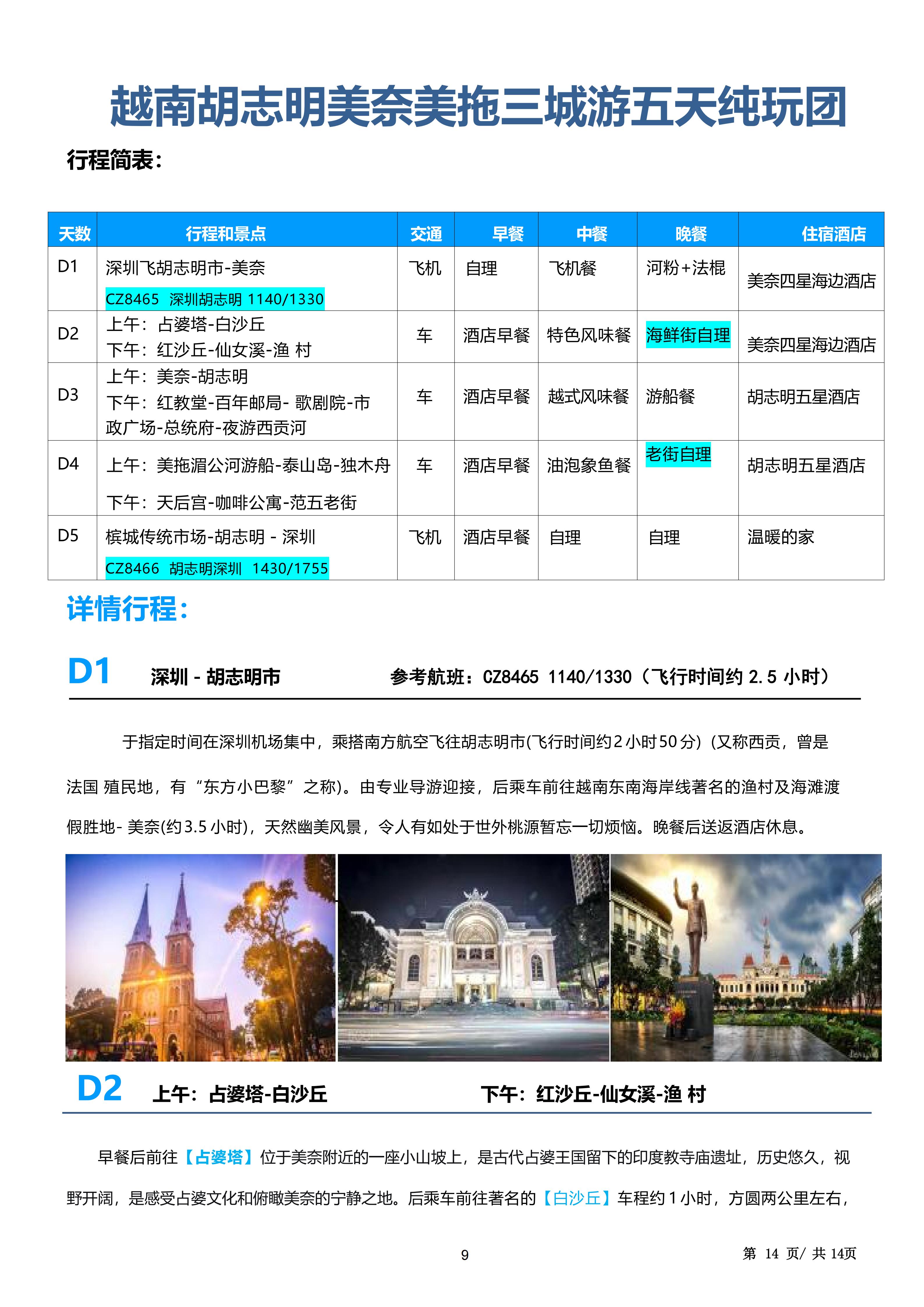 【五一】<越南胡志明、美奈、美拖三城游五天团-深圳直飞往返> 商品图0