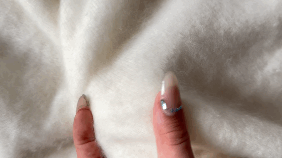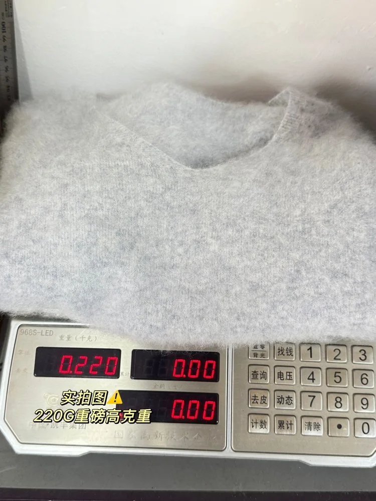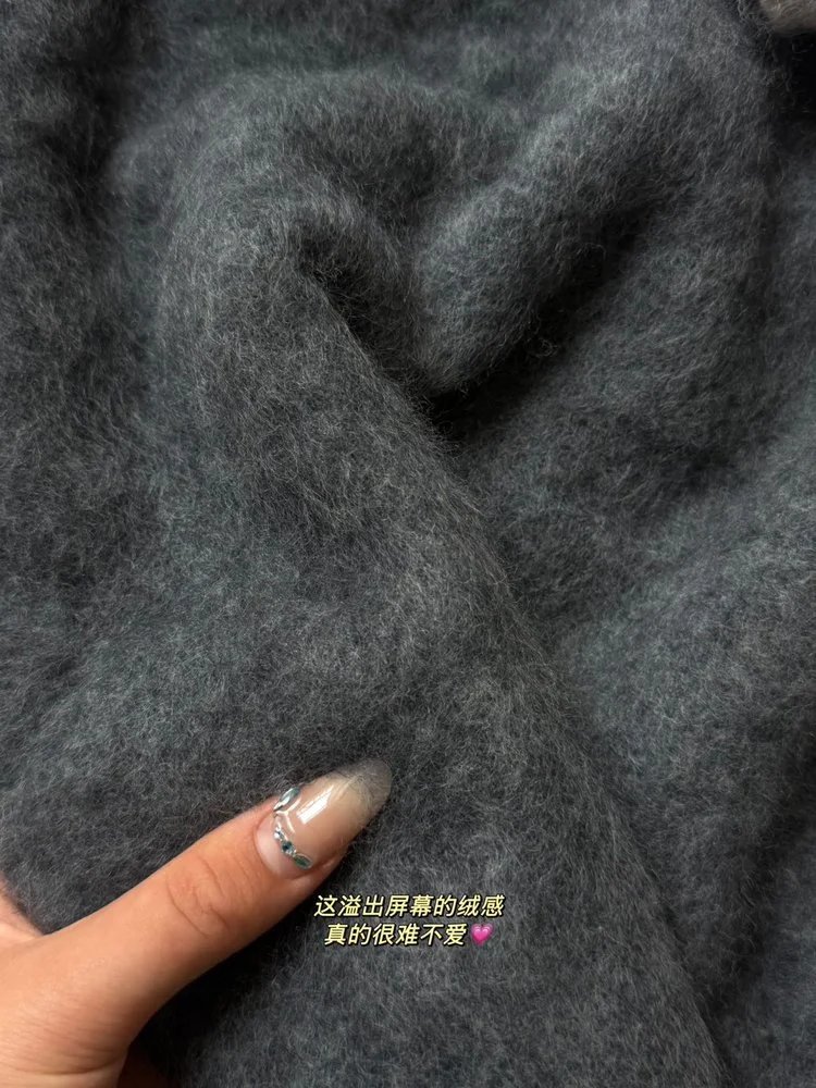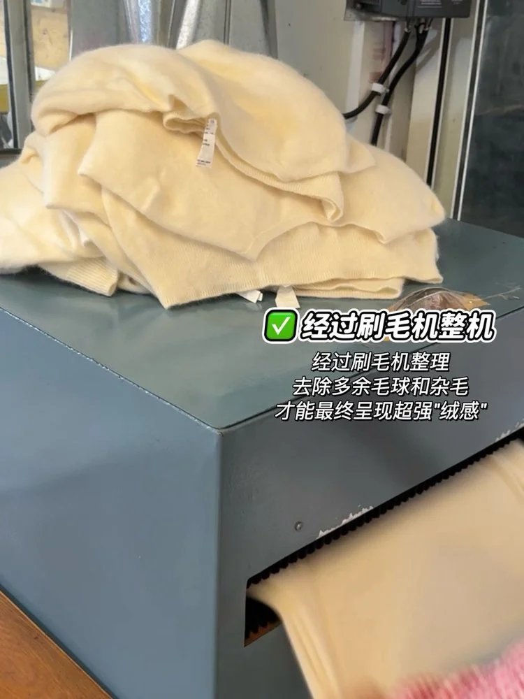 表面的绒感,是通过特殊的酵洗工艺,将卷曲的绒毛拉直出细长的绒面,从而形成这种朦胧柔暖的高级感,工艺复杂度和成本是普通羊毛羊绒衫的3-5倍,对工艺和原料的要求非常之高