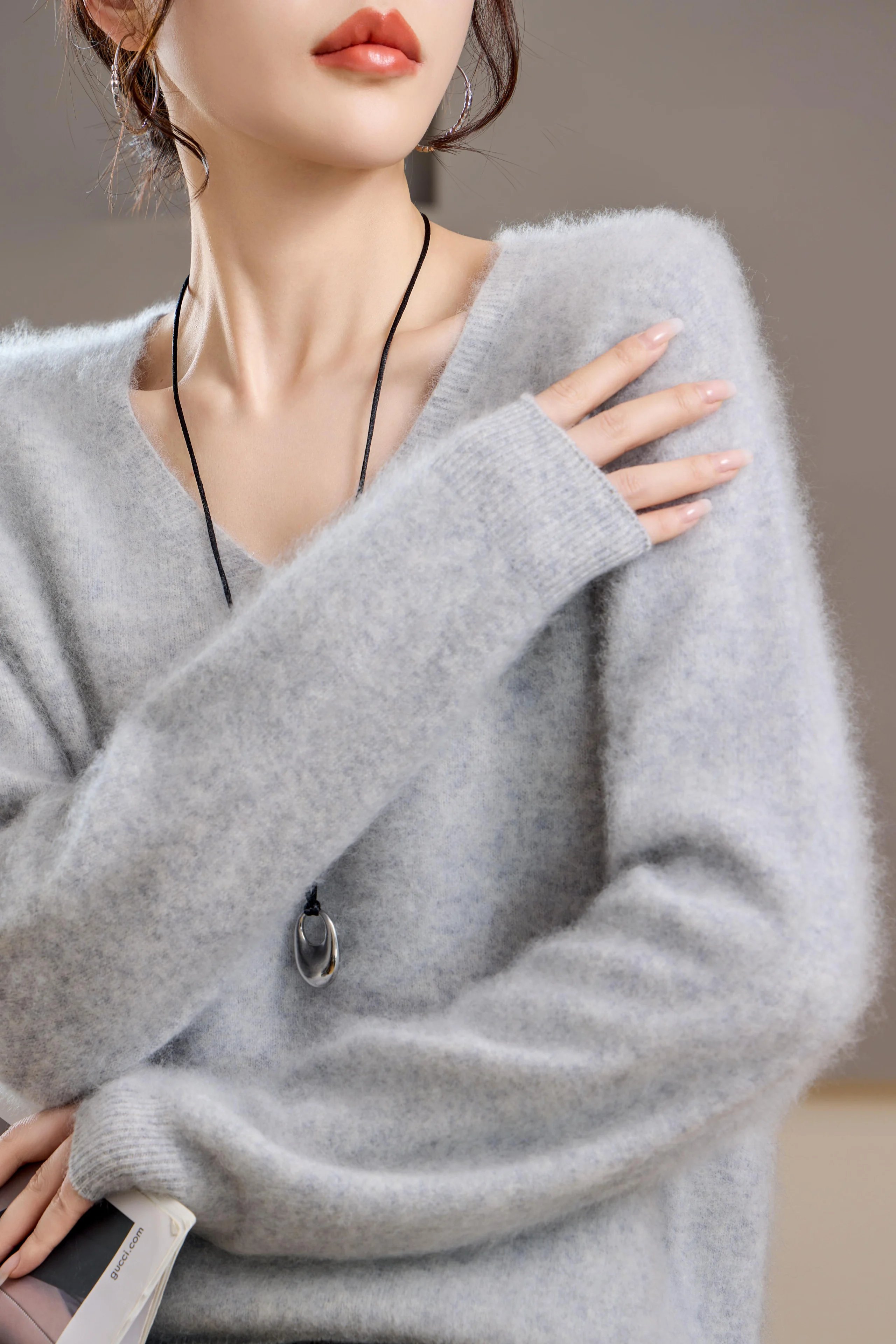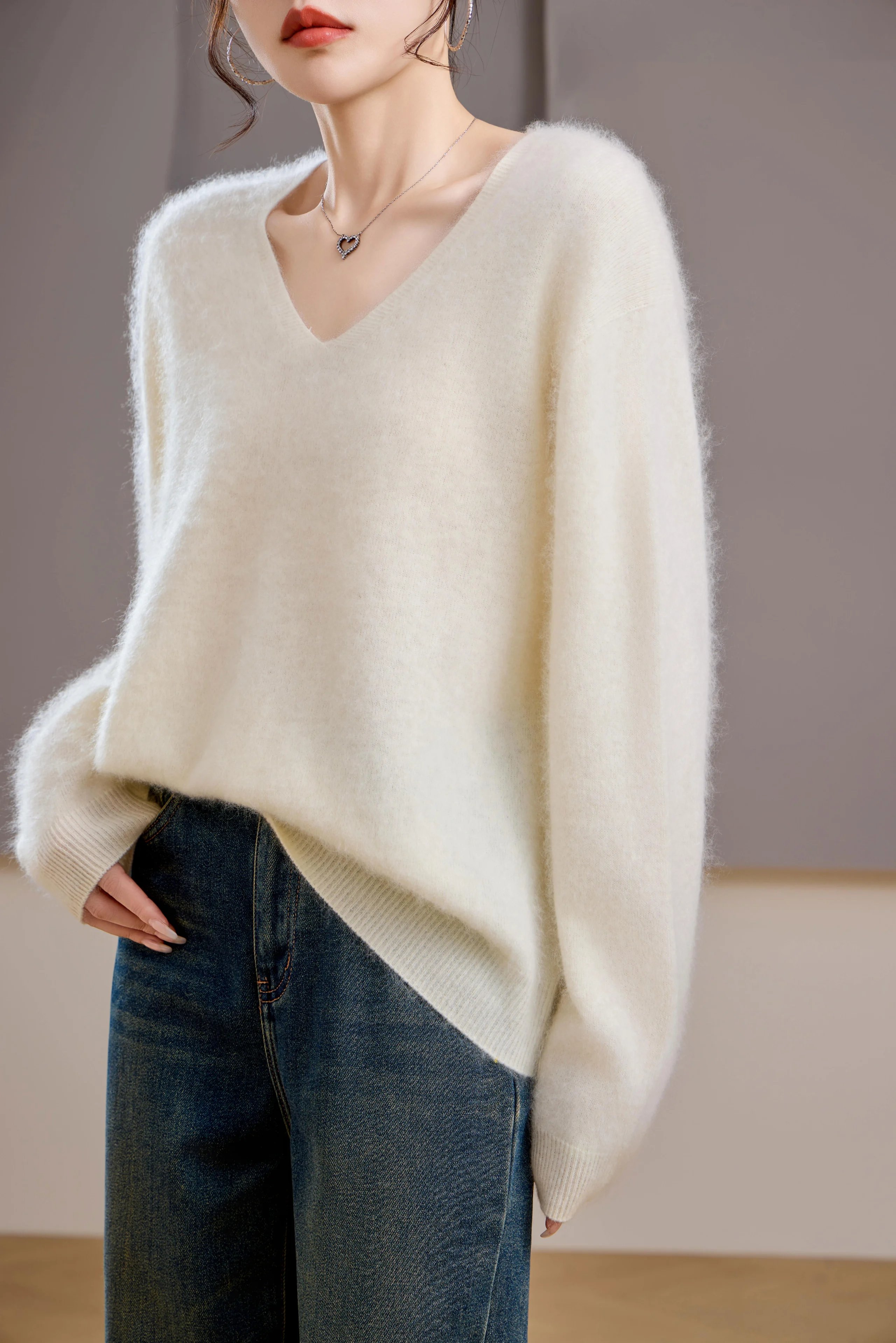 DLC反季清仓❗️贵妇级松弛感【秋冬拉毛羊毛衫672 V领】贴肤穿完全不扎痒✨Whole-Garment全成型编织工艺,无缝一体工艺,立体成型【2511“羊毛”服装】