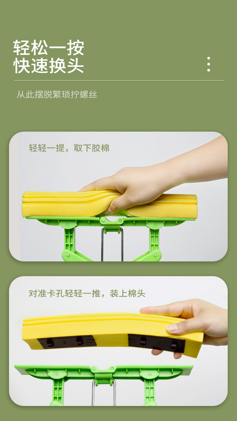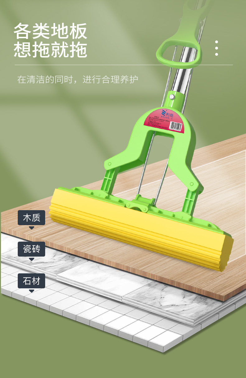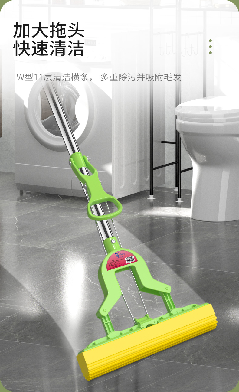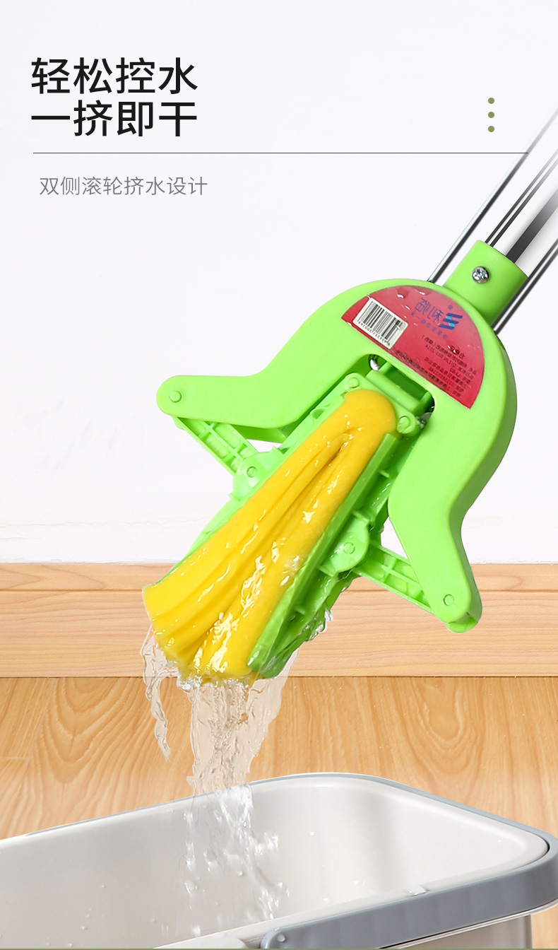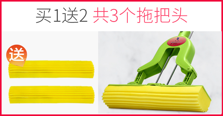 利临 (共3个头) 免手洗对折式挤水胶棉拖把 吸水海绵家用拖布 懒人墩布地拖办公干湿两用