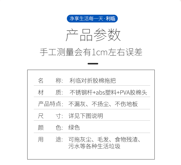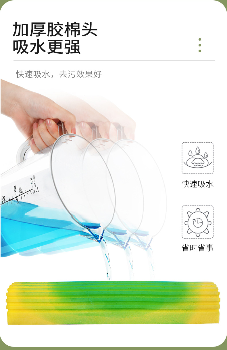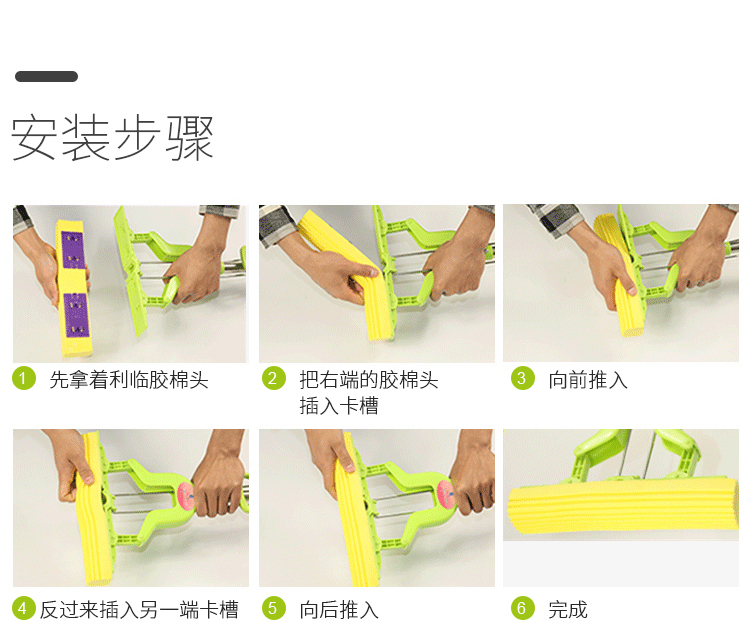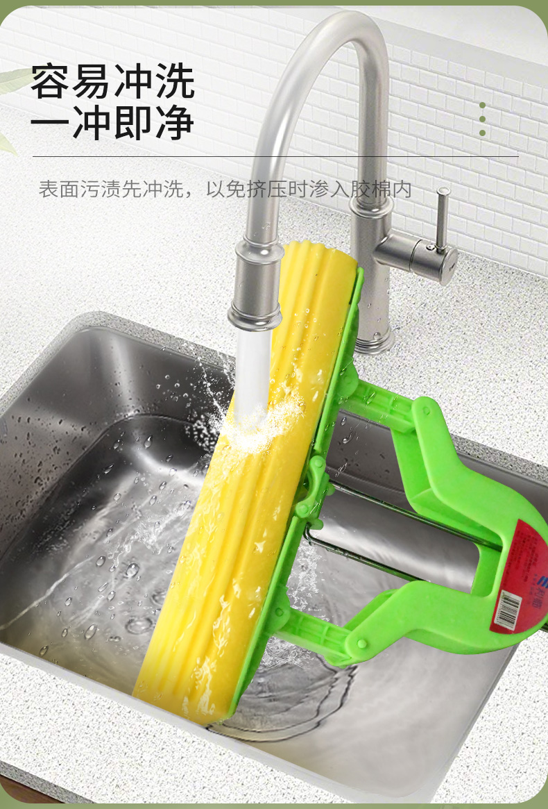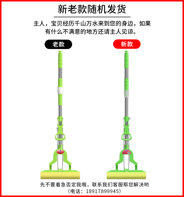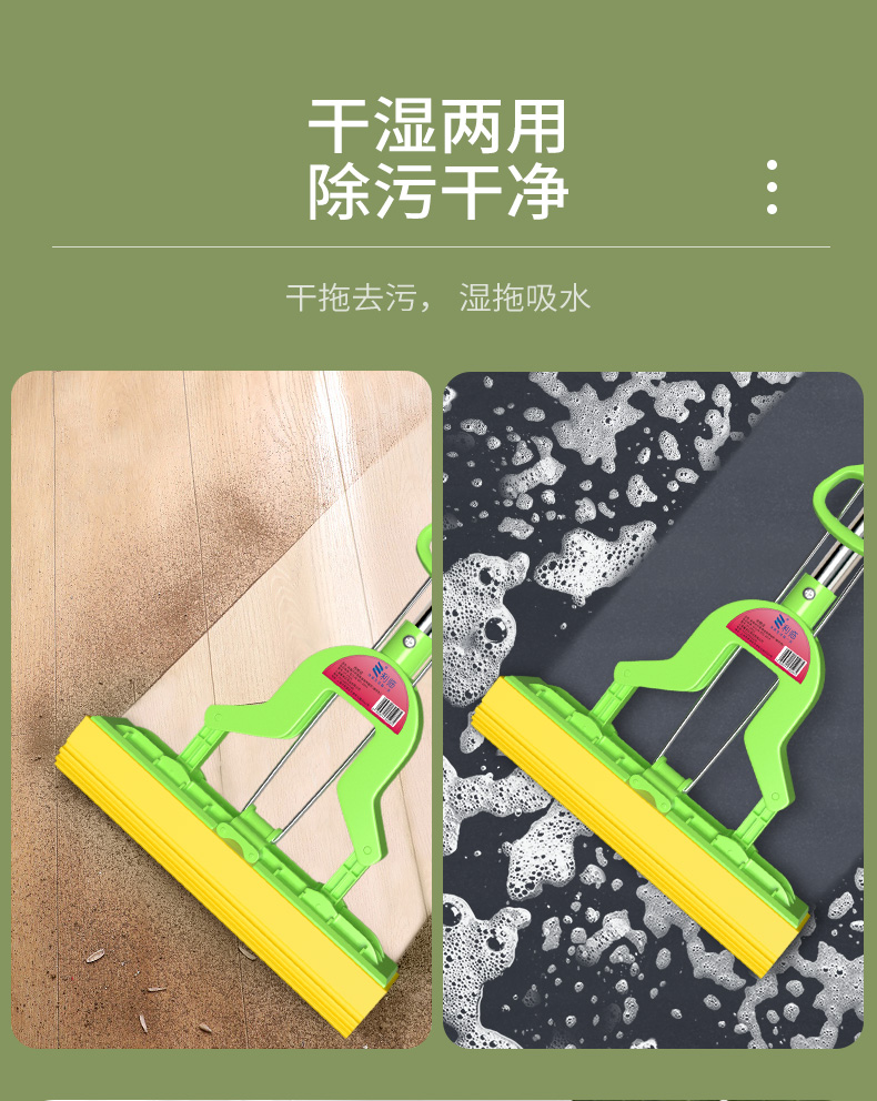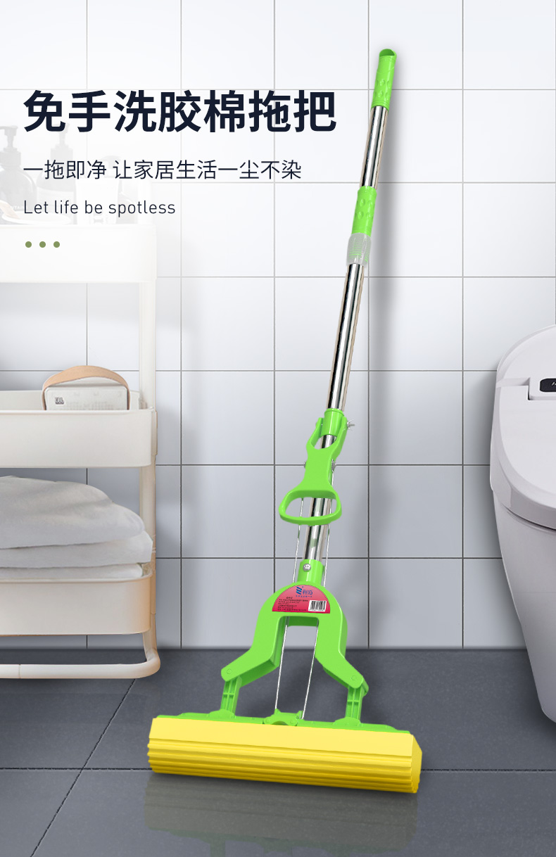 利临 (共3个头) 免手洗对折式挤水胶棉拖把 吸水海绵家用拖布 懒人墩布地拖办公干湿两用