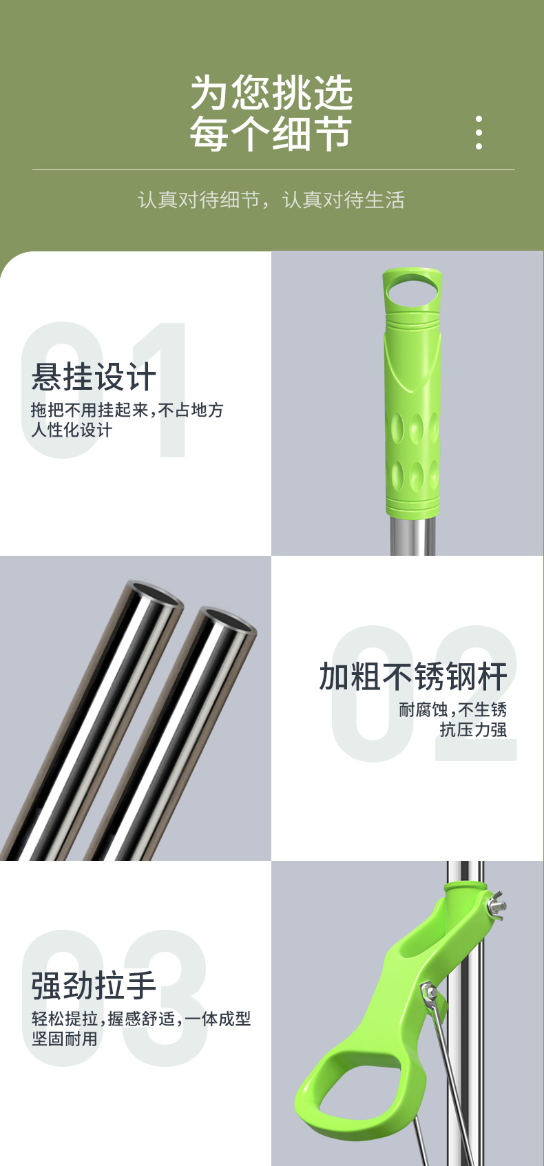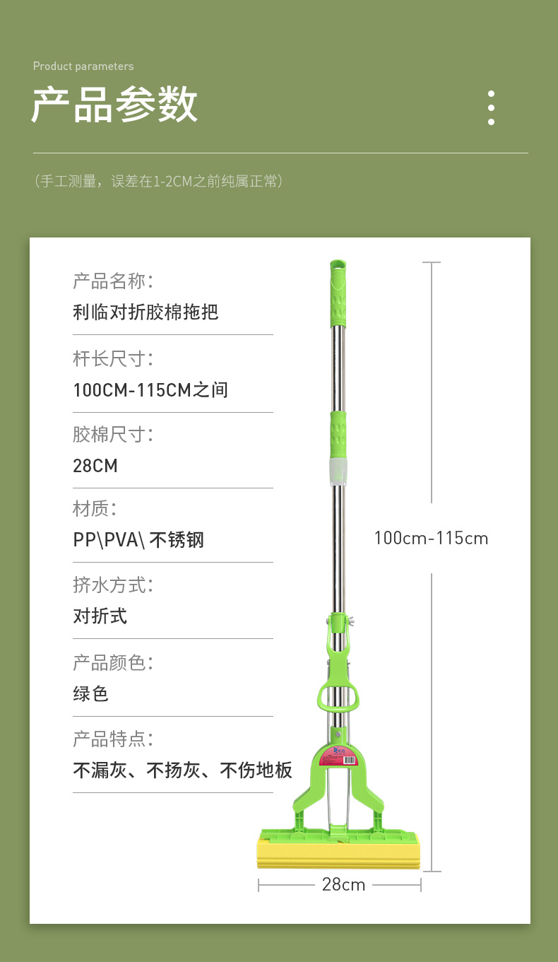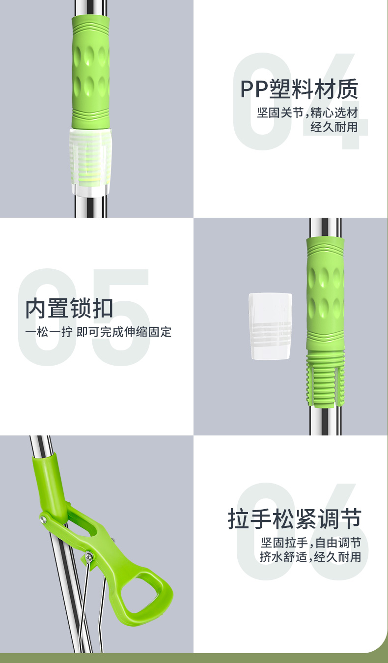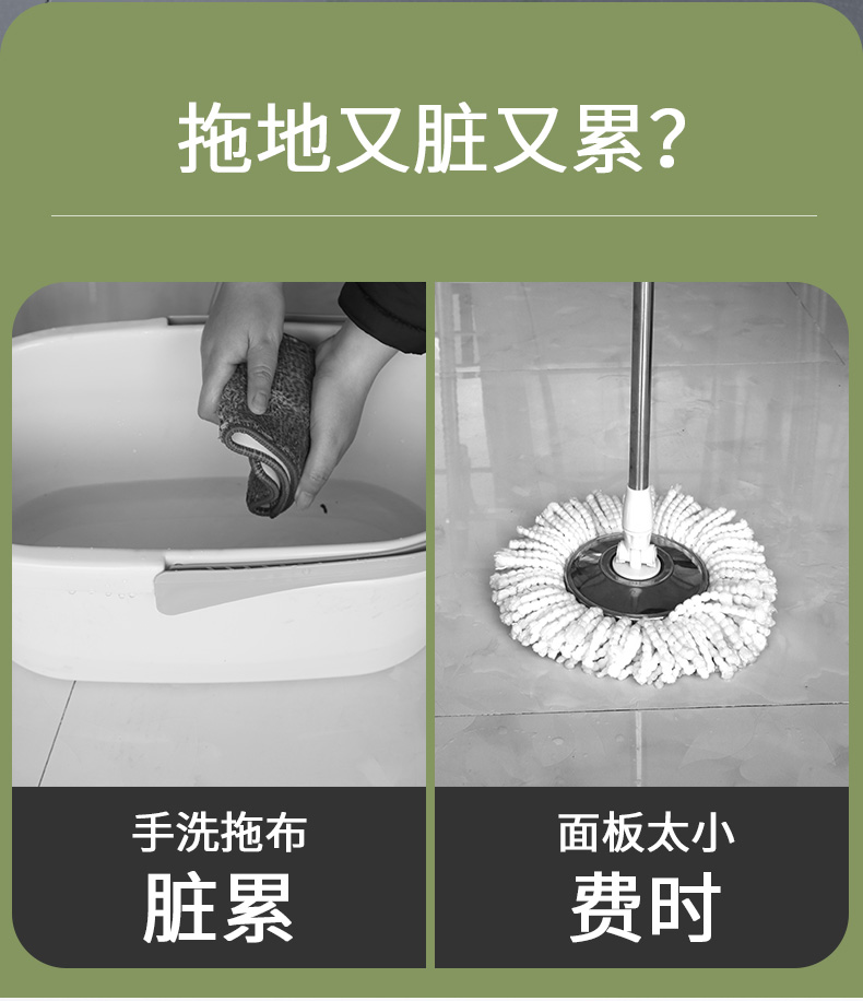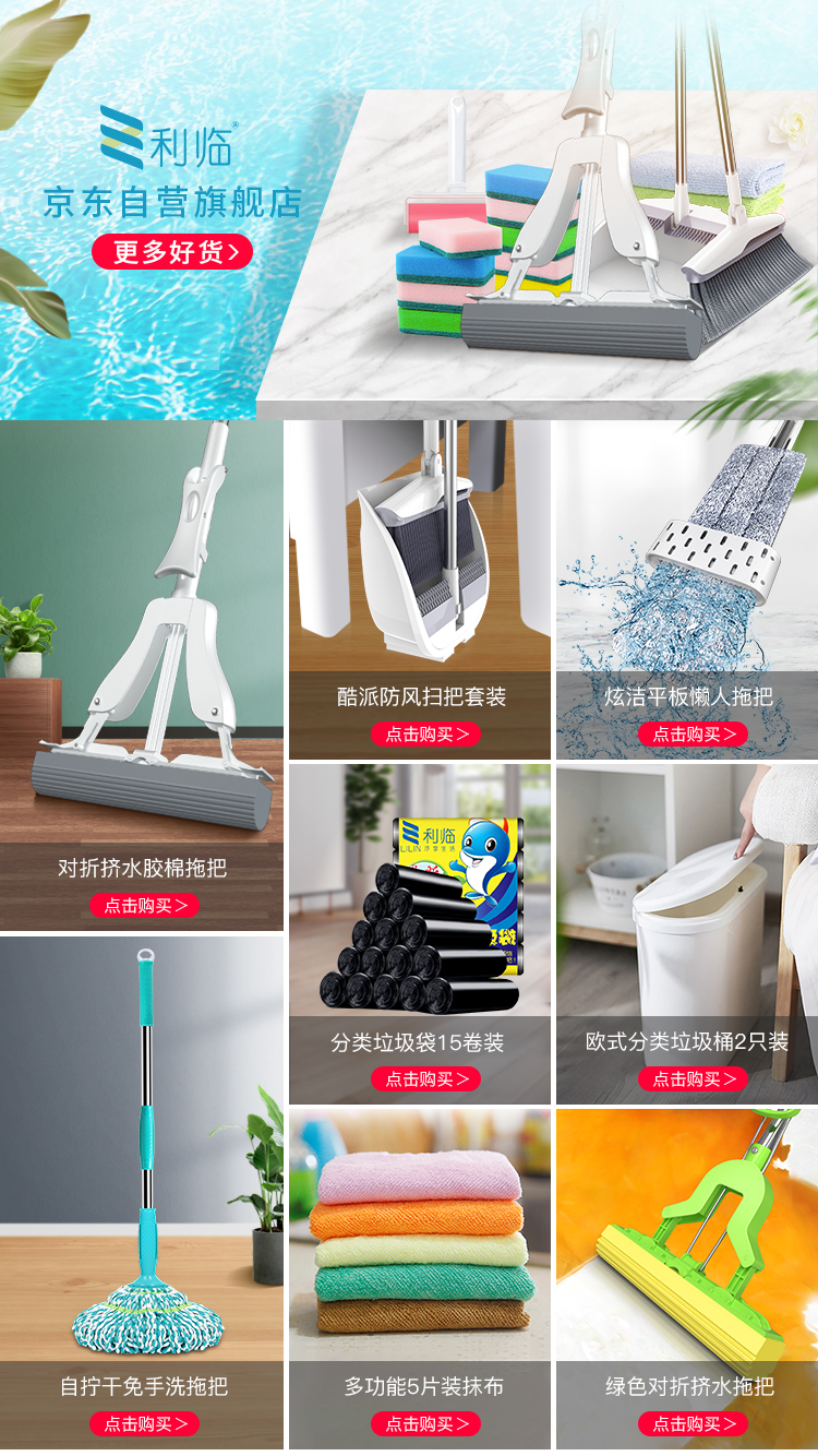 利临 (共3个头) 免手洗对折式挤水胶棉拖把 吸水海绵家用拖布 懒人墩布地拖办公干湿两用