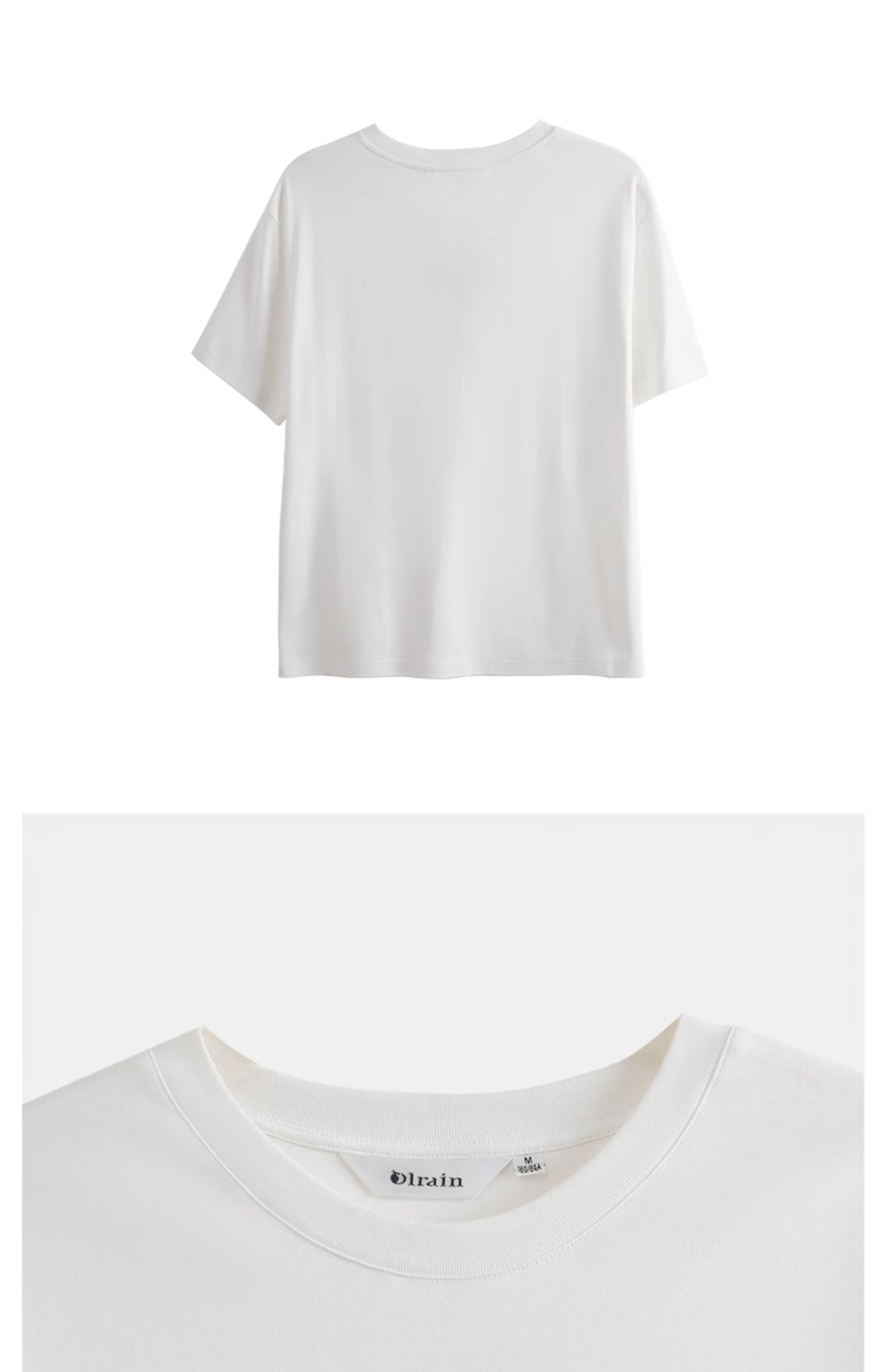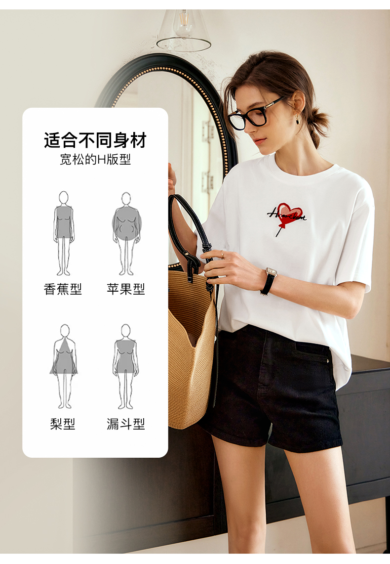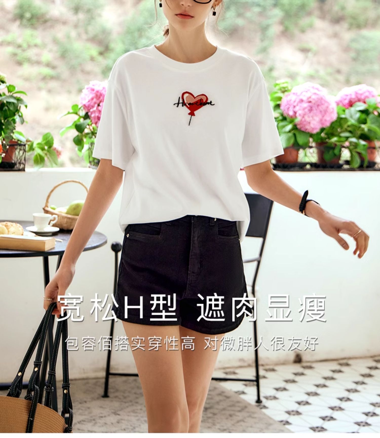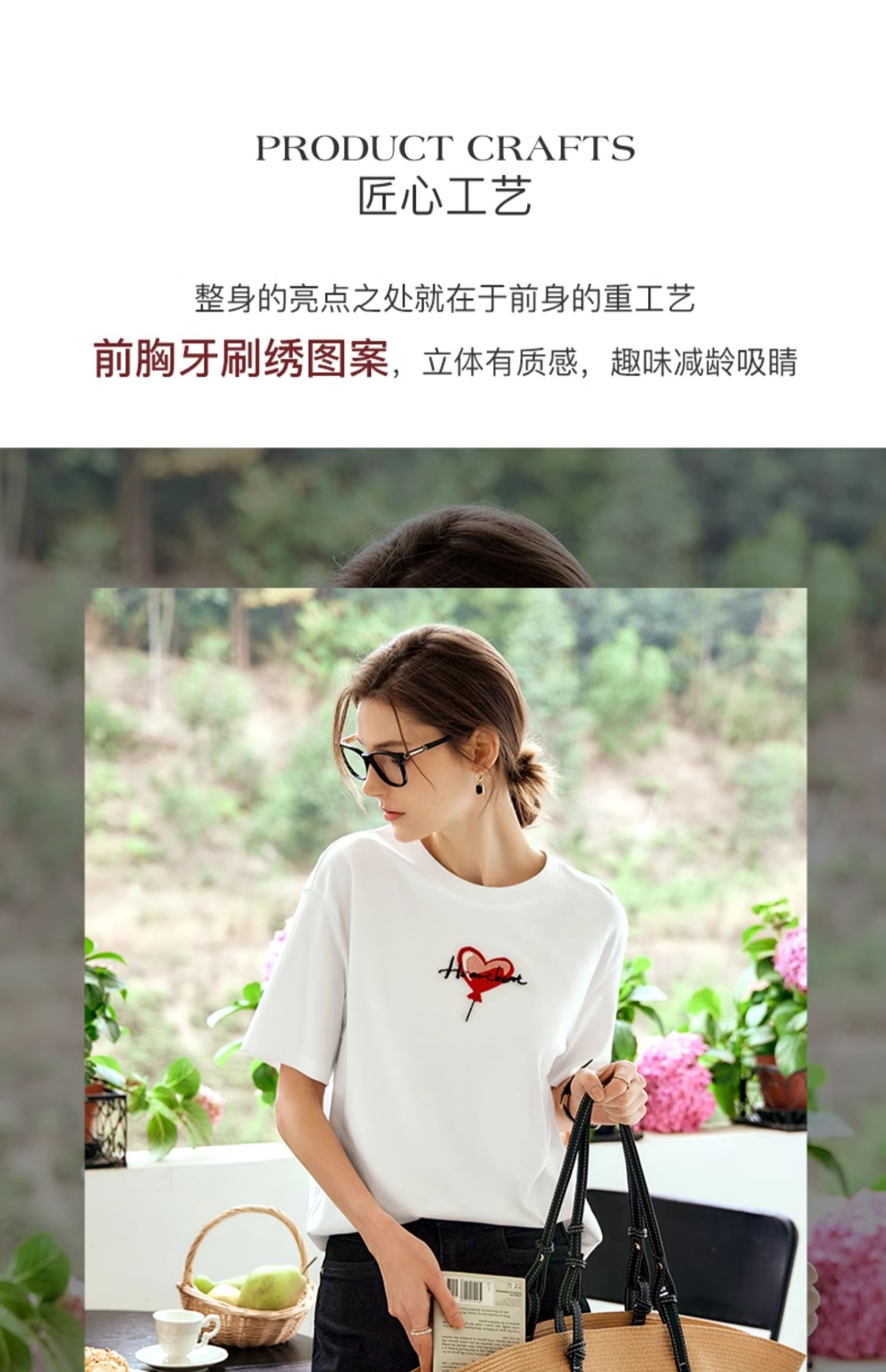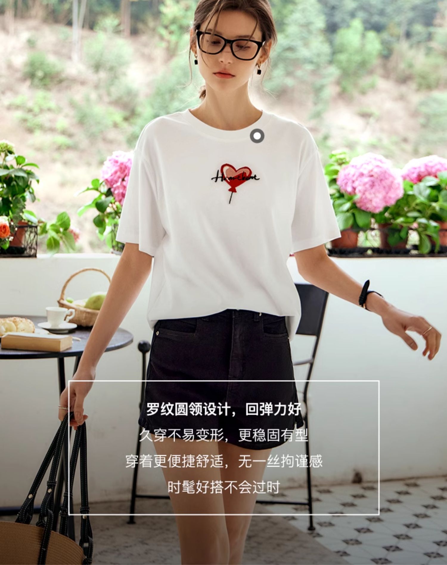 OLrain欧芮儿米白色短袖T恤女夏季2024新款时尚趣味刺绣圆领上衣
