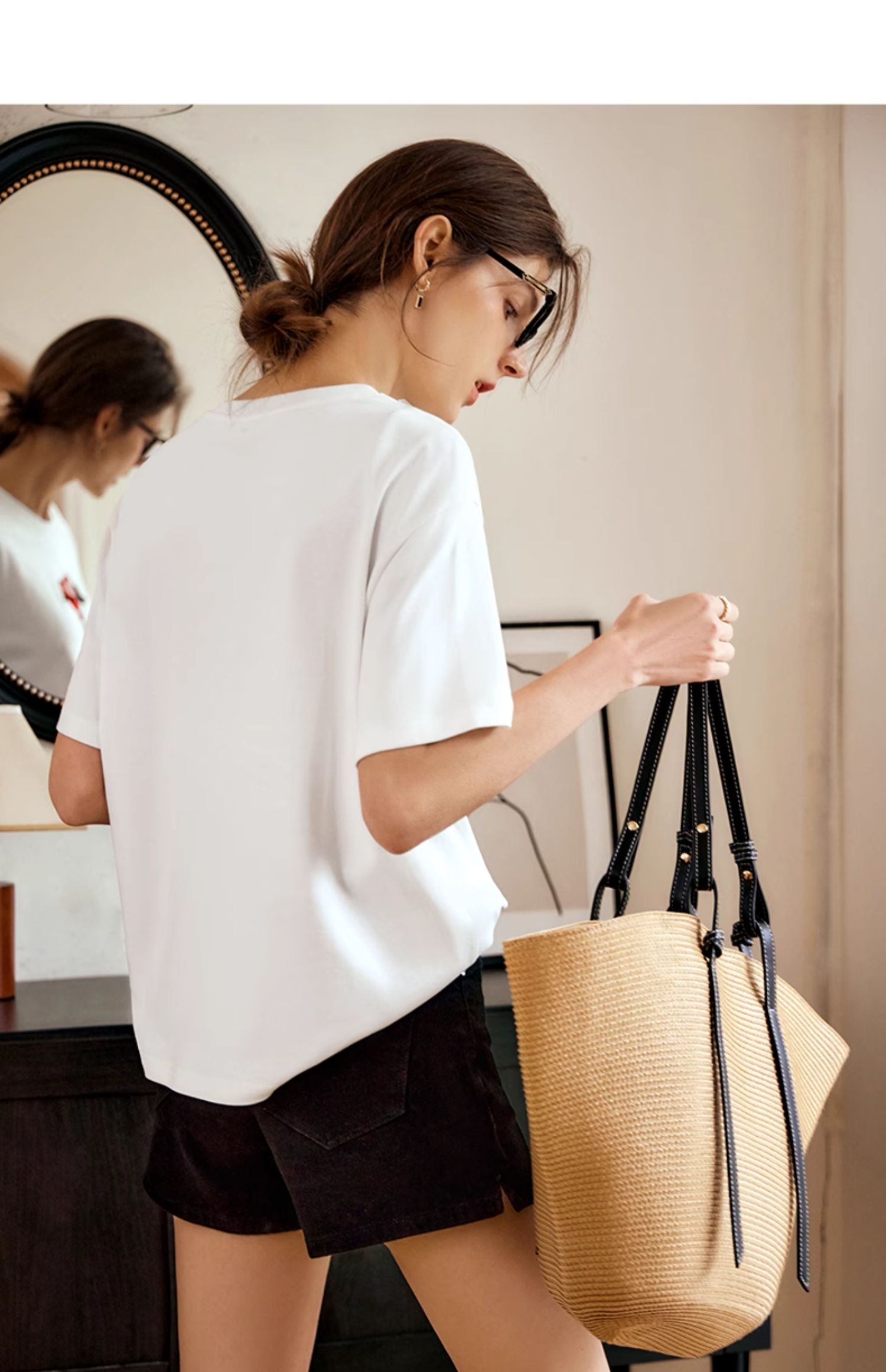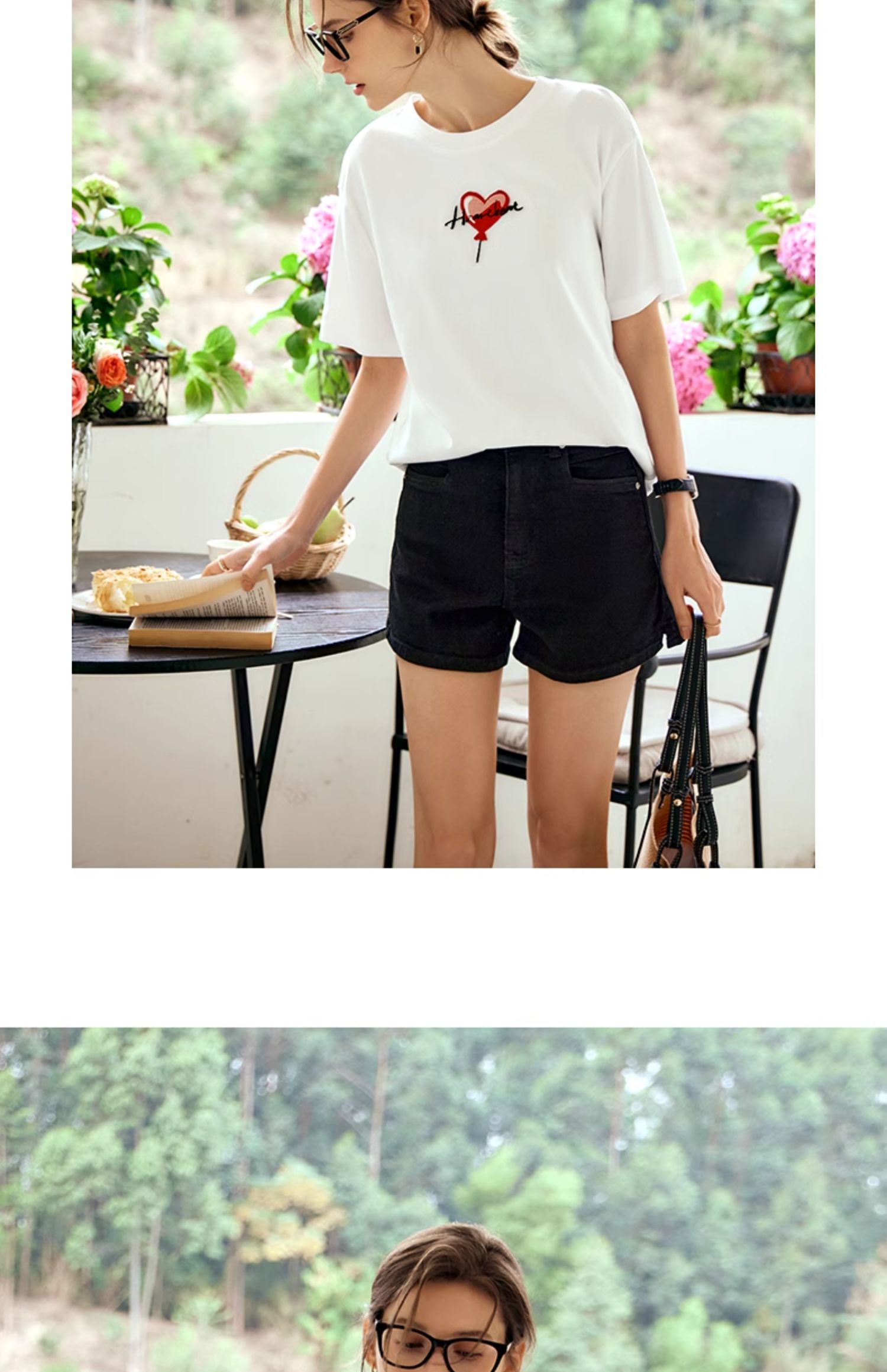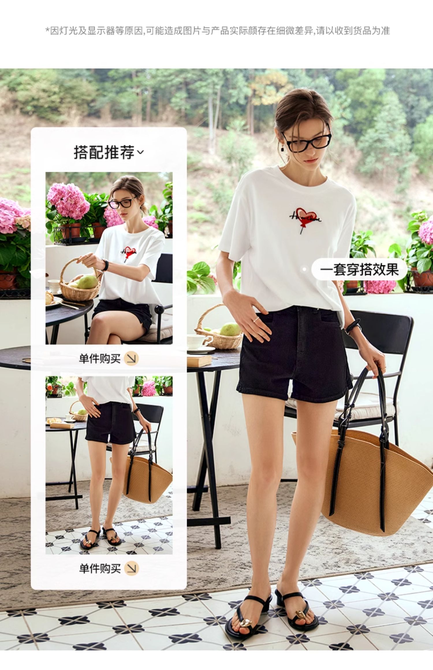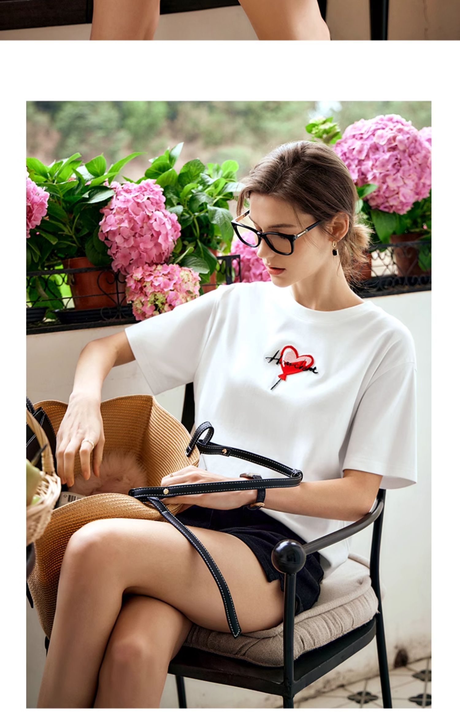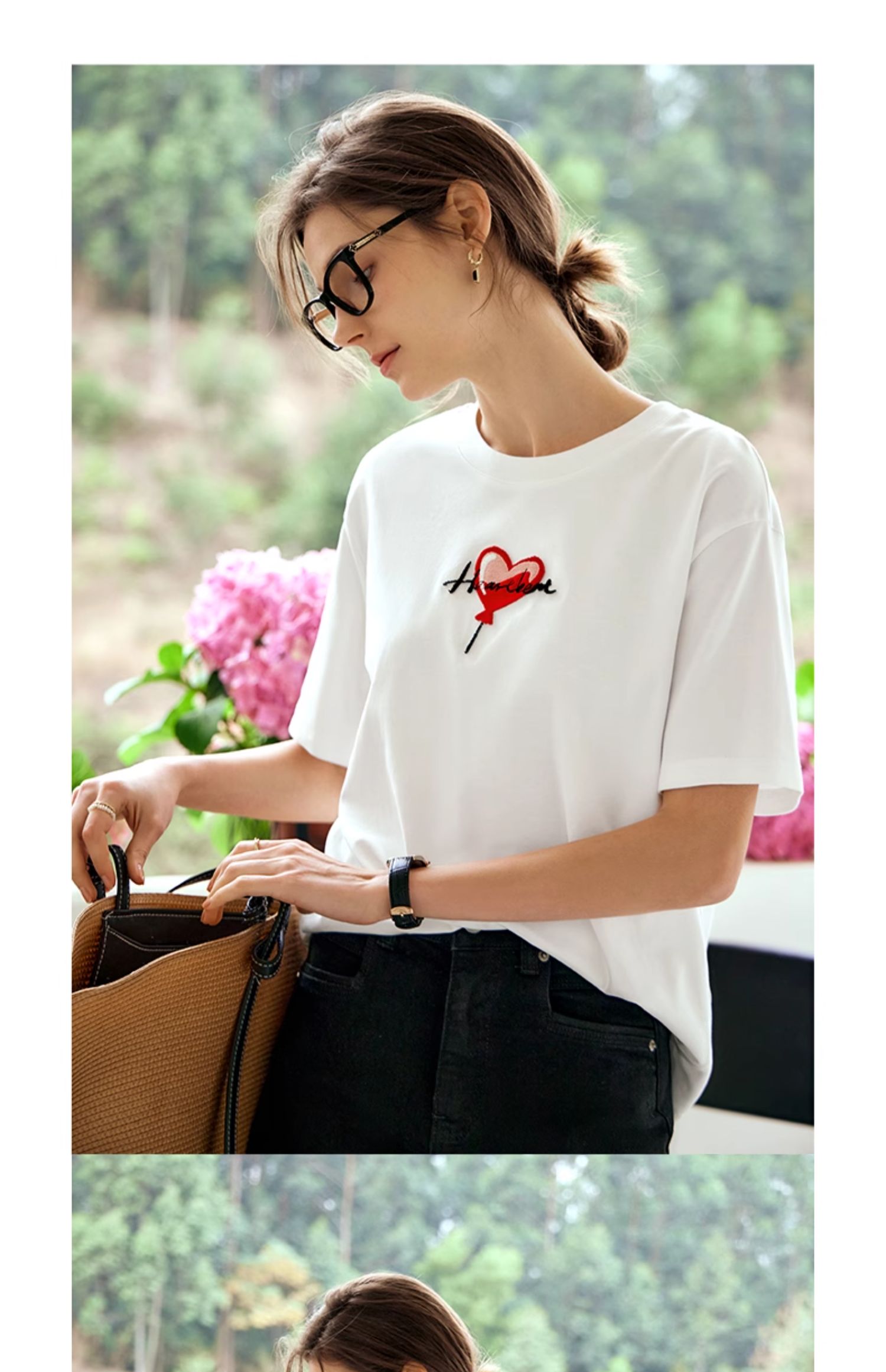 OLrain欧芮儿米白色短袖T恤女夏季2024新款时尚趣味刺绣圆领上衣