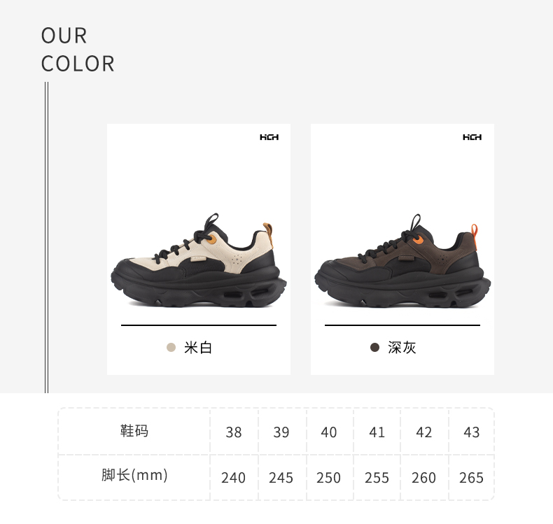和诚行 2024秋冬新款复古撞色百搭男鞋厚底休闲户外登山鞋1050136