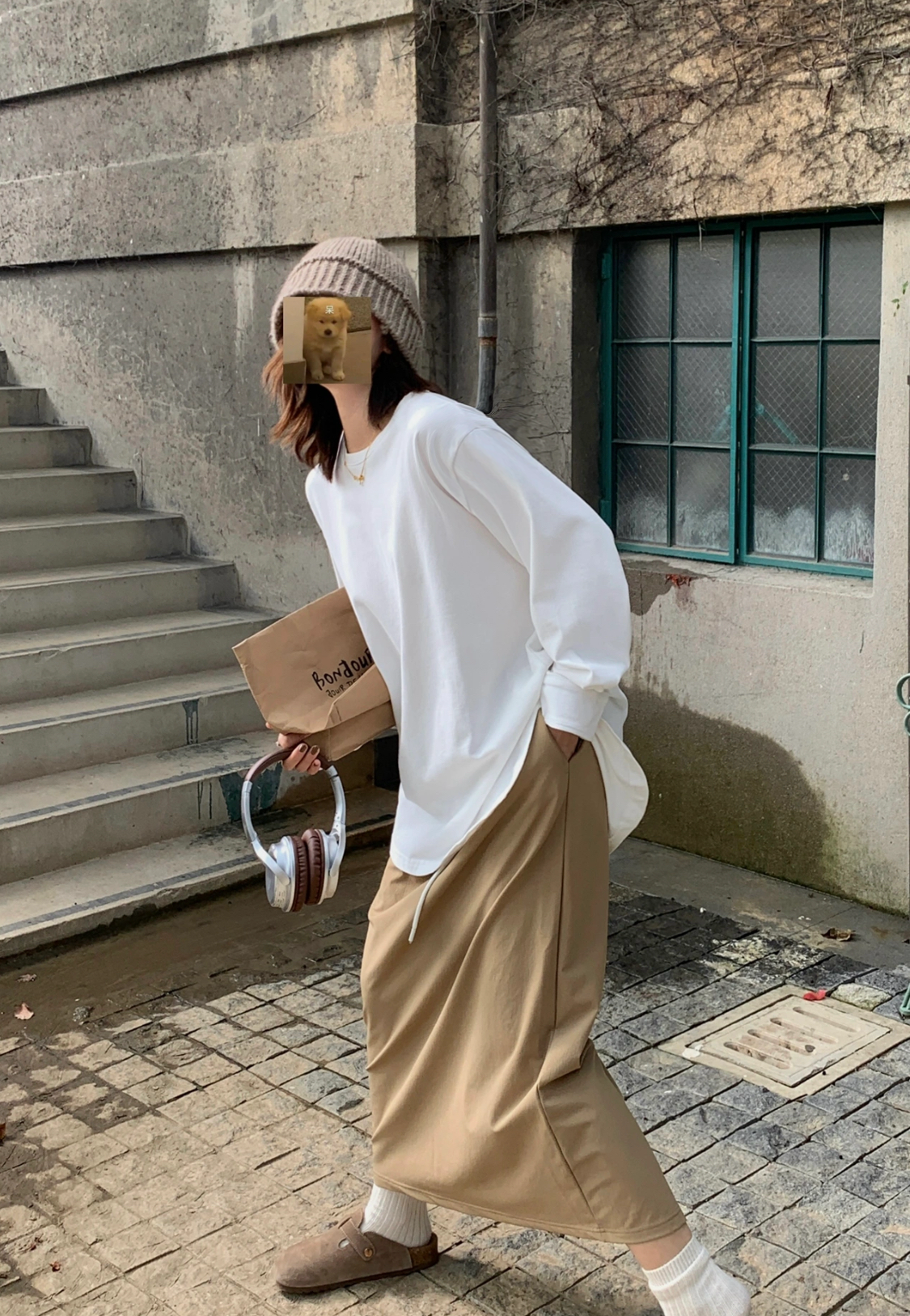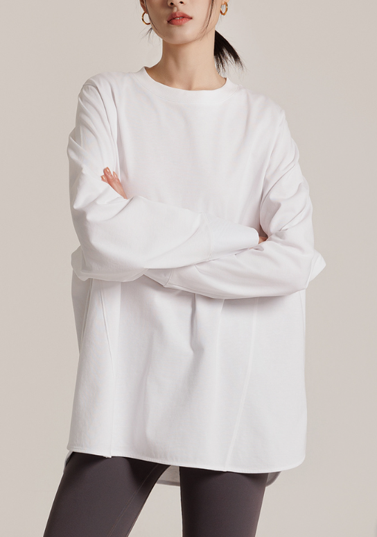 老米优品/JI简系列❤开春bai搭!基础款卫衣TEE《衬衫袖拼接设计白T》简约随性,宽松休闲不挑身材,圆弧下摆设计