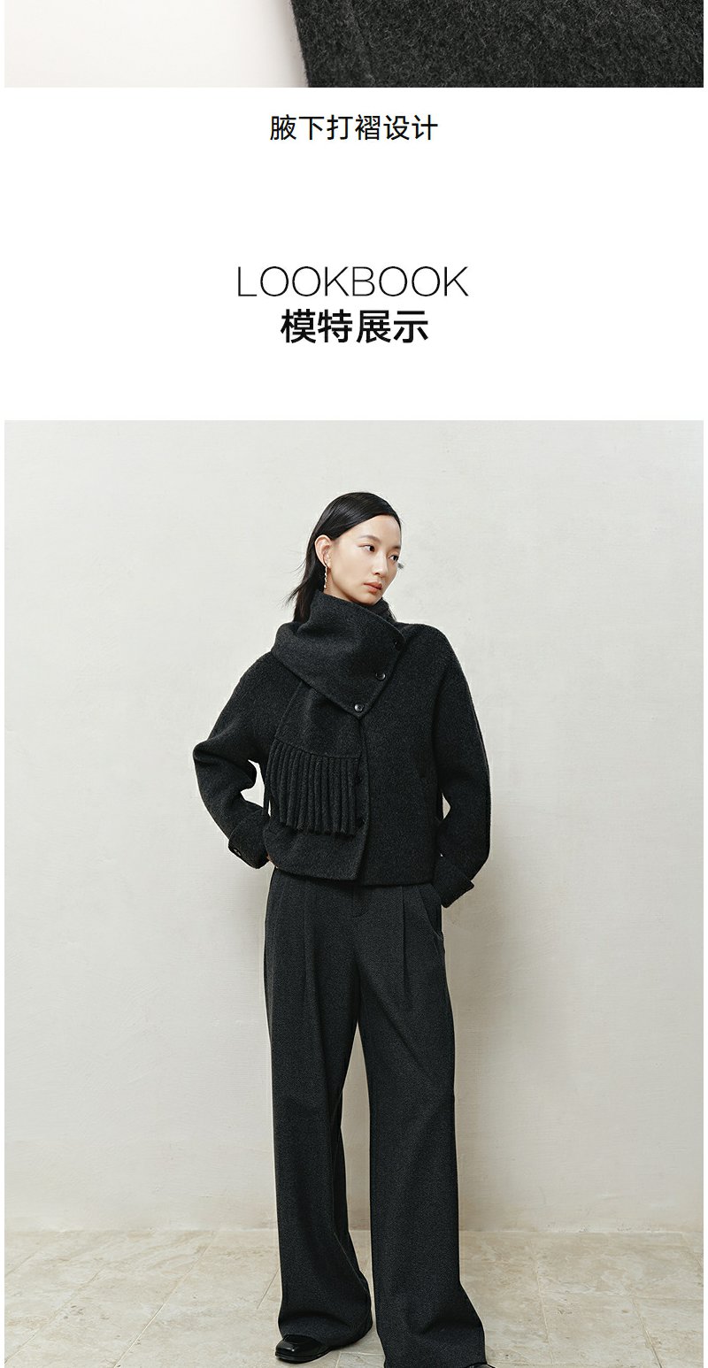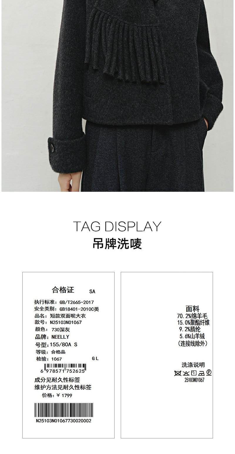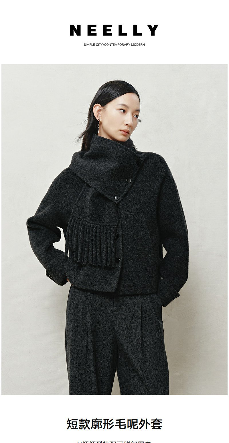 NEELLY纳俪商场同款冬季新款时尚围巾领短款双面呢大衣女百搭外套N25103N01067