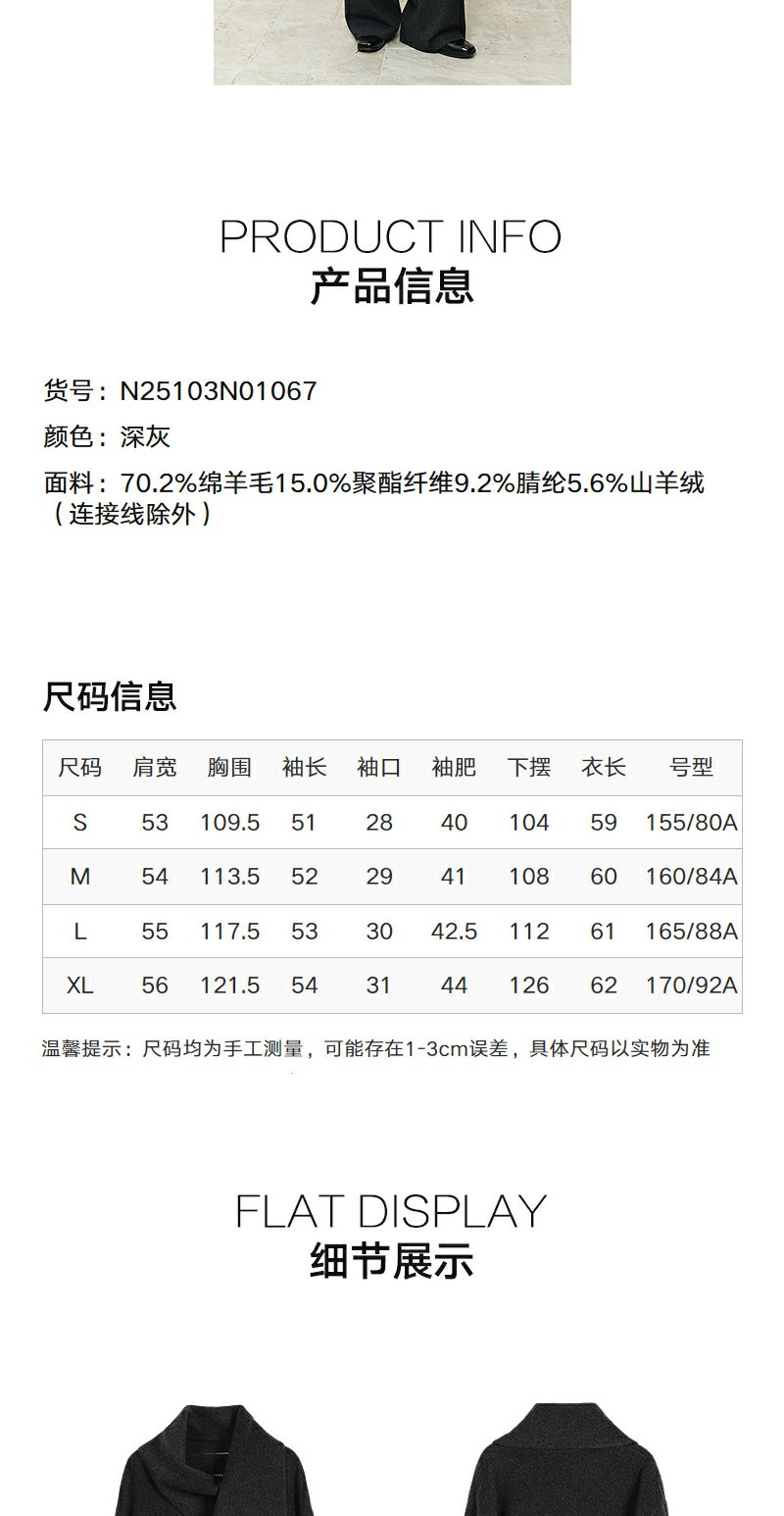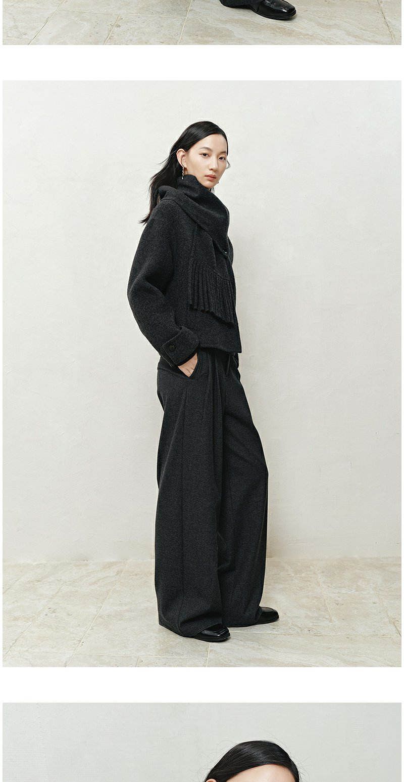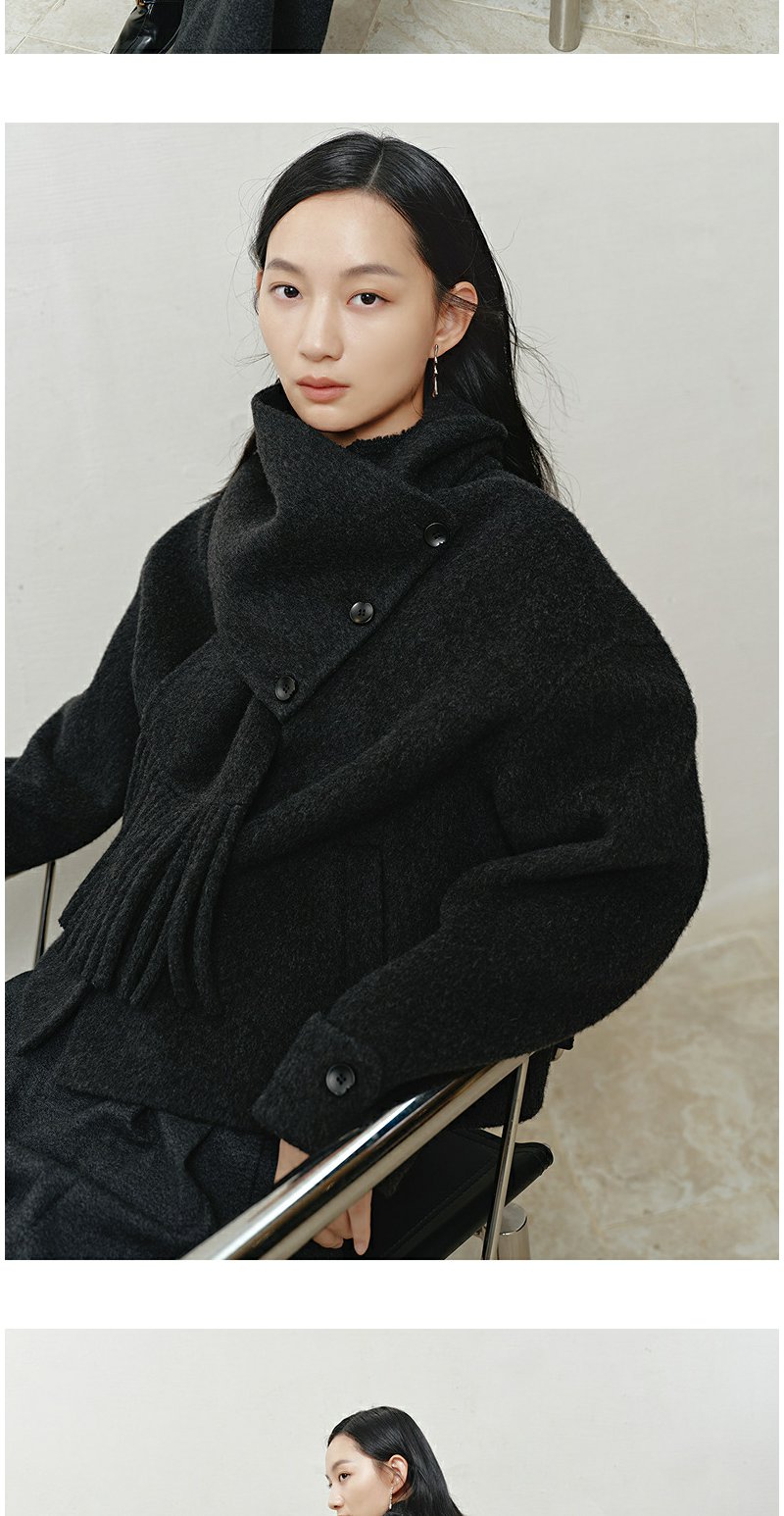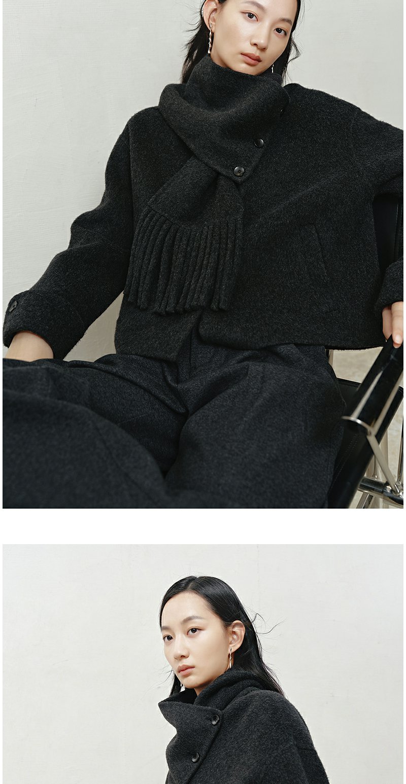 NEELLY纳俪商场同款冬季新款时尚围巾领短款双面呢大衣女百搭外套N25103N01067