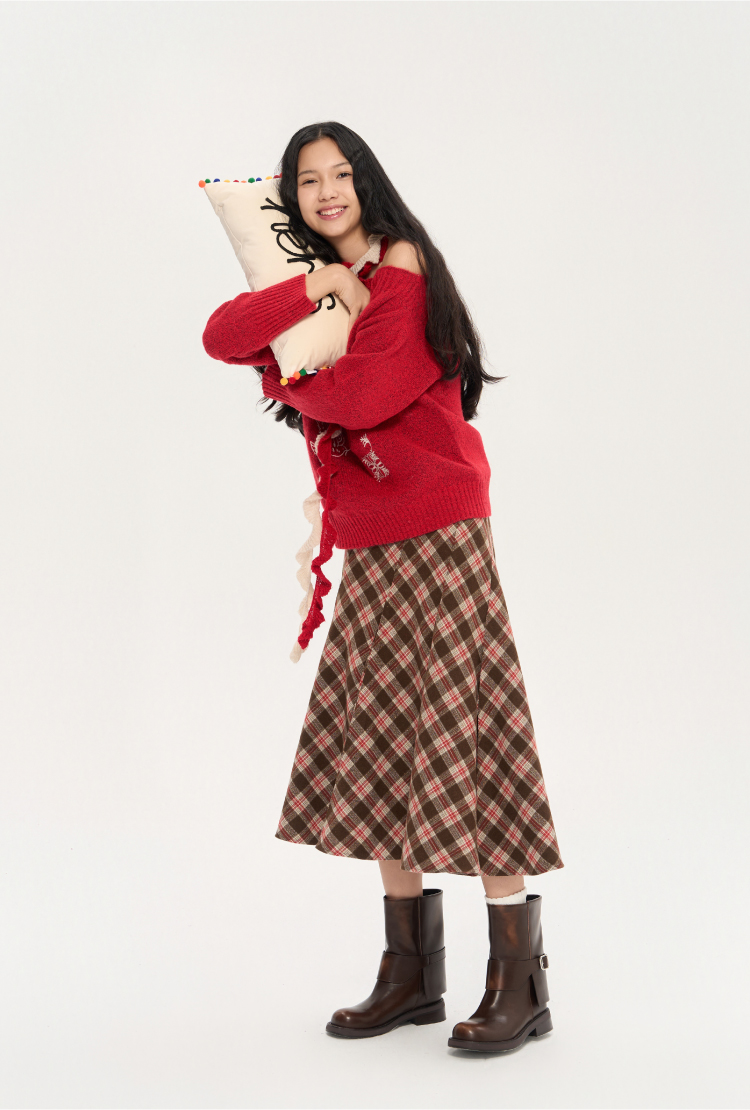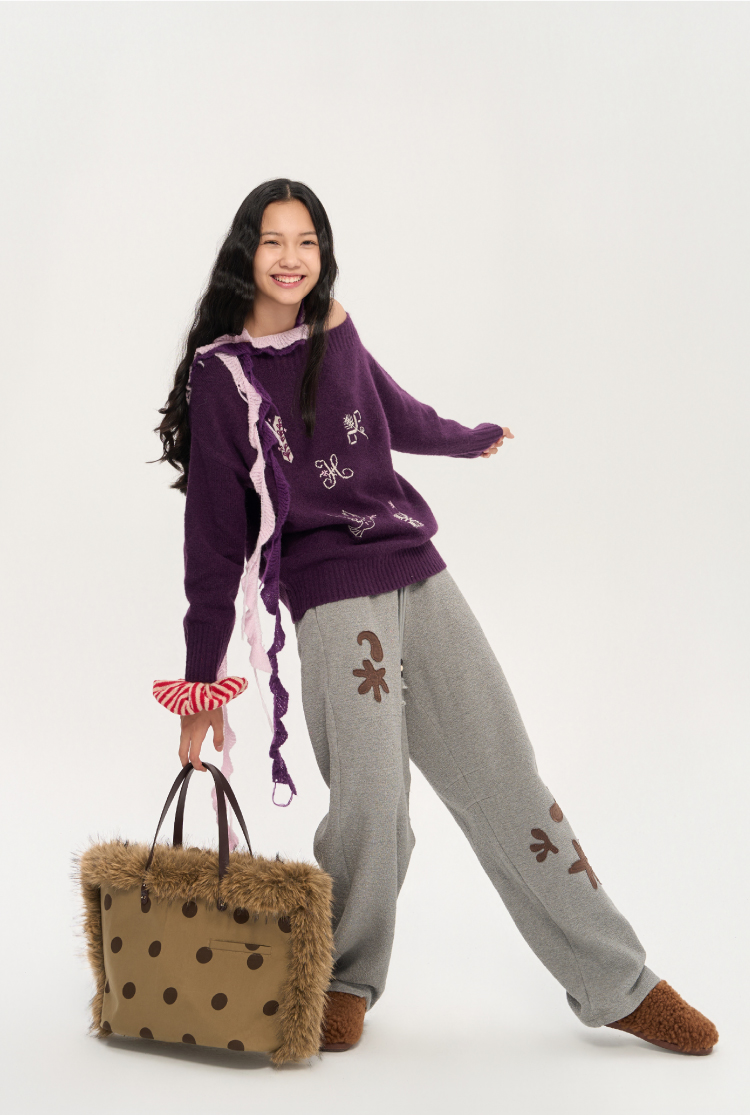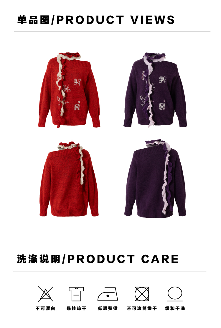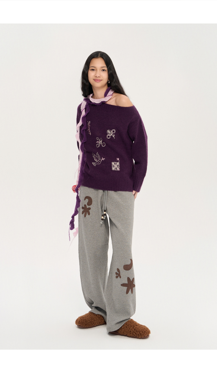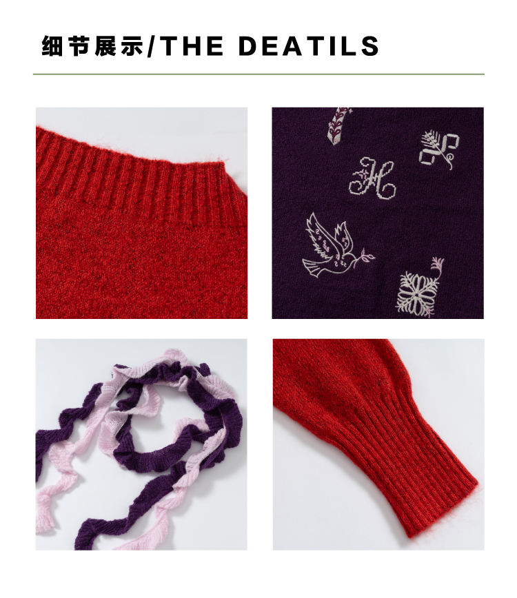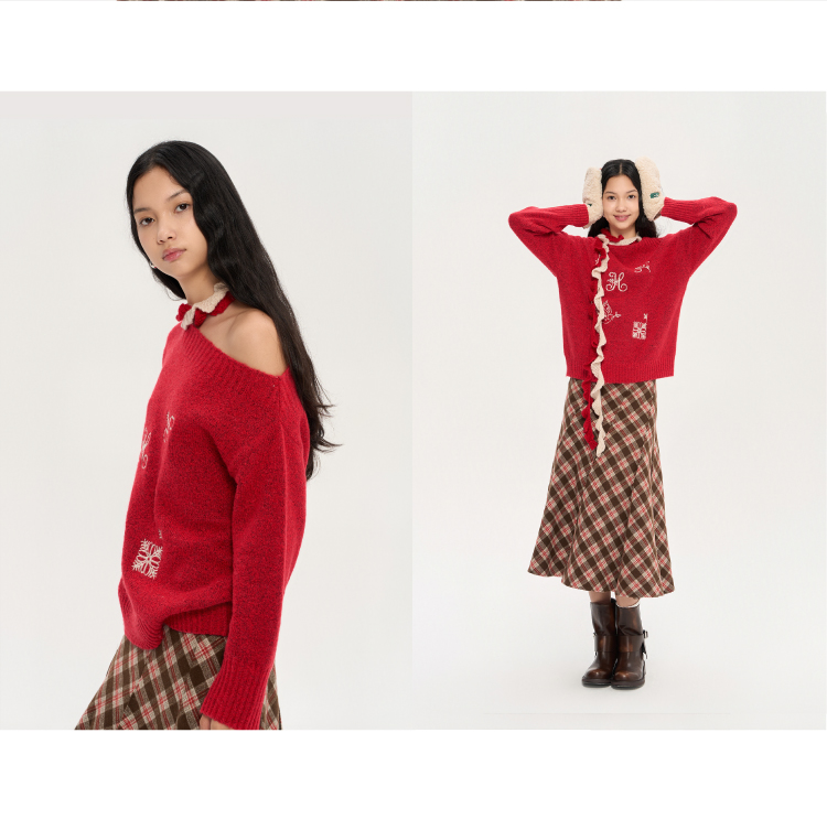 heris/H53104/流苏窄围巾搭配 古董集市刺绣 慵懒宽松露肩毛衣