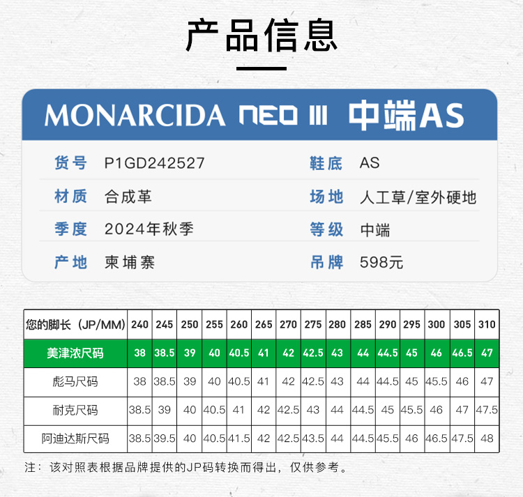 小李子Mizuno美津浓MONARCIDA NEO 3中端AS碎钉成人比赛足球鞋男