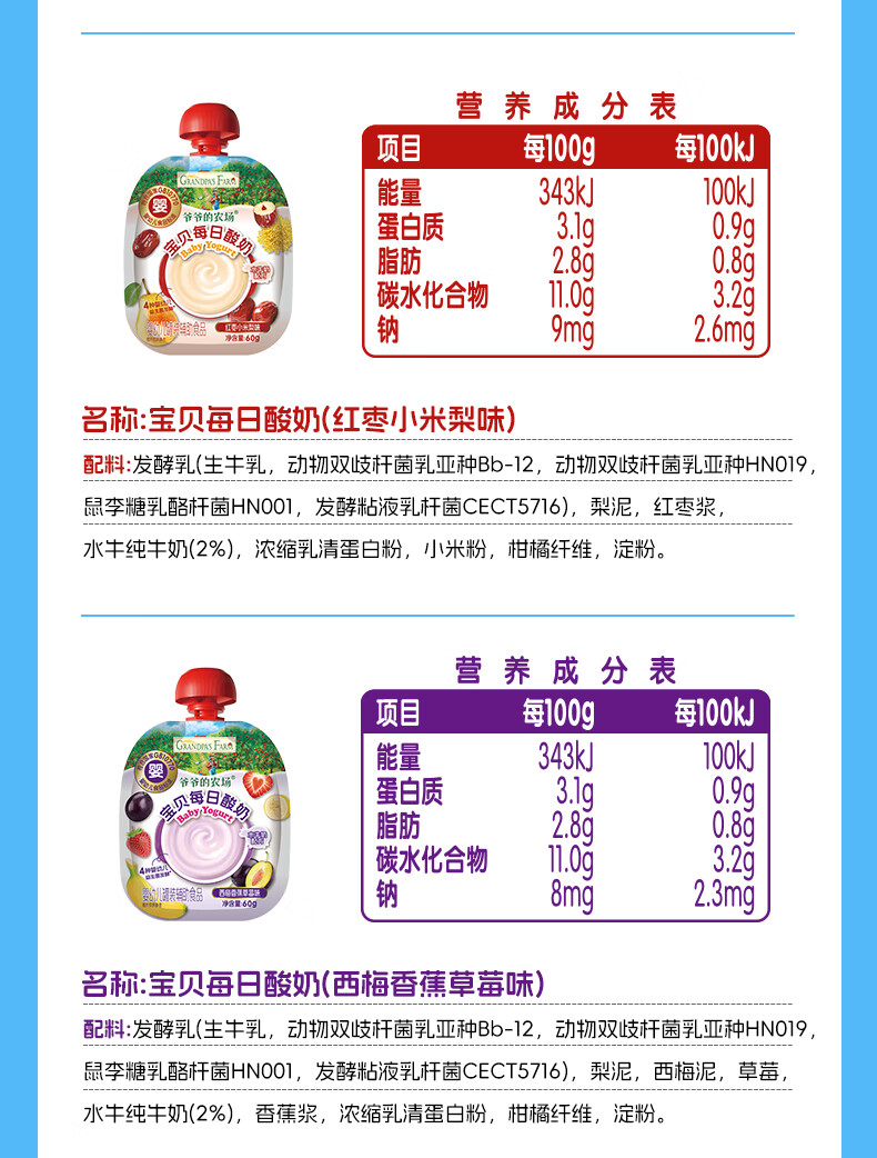 爷爷的农场宝贝每日酸奶(西梅香蕉草莓味)60g