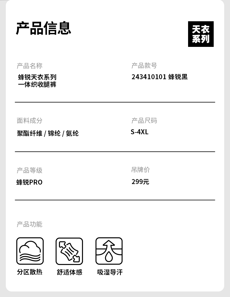 小李子蜂锐天衣系列一体织无侧缝收腿裤足球训练长裤跑步健身