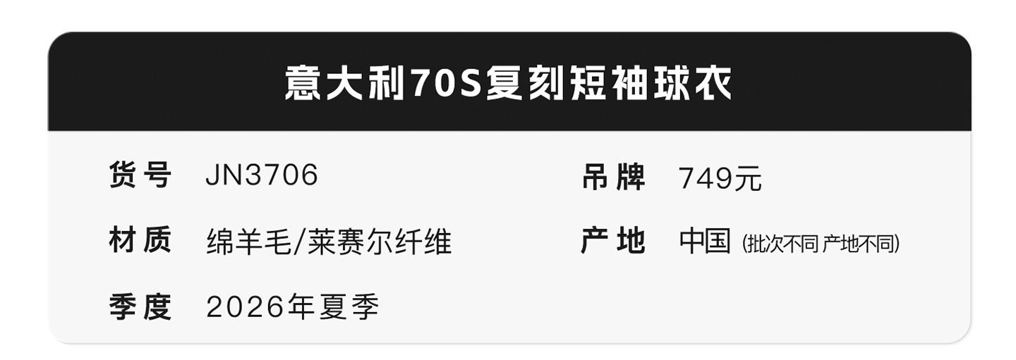 小李子ADIDAS阿迪达斯意大利1970年复刻复古怀旧短袖球衣JN3706