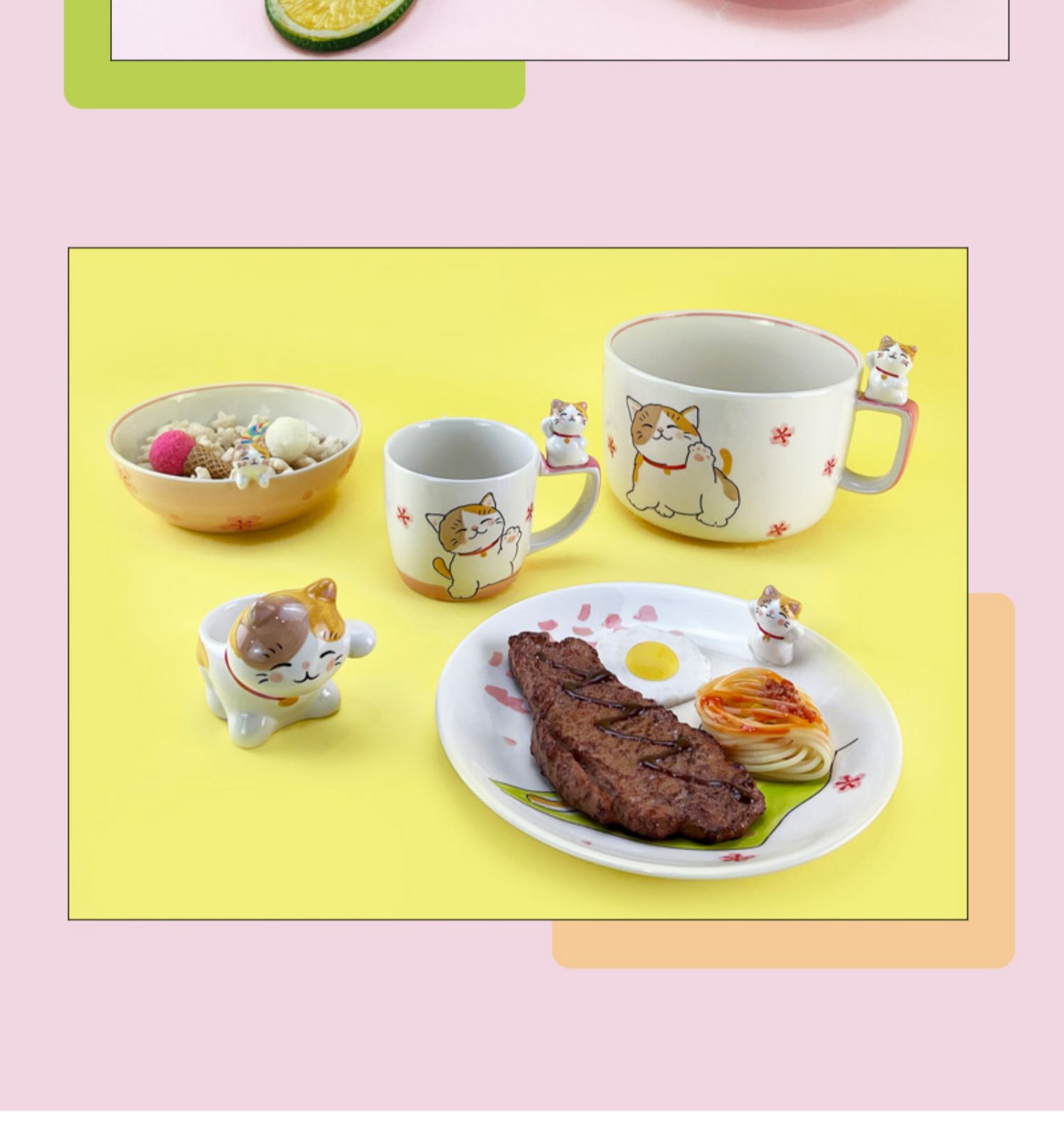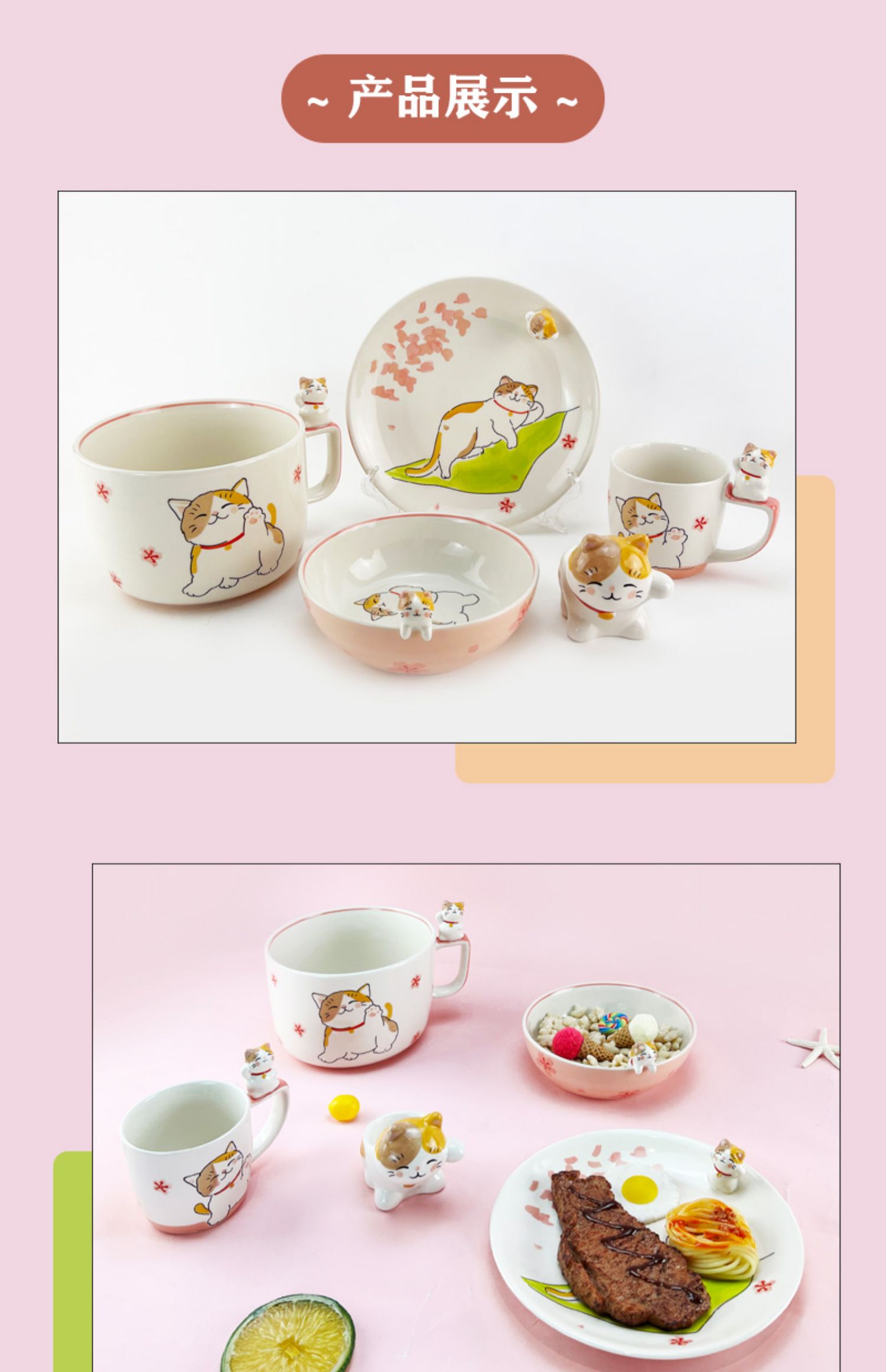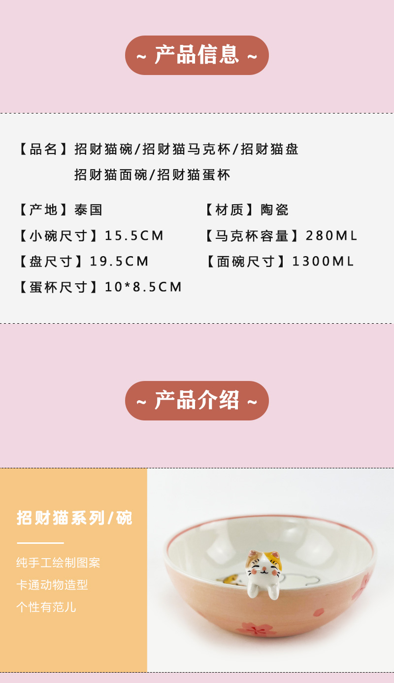 泰国进口儿童陶瓷餐具卡通立体招财猫水杯马克杯饭碗盘