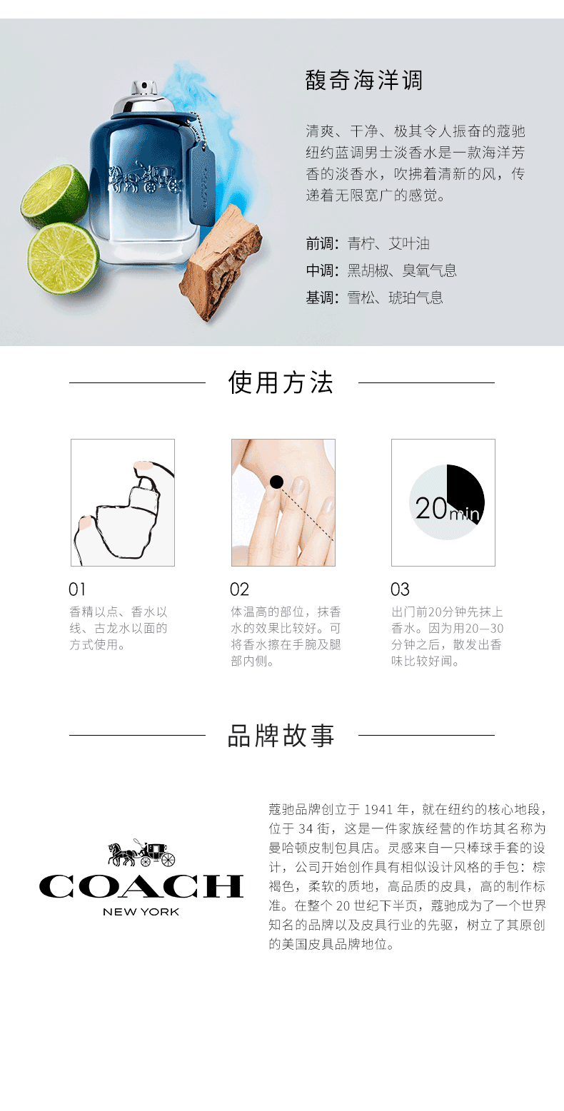 COACH/蔻驰纽约蓝调男士淡香水馥奇海洋调100ML