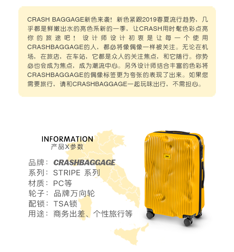 Crash Baggage STRIPE系列 意大利小众设计20寸24寸28寸条纹破损行李箱拉杆箱留学登机箱