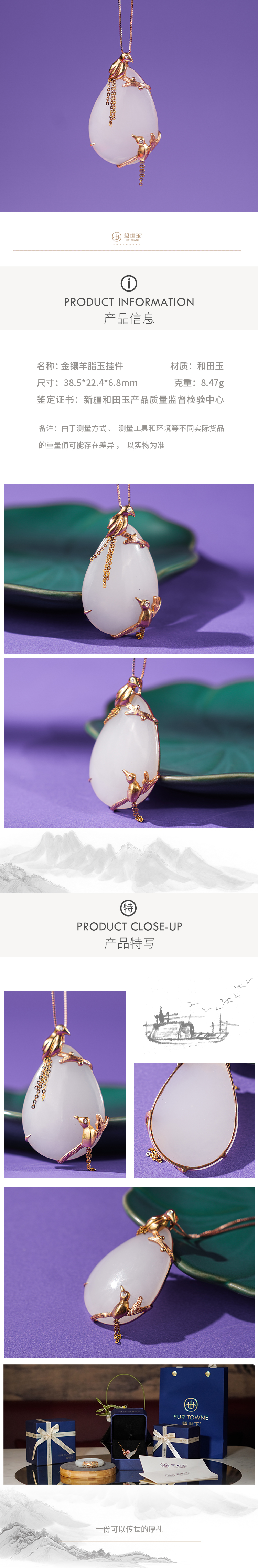 新疆国玉盟世玉金镶羊脂玉挂件【带证书·顺丰物流】