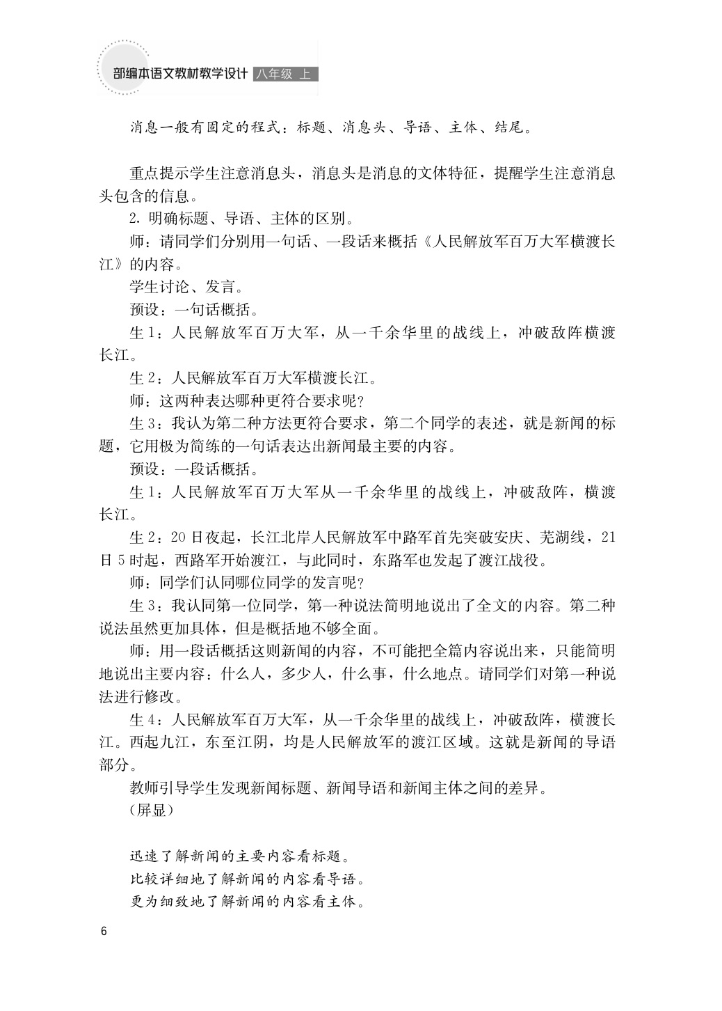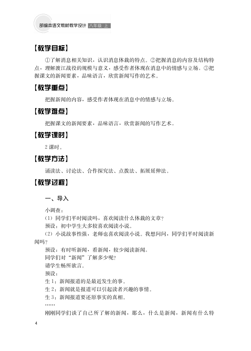 部编本语文教材教学设计 八年级 ( 上 )