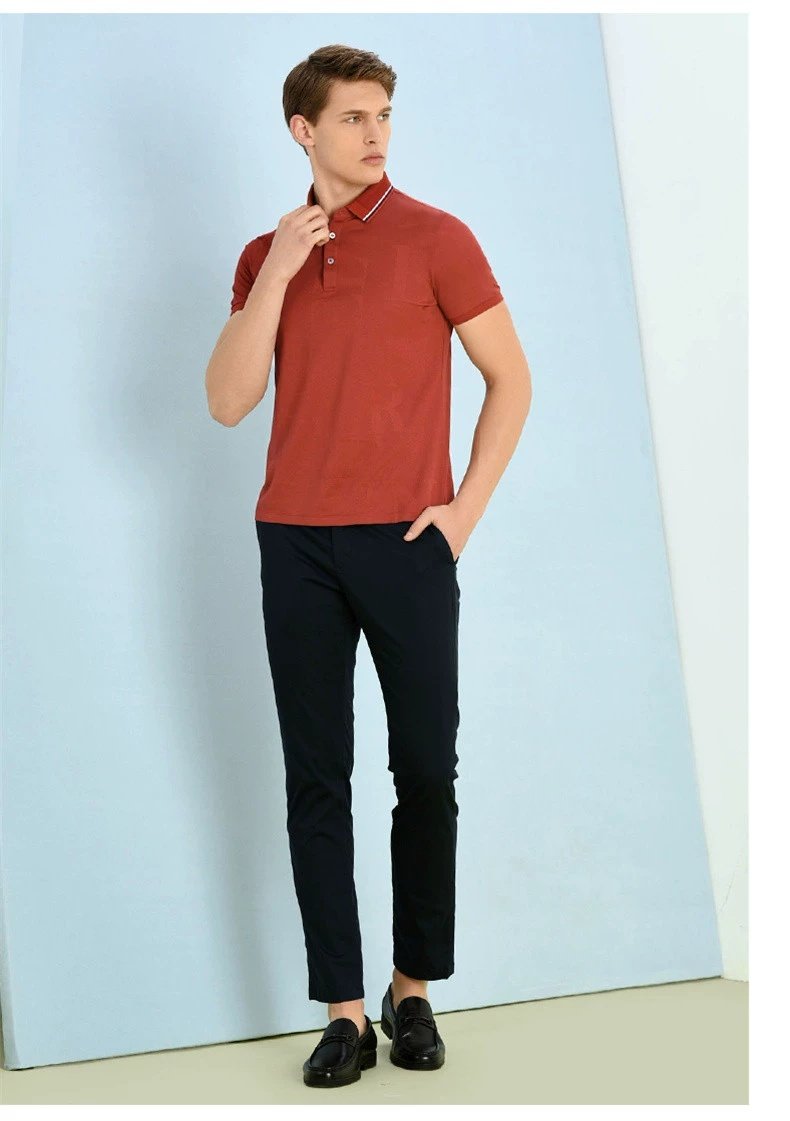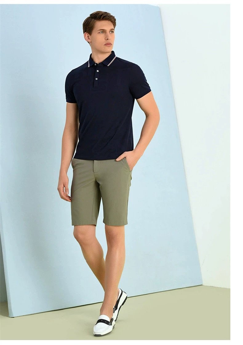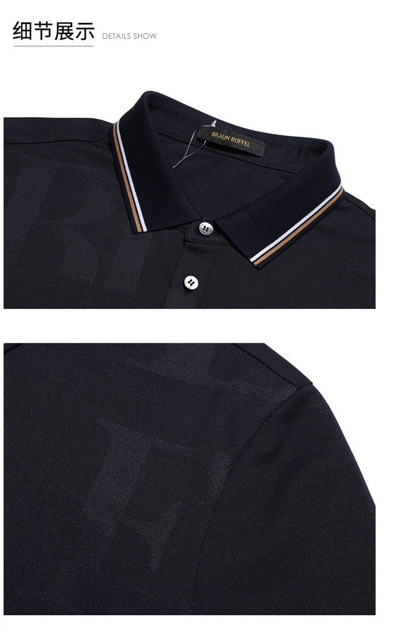 布兰施春季男士中年polo衫短袖翻领休闲纯色商务t恤桑蚕丝透气
