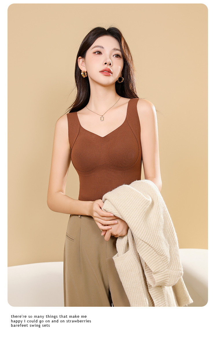 【椰油保暖背心】89.9/买一送一 花姿彤椰油云感衣 7A抑菌自带胸垫 双面磨毛无痕保暖 抬手不跑杯 方领V领可选