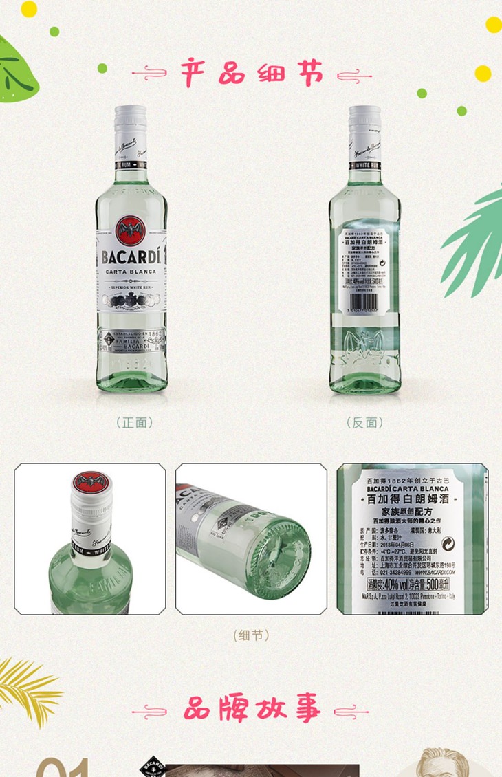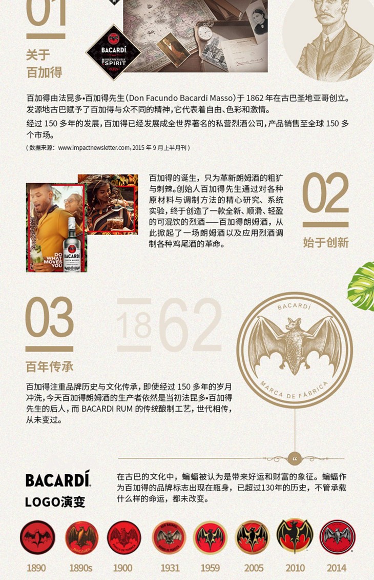40°百加得白朗姆酒 整箱750ml*12瓶包邮
