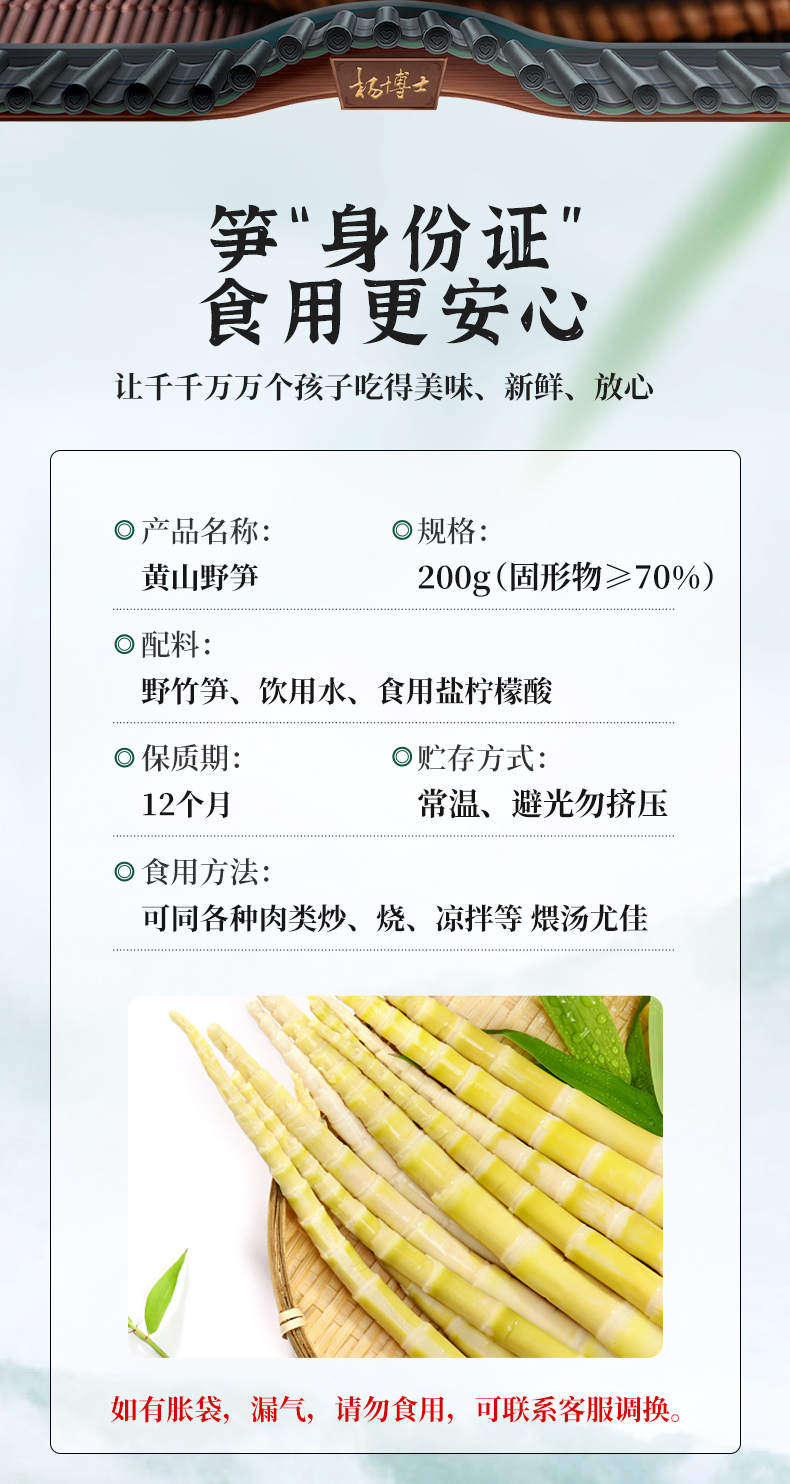 【杨博士 黄山野笋】 皖南土特产黄山野竹笋去壳笋尖火锅笋 鲜嫩 脆爽原汁 原味美味