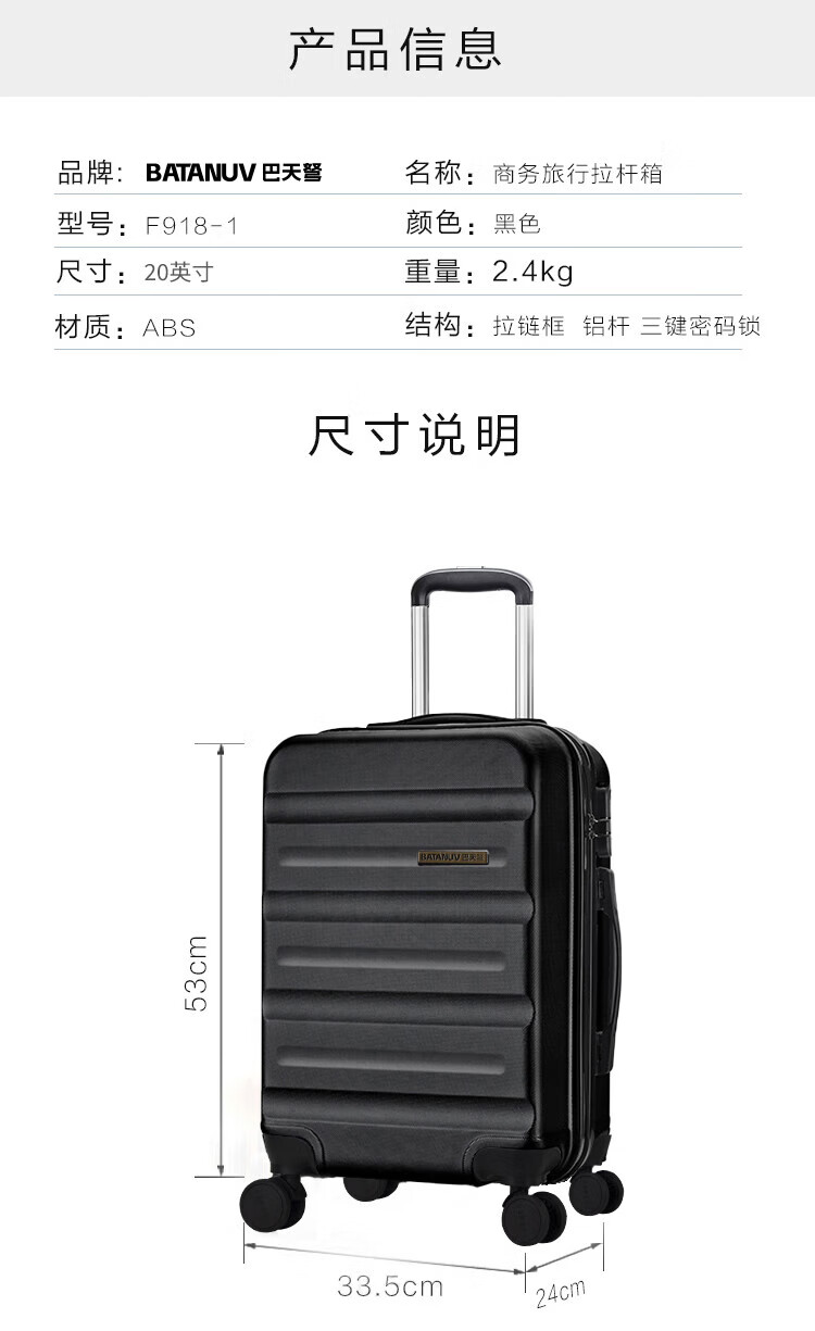 巴天弩(BATANUV) 商务旅行拉杆箱20寸登机箱 F918 时尚出行 收纳无忧