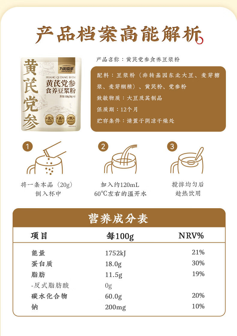 九阳黄芪党参豆浆粉120g