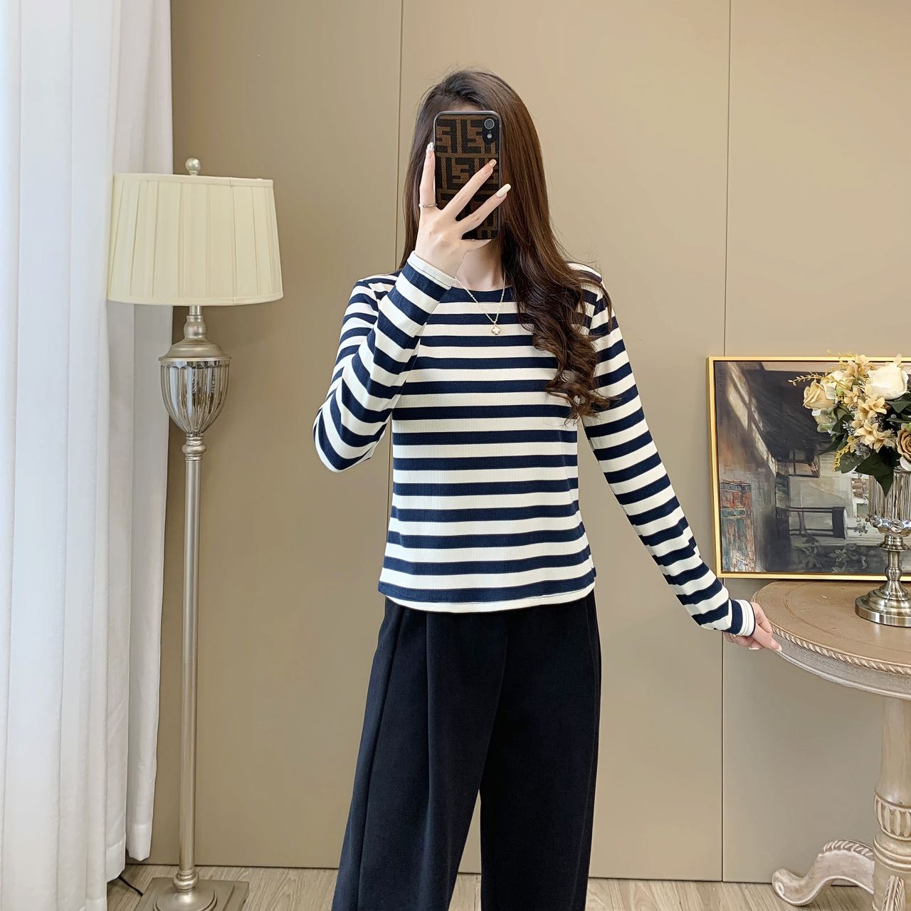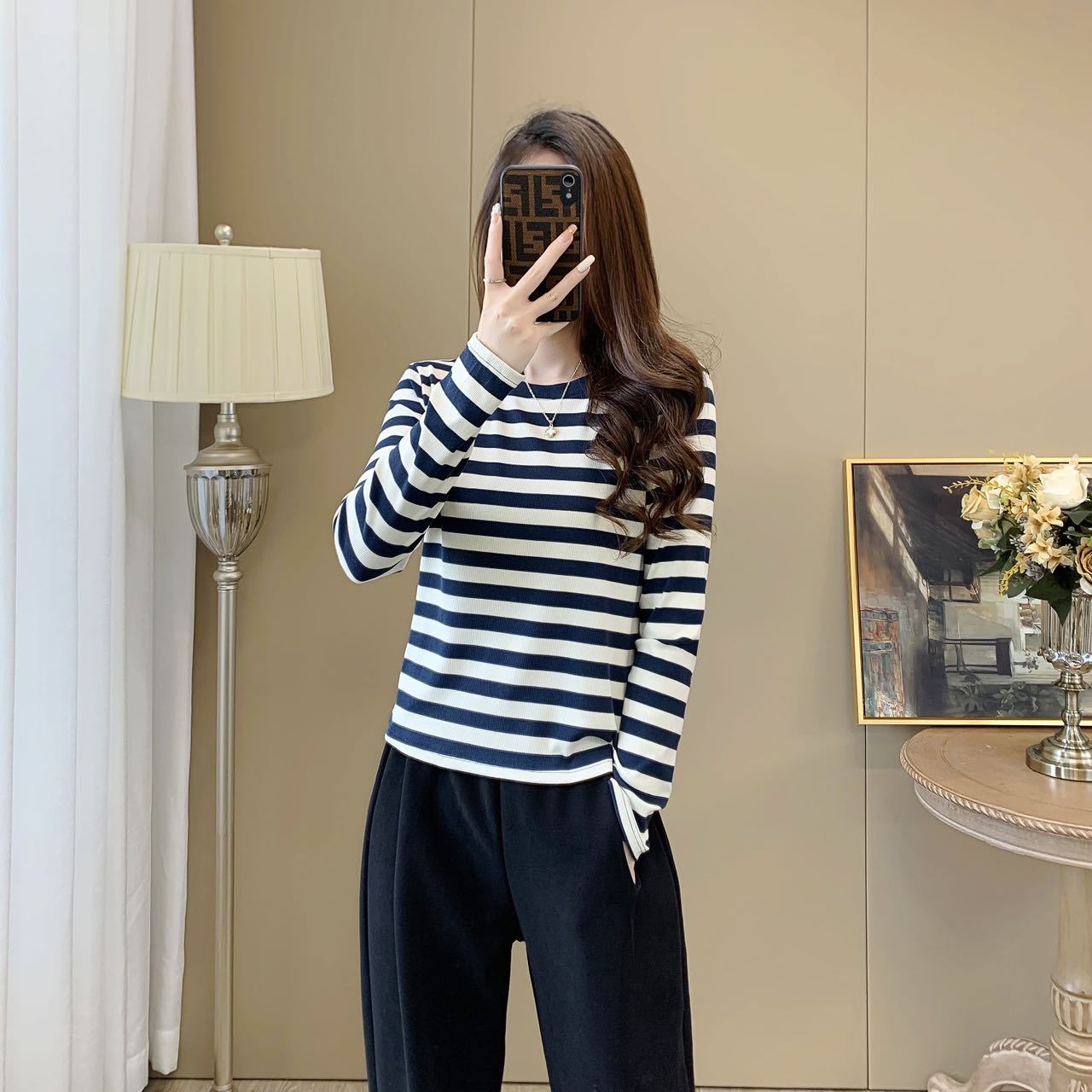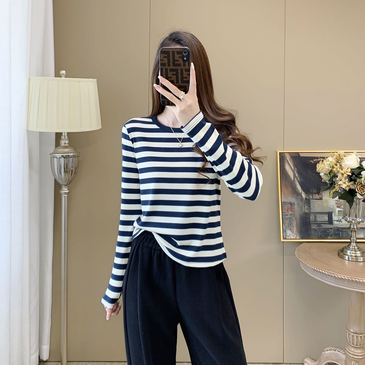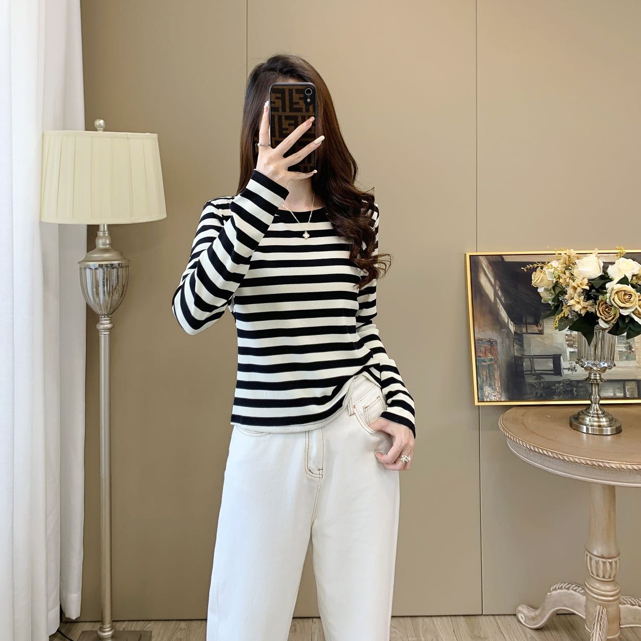 【99元/1件 169元/2件】女丨女士天丝竹棉条纹衫长袖T恤春秋女士衣服【FF24809】