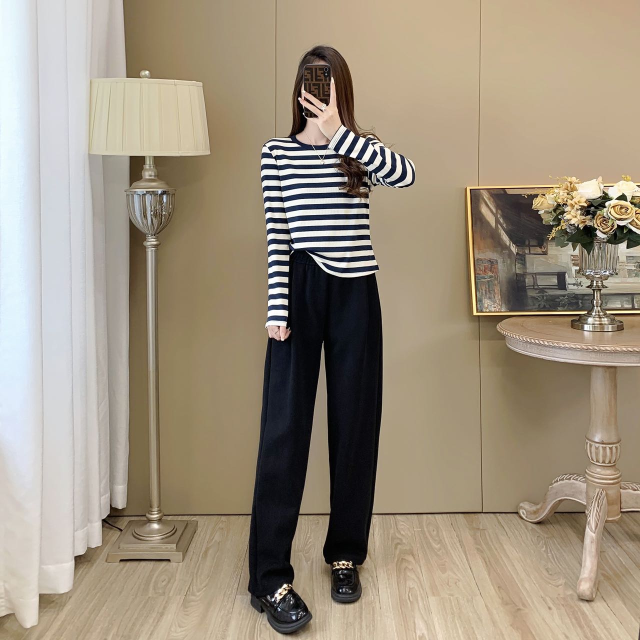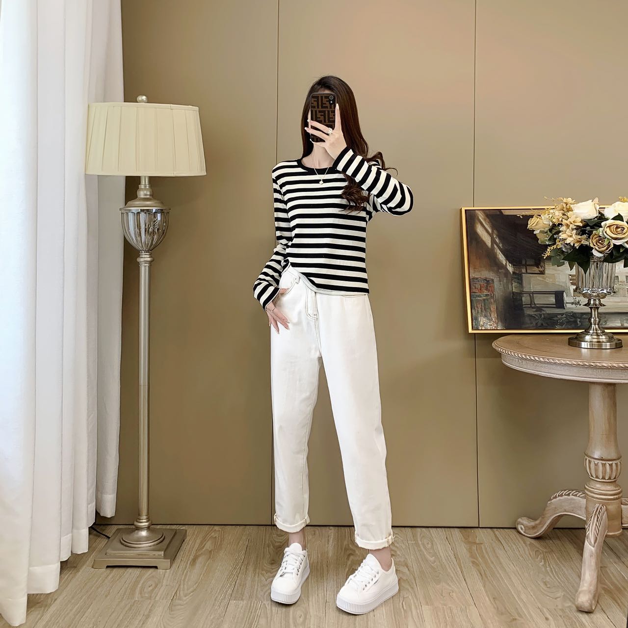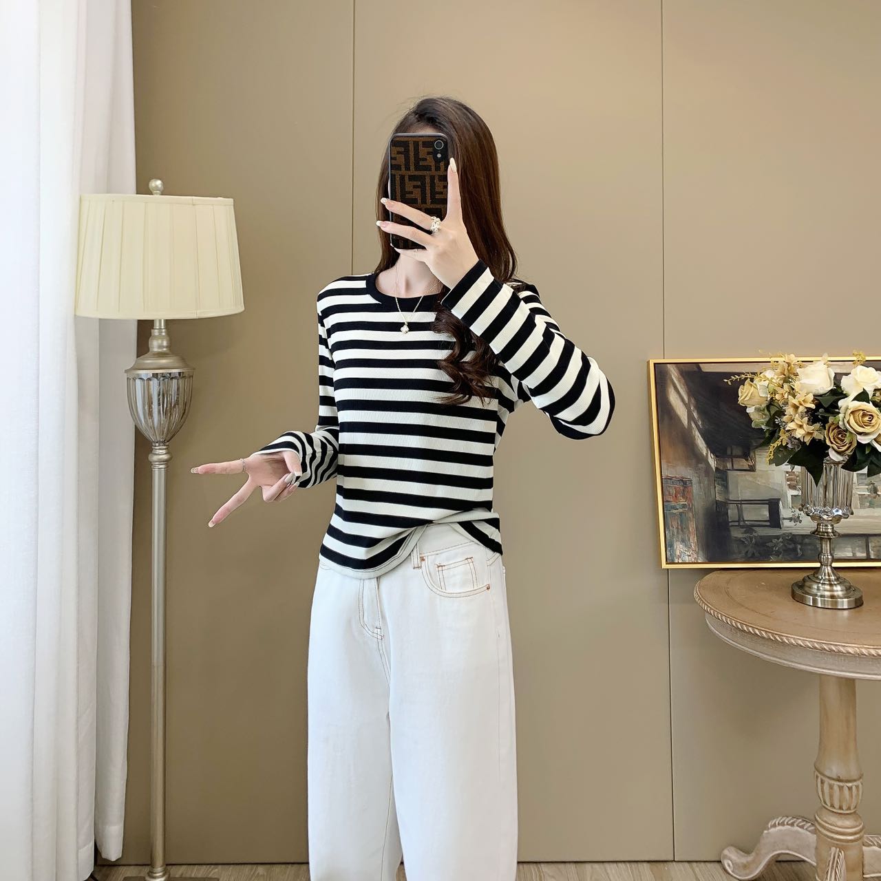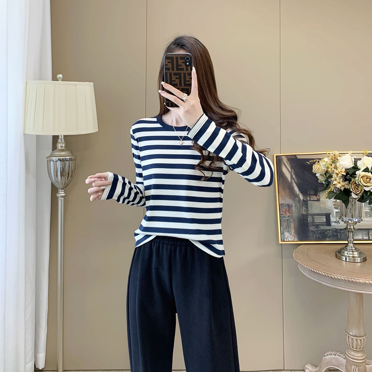 【99元/1件 169元/2件】女丨女士天丝竹棉条纹衫长袖T恤春秋女士衣服【FF24809】