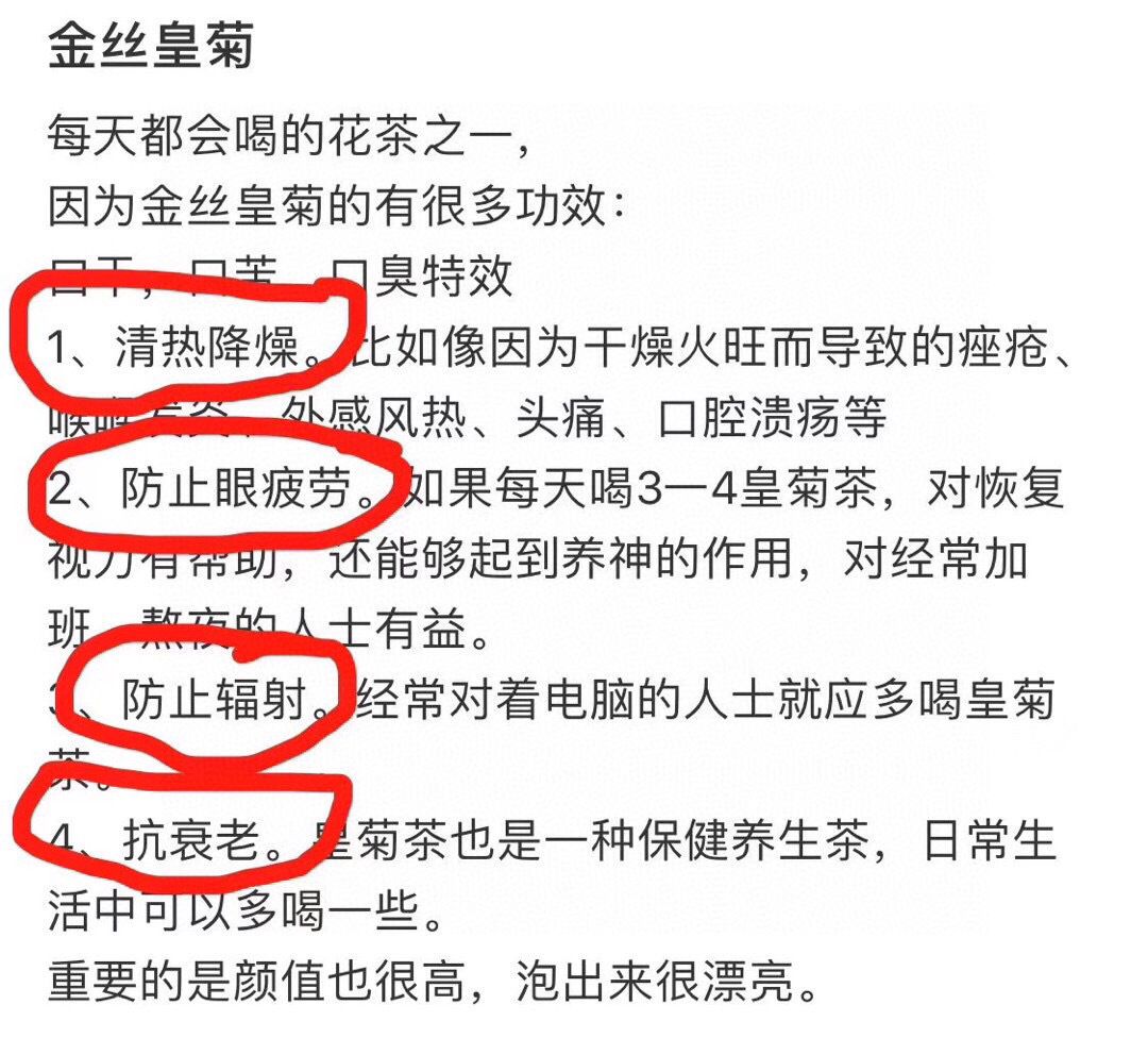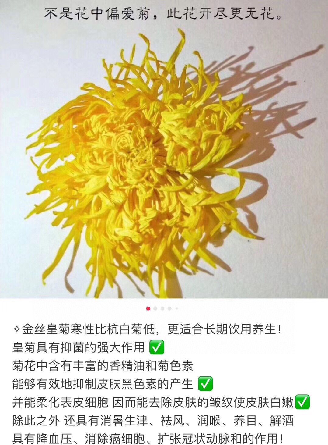 超大朵,真的好激动,隔着屏幕你都能随意感受到的,精致!夏天喝金丝皇菊真的很好,很好喝!很清香!小红书随便截一下,金丝皇菊不便宜!10朵就要49元!品质没有我的好!!我们顶级的花王!我直接给大家2盒60朵39.9元!给不给力!