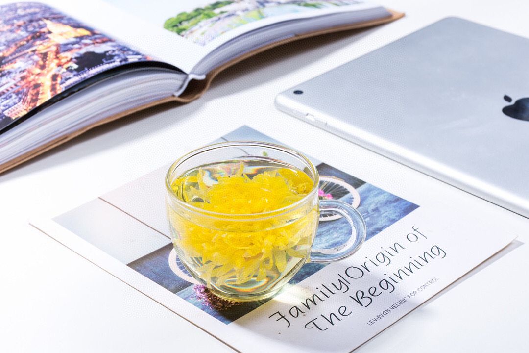 夏天来了,身体易燥,也是饮菊花茶的好时候,用沸水泡开看它在杯中绽开,多喝菊花茶,可以清肝明目,远离痘斑,整个夏天都在味蕾中变得无比清新。