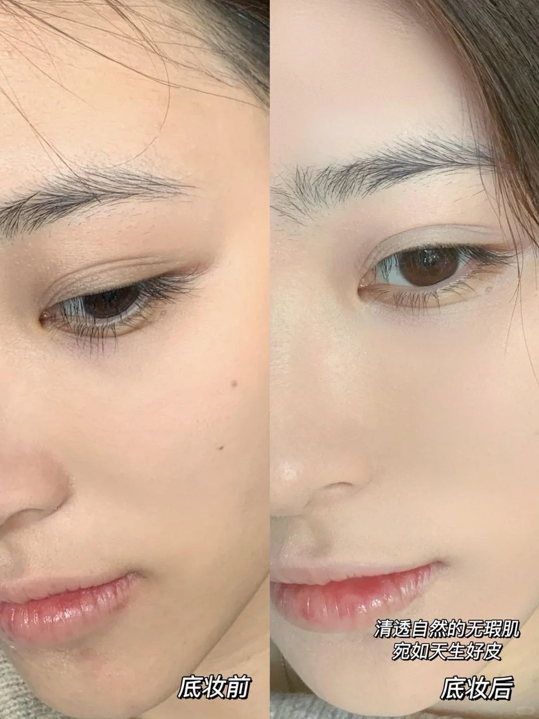 而且轻薄一层就把小斑点、黑眼圈、毛孔等都遮住