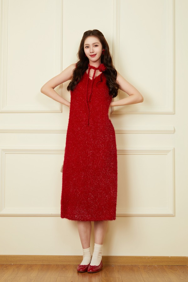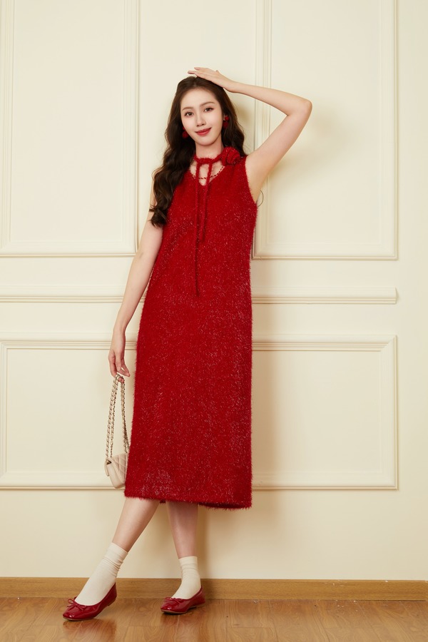 SIA SAYLOR 节日时髦款红色金丝连衣裙 19526【不含飘带】