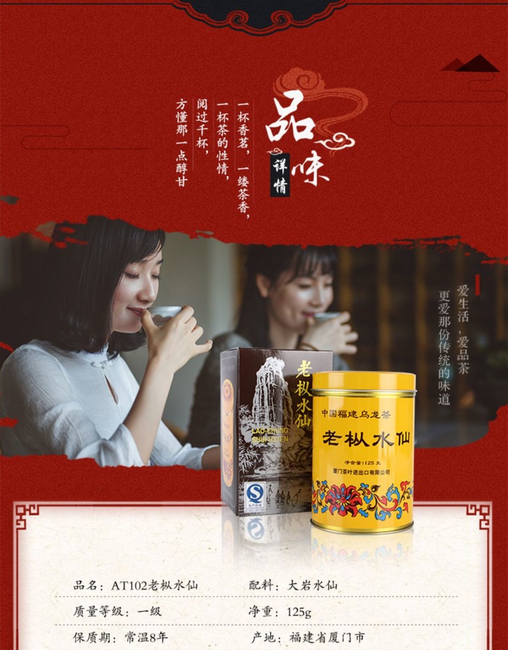 《中粮-中茶》岩茶乌龙茶老枞水仙AT102A 浓香型黄罐125g罐装岩茶乌龙茶老枞水仙暖身(新旧包装随机发货)