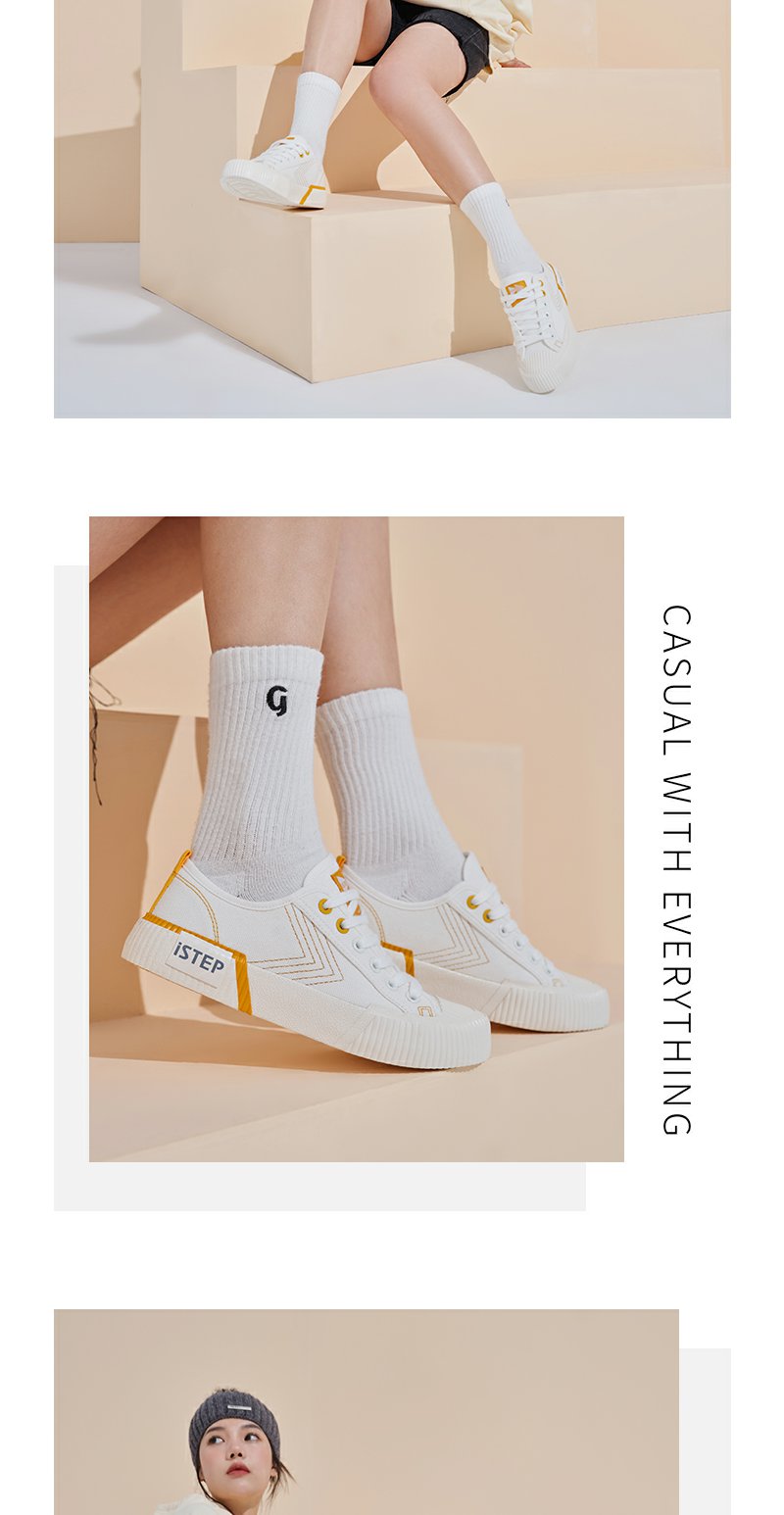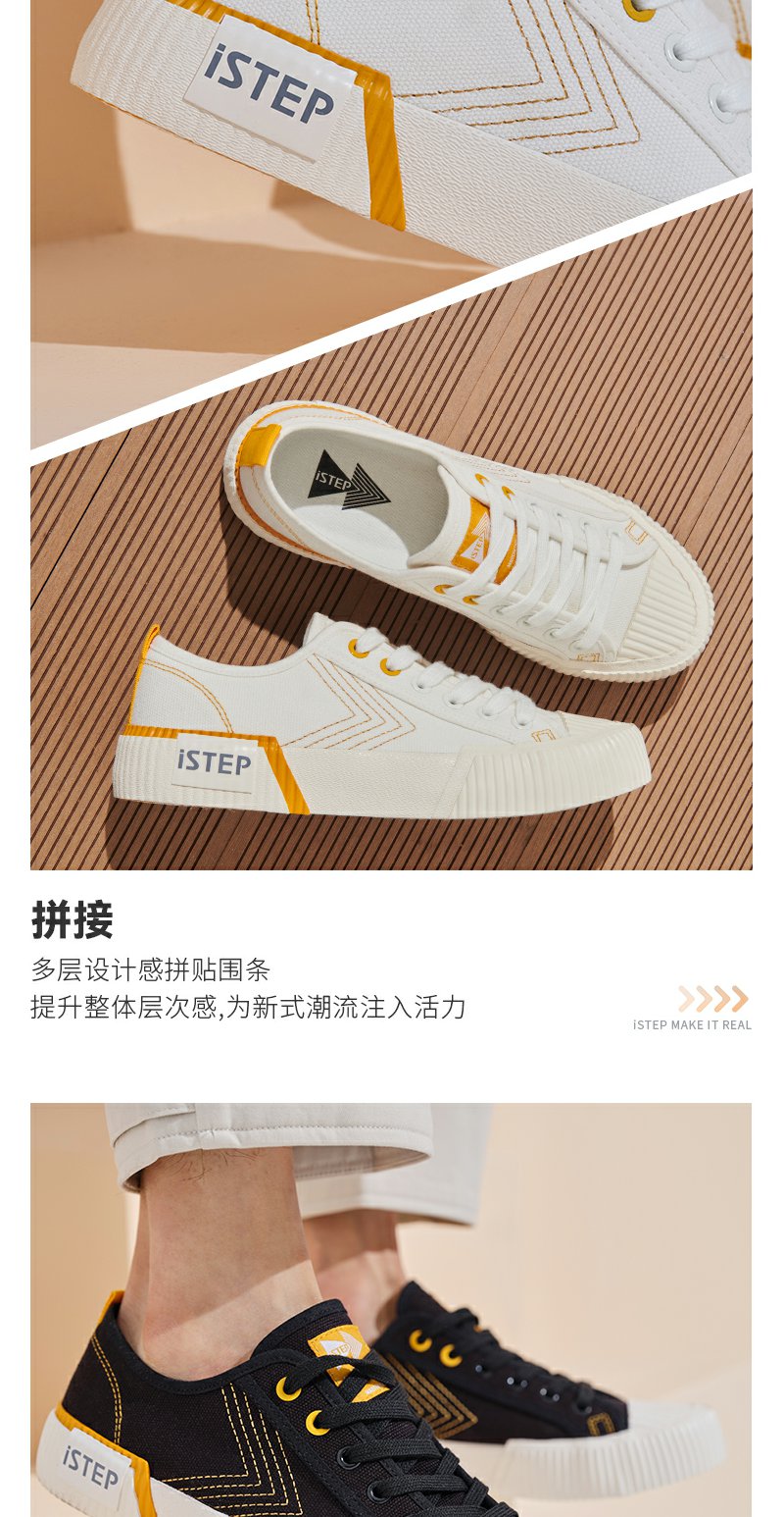 istep2023新款百搭帆布鞋拼接低帮小白鞋女鞋子潮ins女休闲情侣款