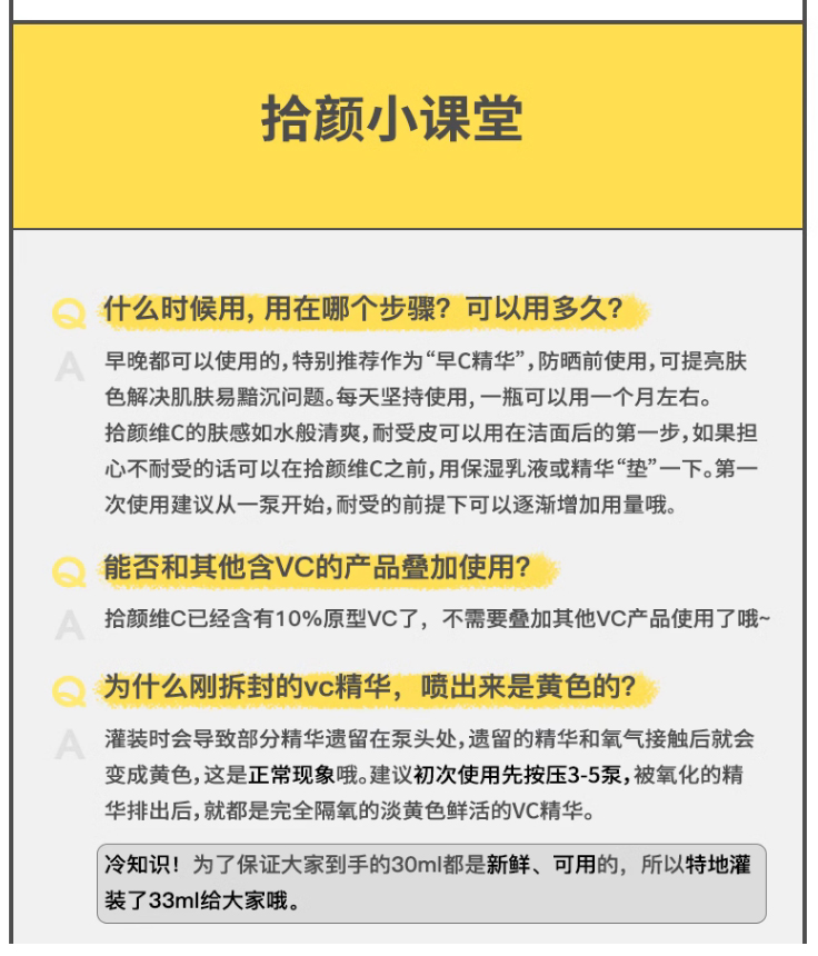 【商品名称】拾颜 10% 维C 精华喷雾 30ml