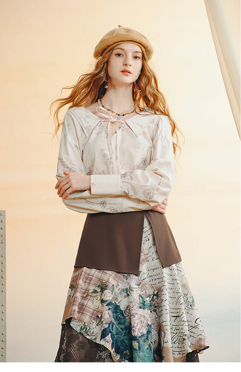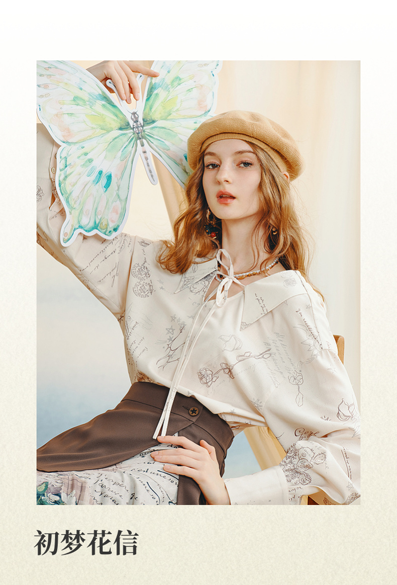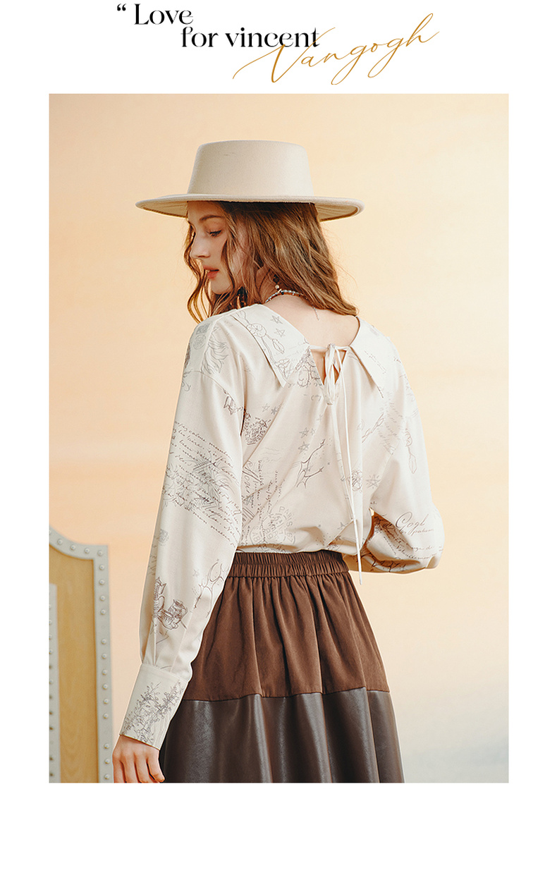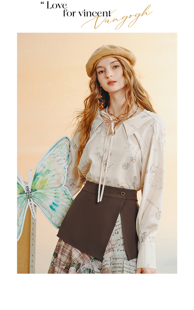 两三事梵高文艺 初梦花信 2025秋季新款时尚两面穿印花长袖衬衫女